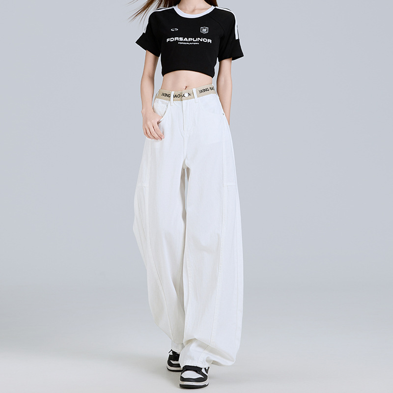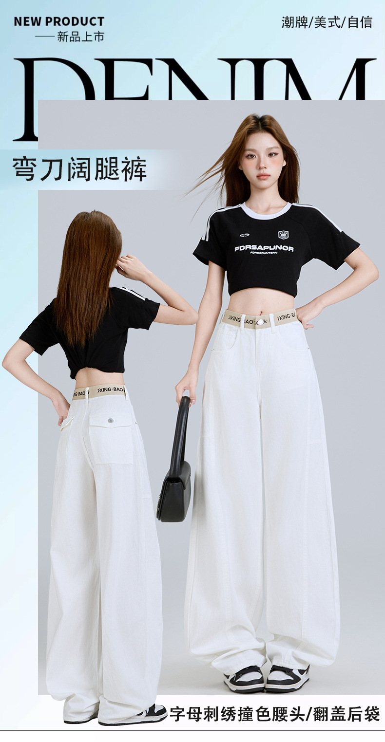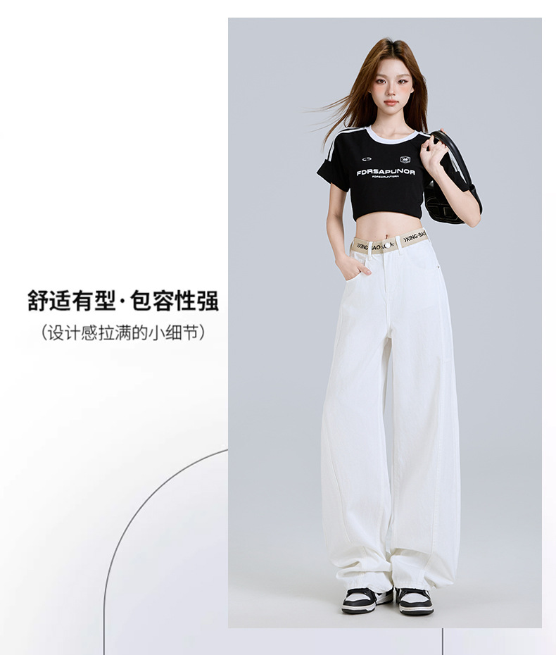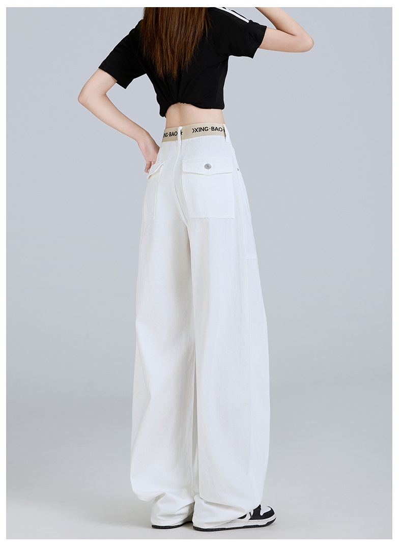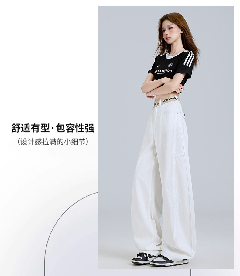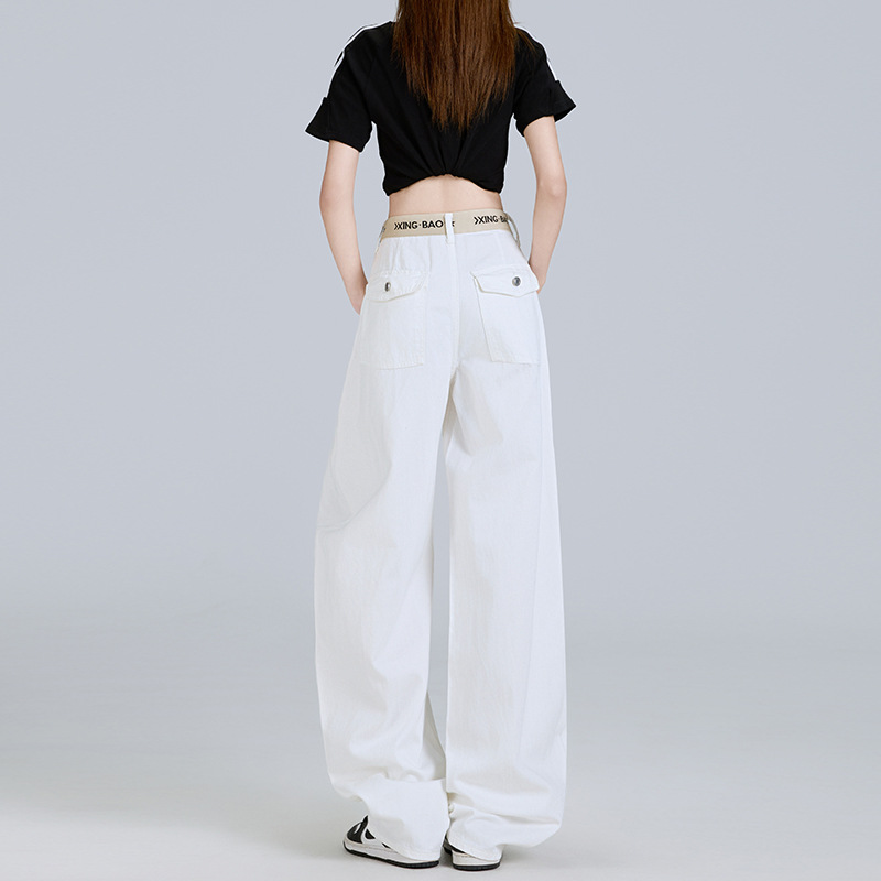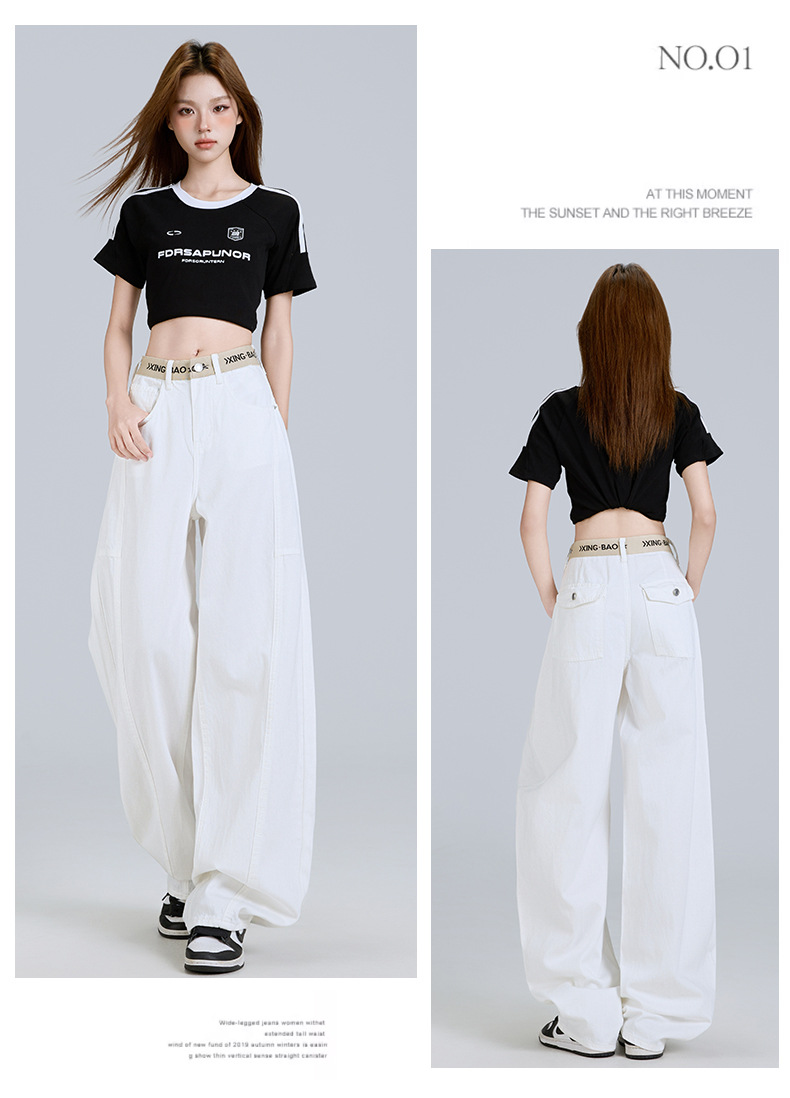 2025년 신상 가을 미색 하이웨이스트 채찍형 와이드 청바지로 여성의 슬림한 배형 몸매를 돋보이게 해주는 루즈한 바닥 길이 바지