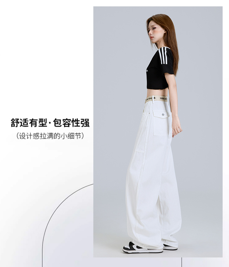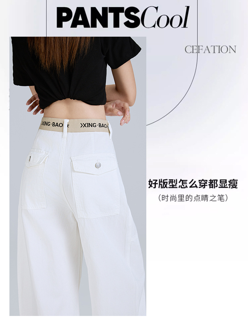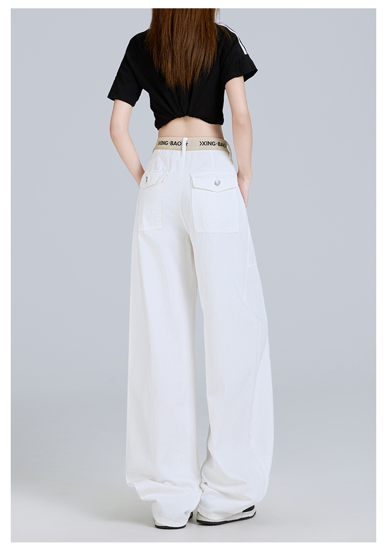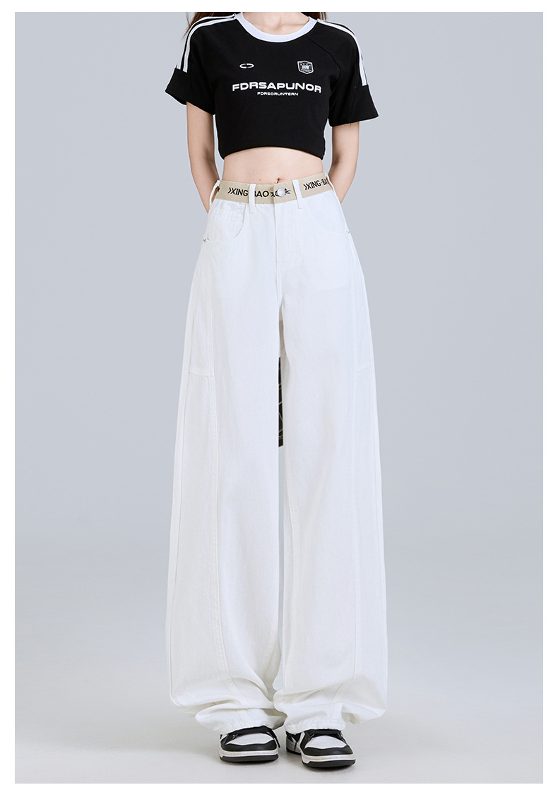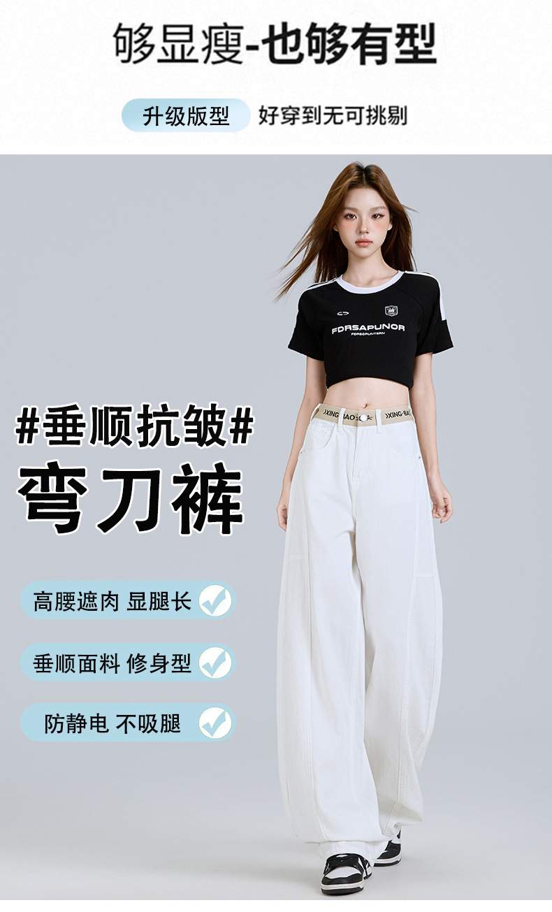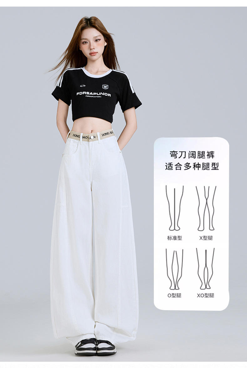 2025년 신상 가을 미색 하이웨이스트 채찍형 와이드 청바지로 여성의 슬림한 배형 몸매를 돋보이게 해주는 루즈한 바닥 길이 바지