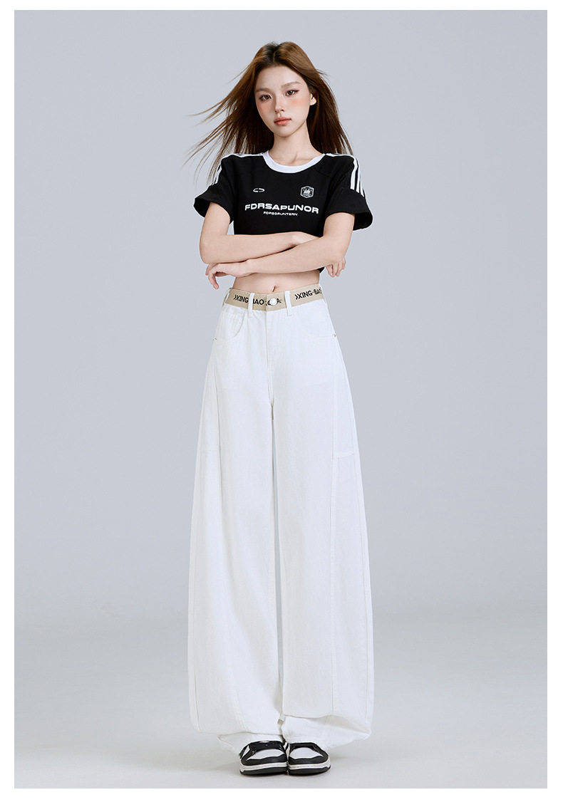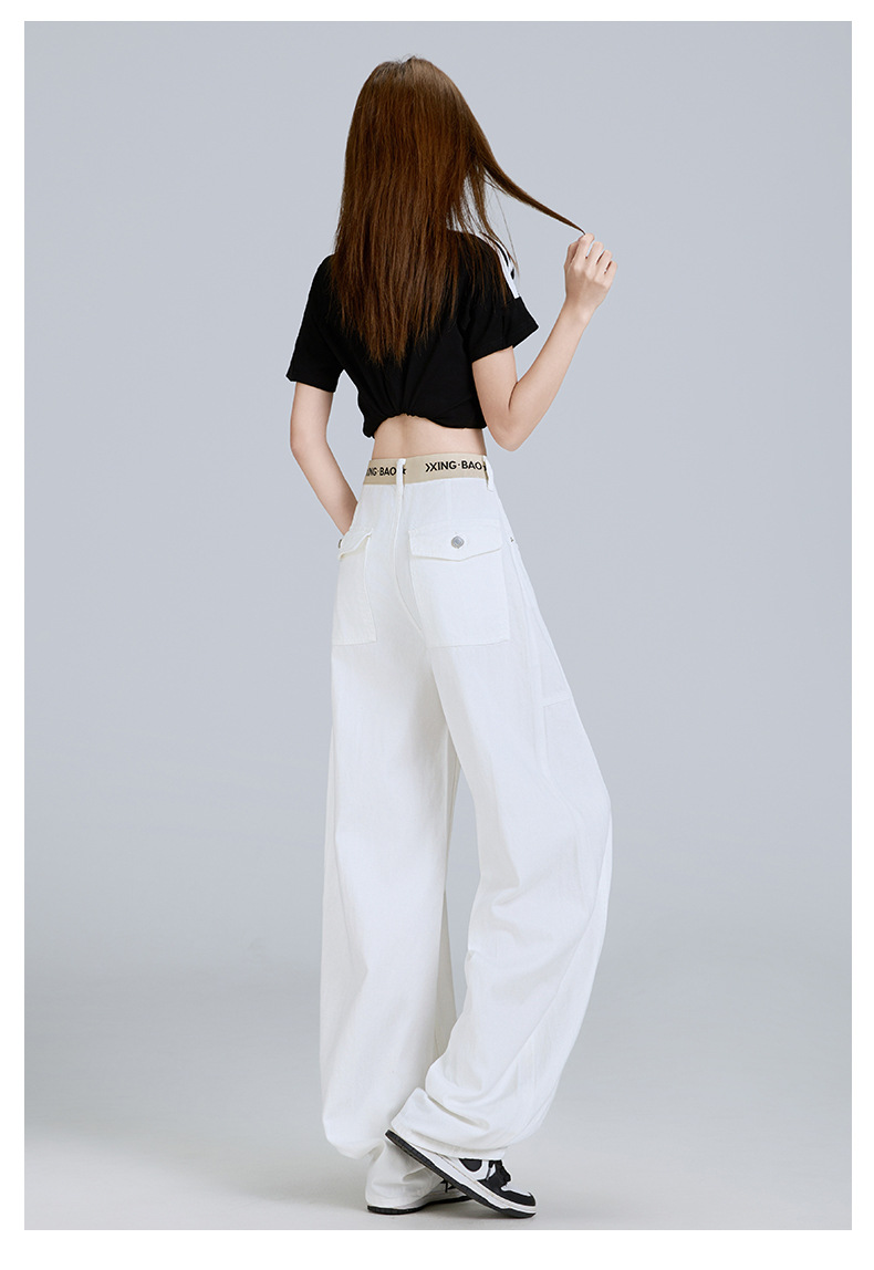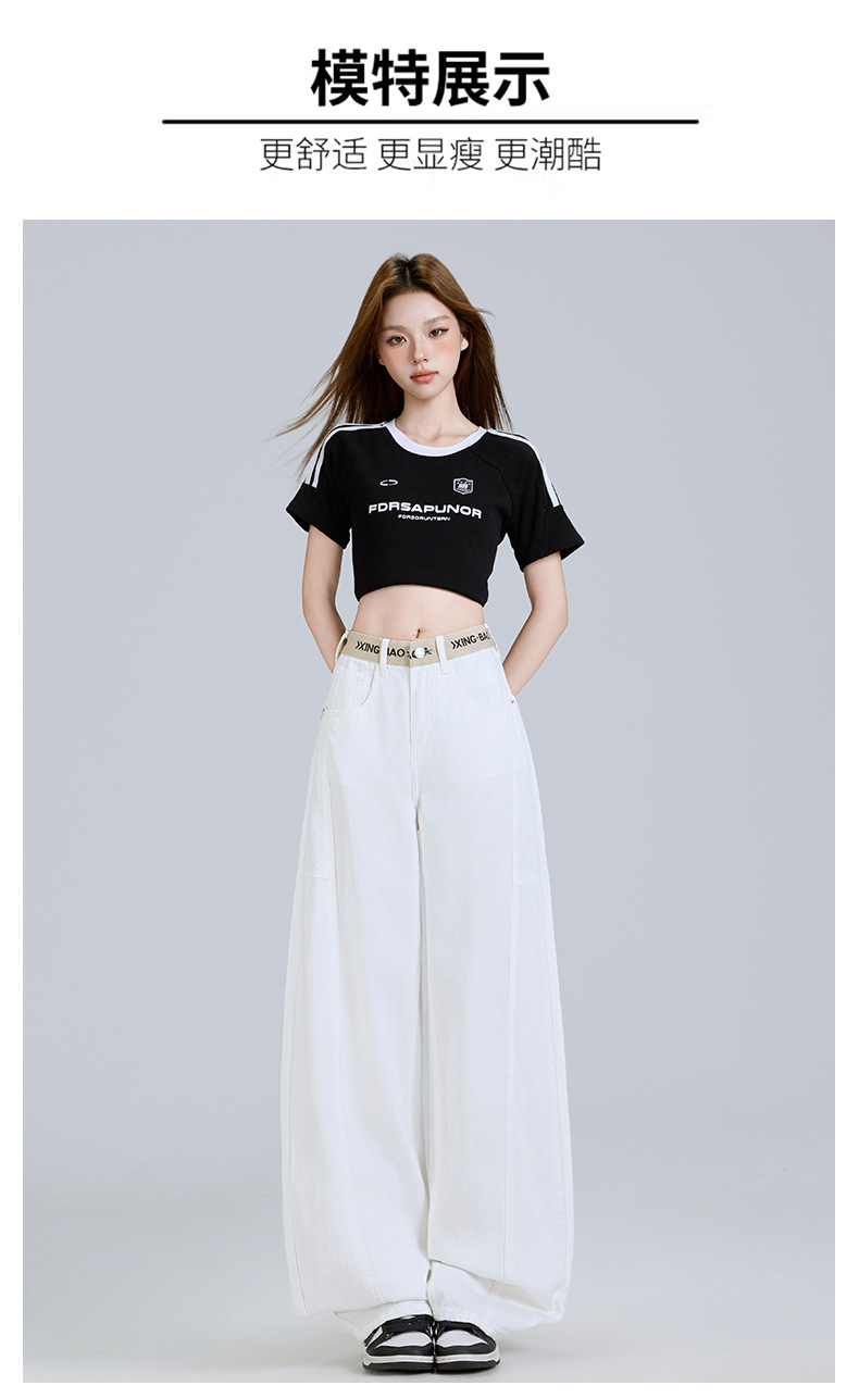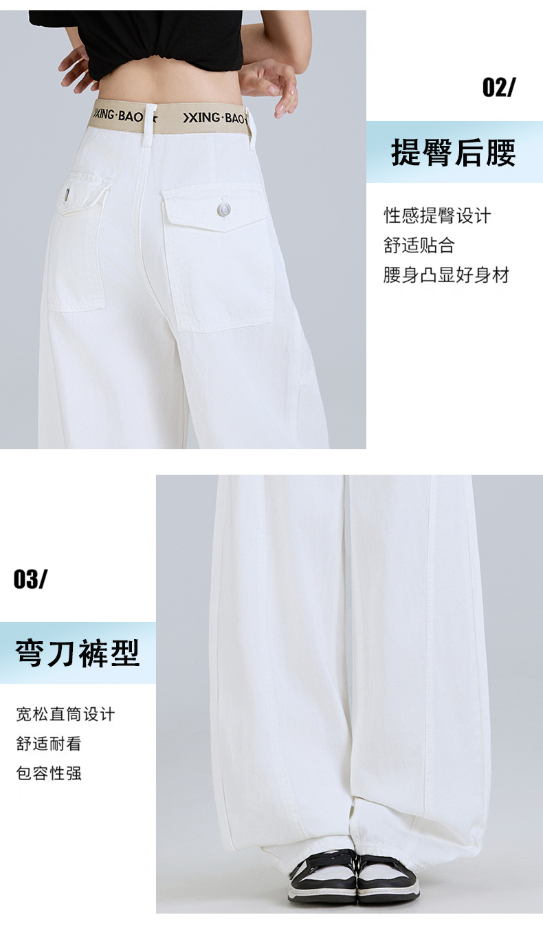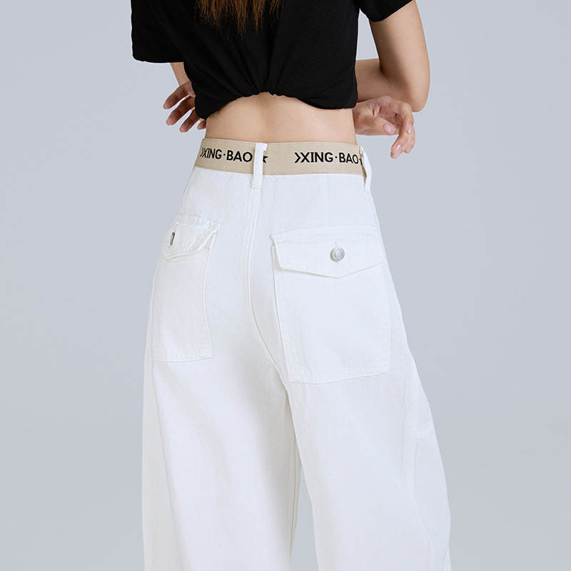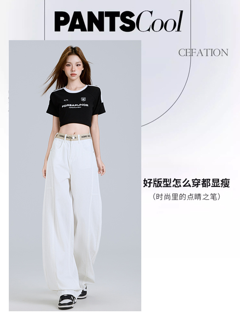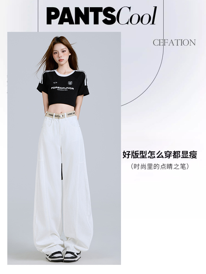 2025년 신상 가을 미색 하이웨이스트 채찍형 와이드 청바지로 여성의 슬림한 배형 몸매를 돋보이게 해주는 루즈한 바닥 길이 바지