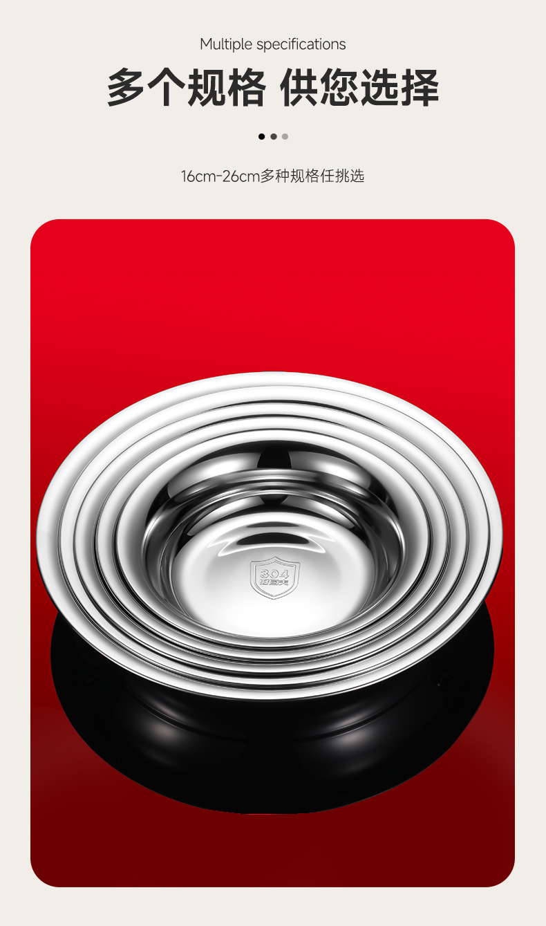 304 원형 디스크 깊은 접시 두꺼운 스테인레스 스틸 대형 접시 가정용 상업용 케이크 접시 캔틴 디너 접시 대형 찜 접시 밥 접시