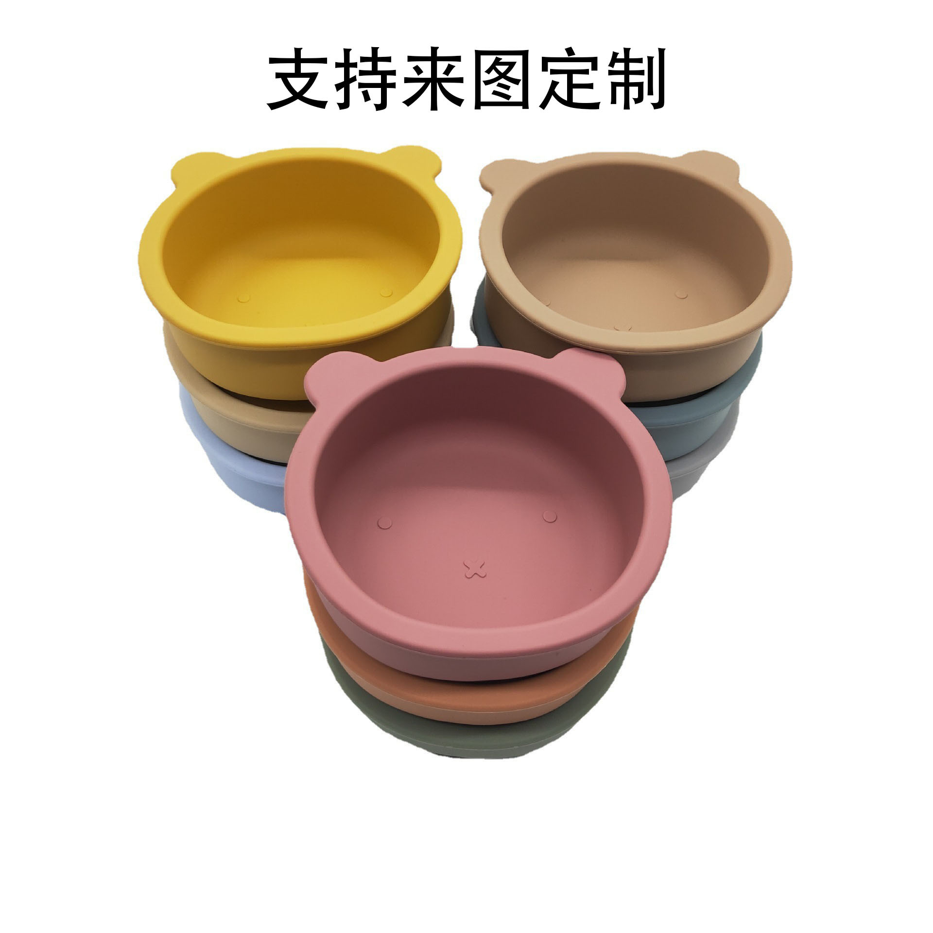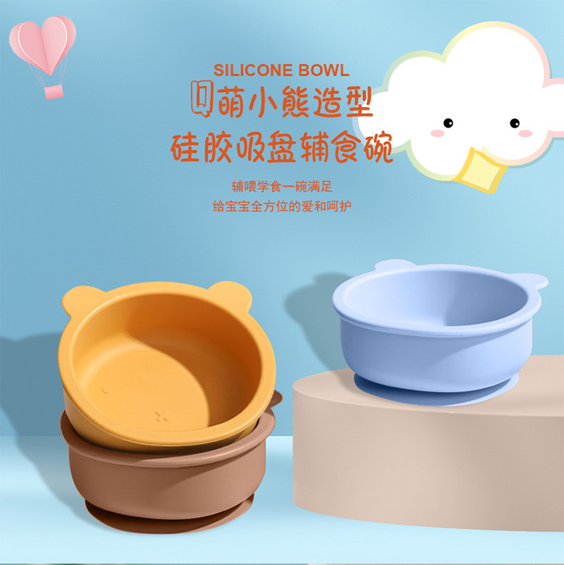 식품 등급 실리콘 어린이 식기 아기 곰 저녁 식사 접시 음식 그릇 아기 올인원 흡입 컵 과일 접시 도매