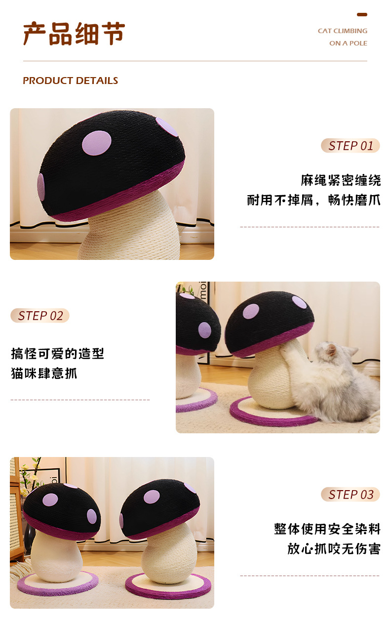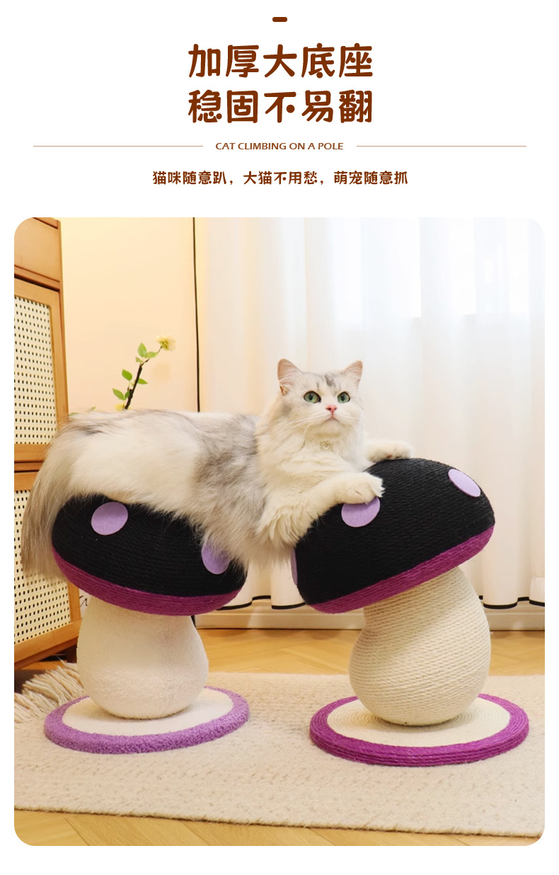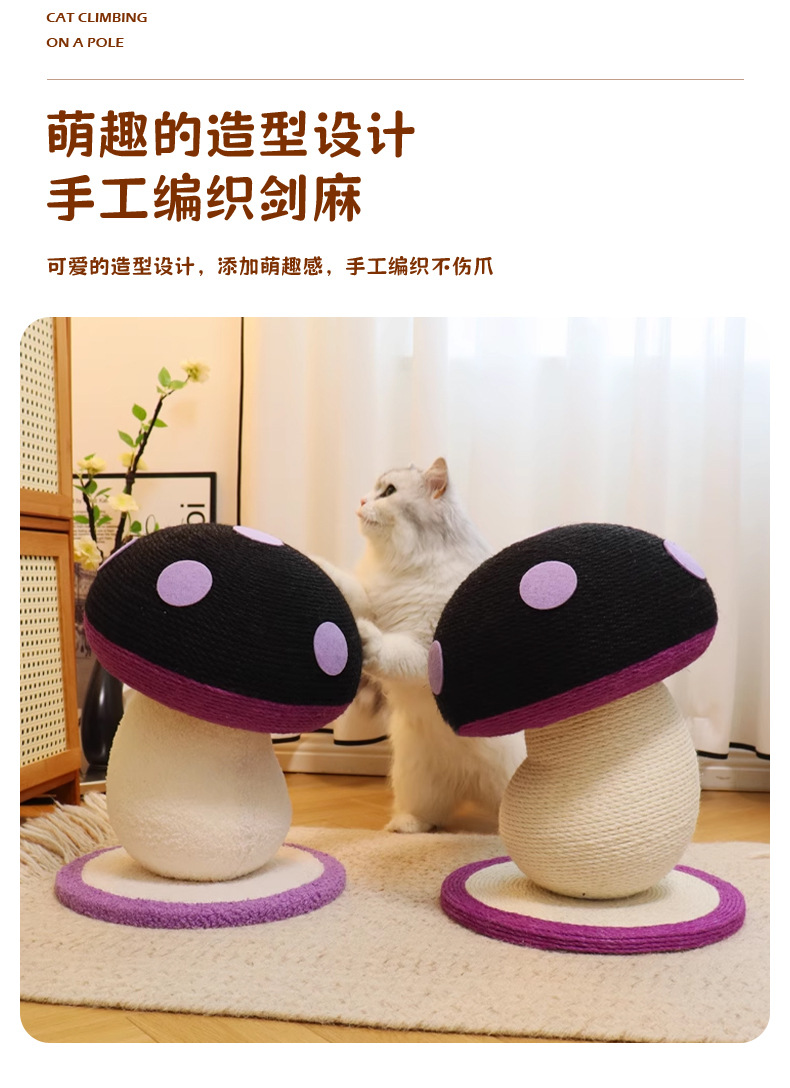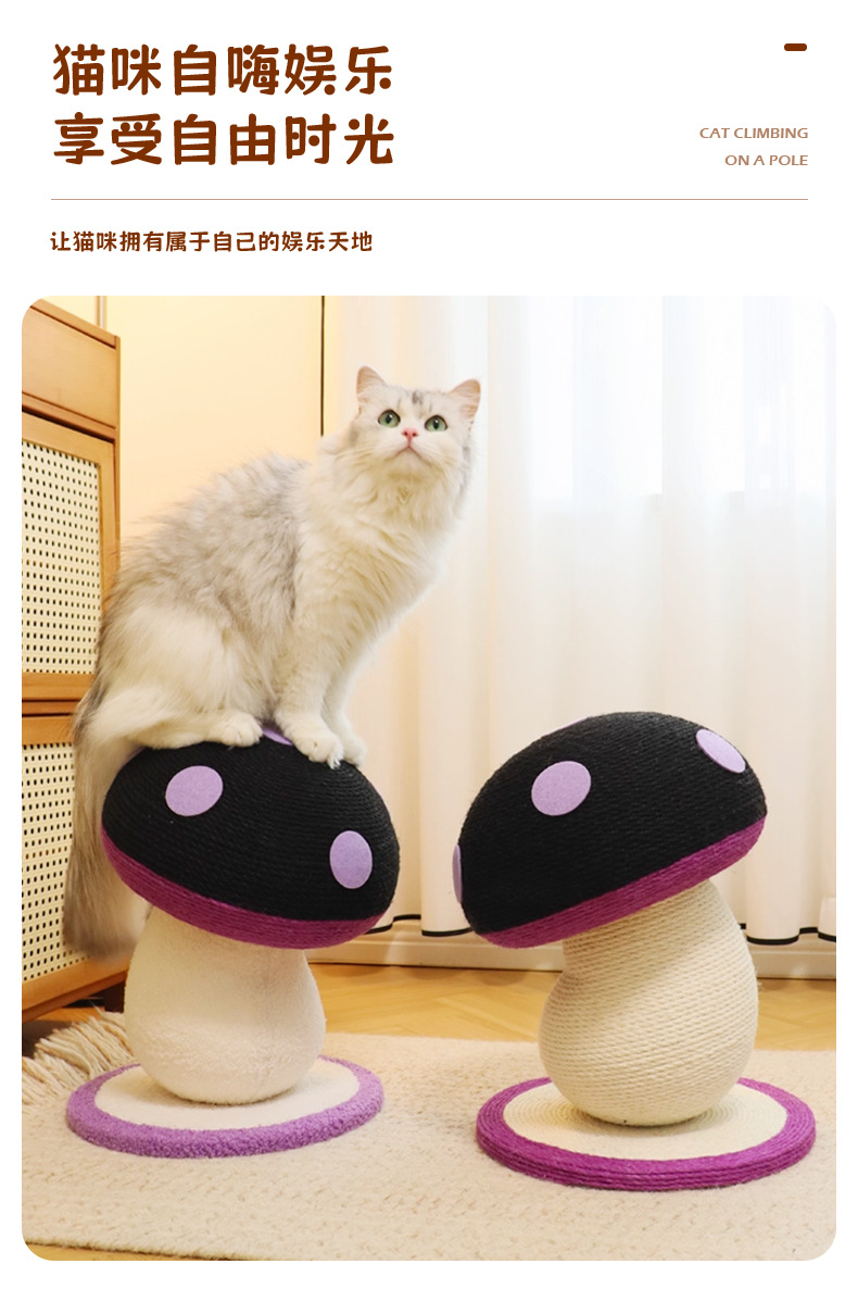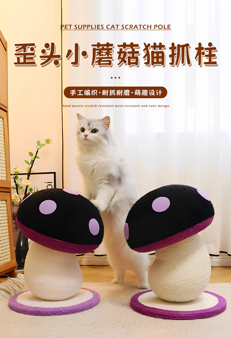 고양이 스크래치 보드, 내마모성 및 비탈착성, 고양이 스크래치 기둥, 대마 로프 수직 소형 고양이 클라이밍 프레임, 틸트 머리 버섯 고양이 장난감, 고양이 스크래치 공