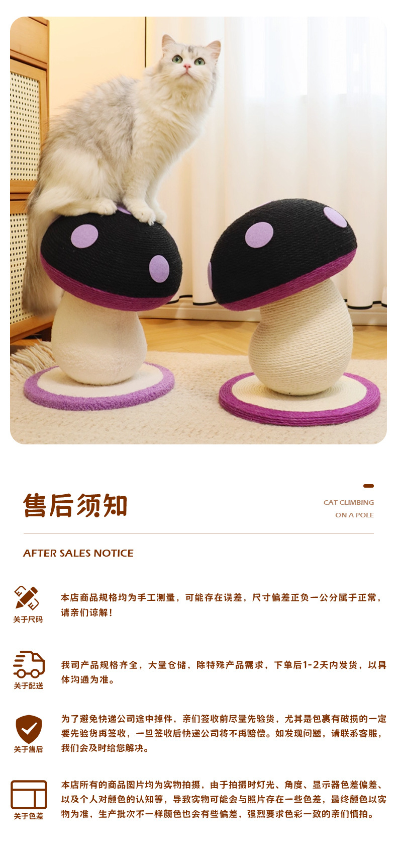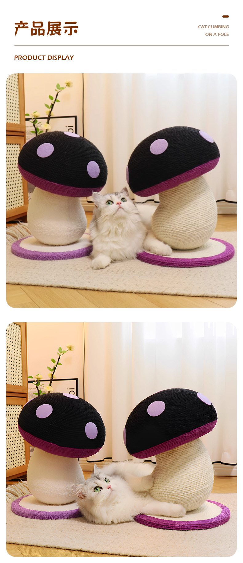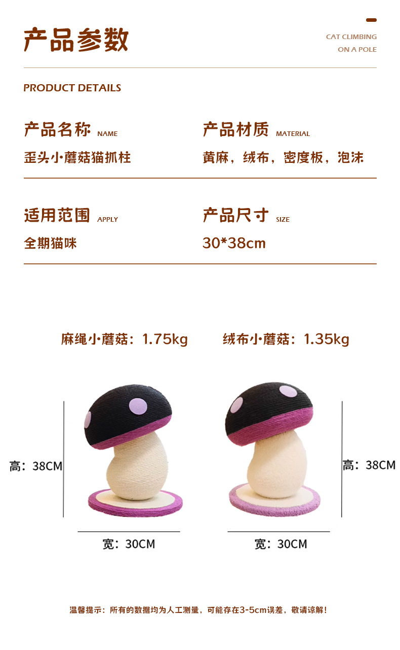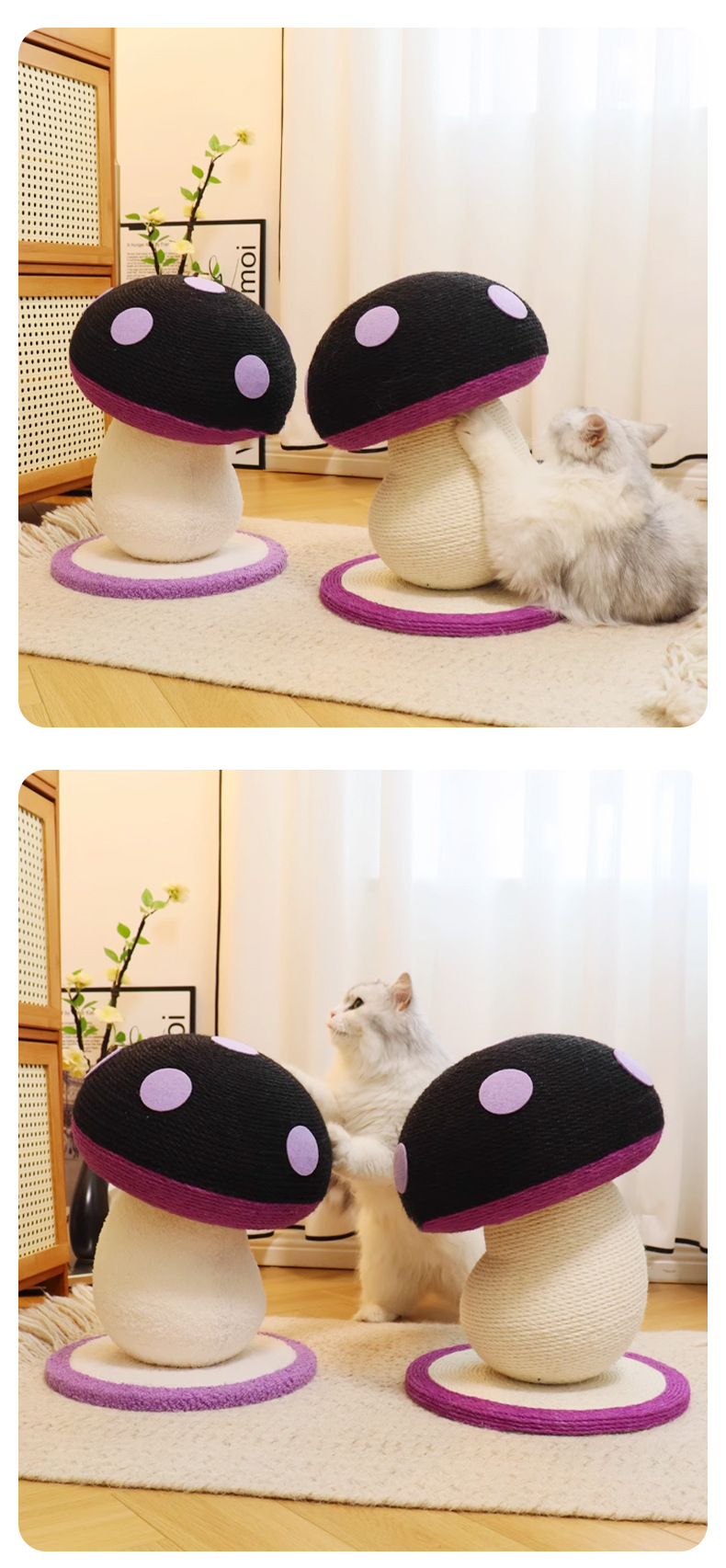고양이 스크래치 보드, 내마모성 및 비탈착성, 고양이 스크래치 기둥, 대마 로프 수직 소형 고양이 클라이밍 프레임, 틸트 머리 버섯 고양이 장난감, 고양이 스크래치 공