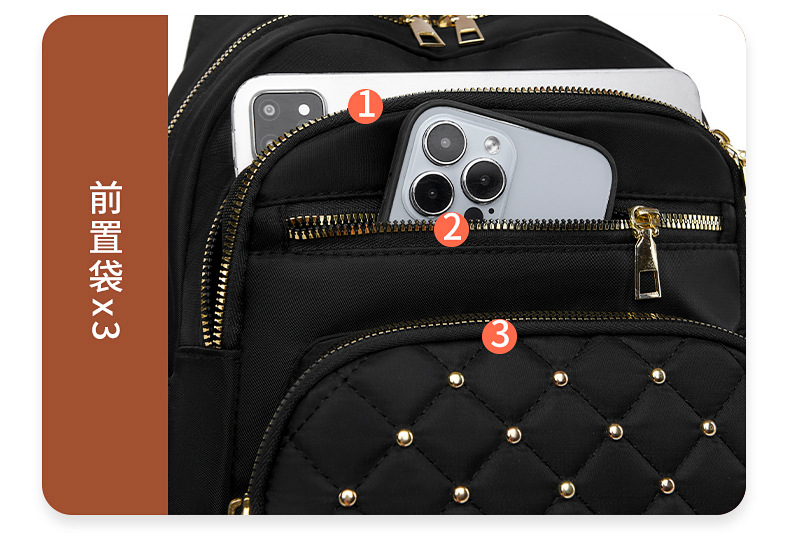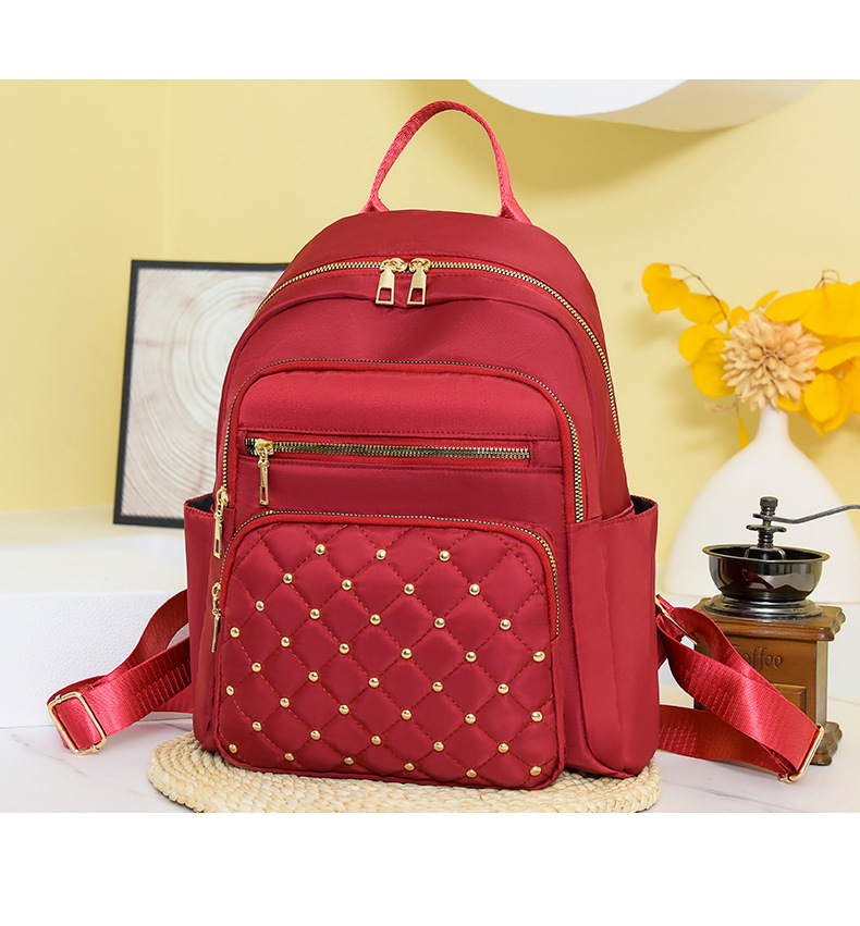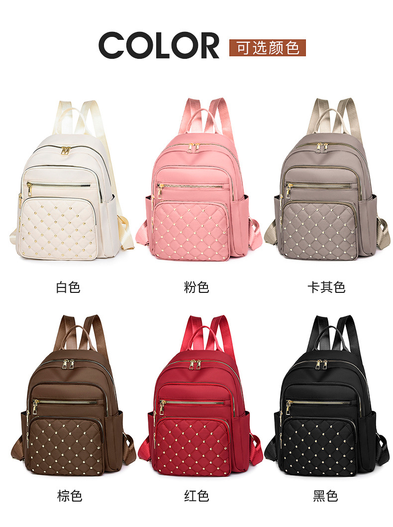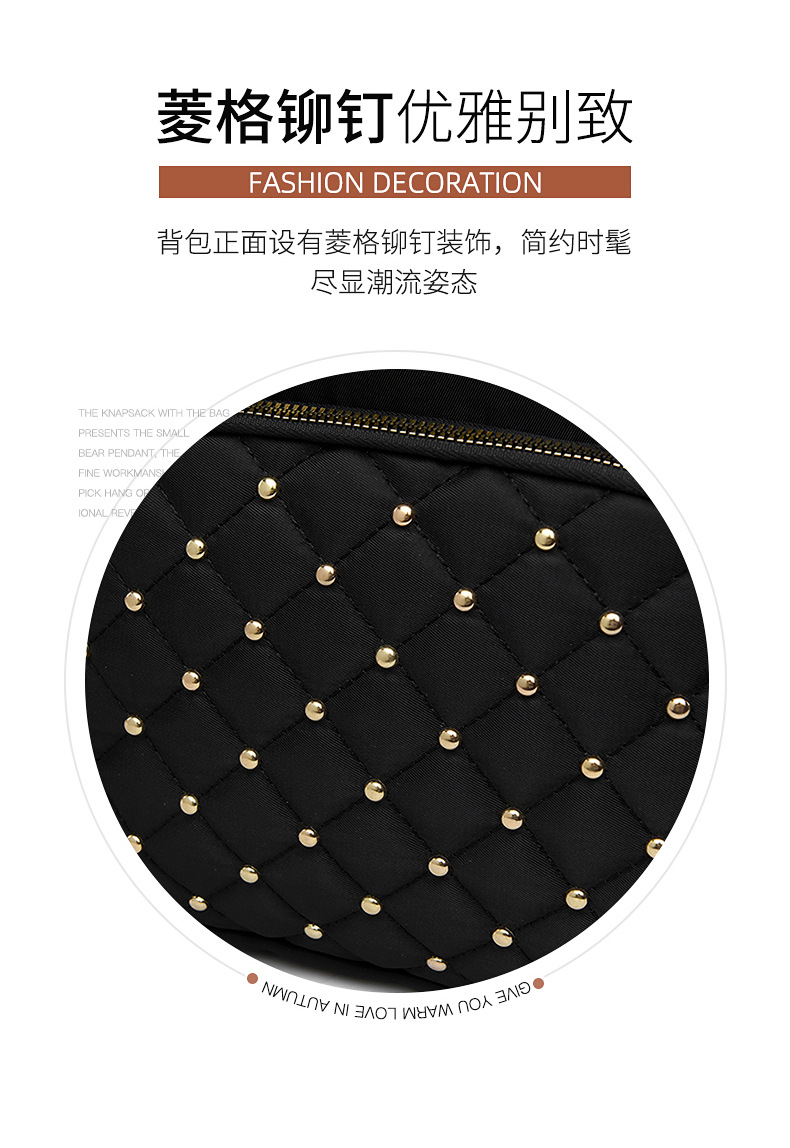 여성을 위한 국경 간 인기 마름모 자수 리벳 배낭 2025 새로운 스타일 패셔너블하고 간단한 외출 통근 캐주얼 다용도