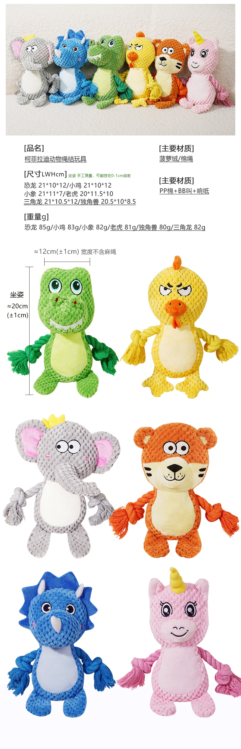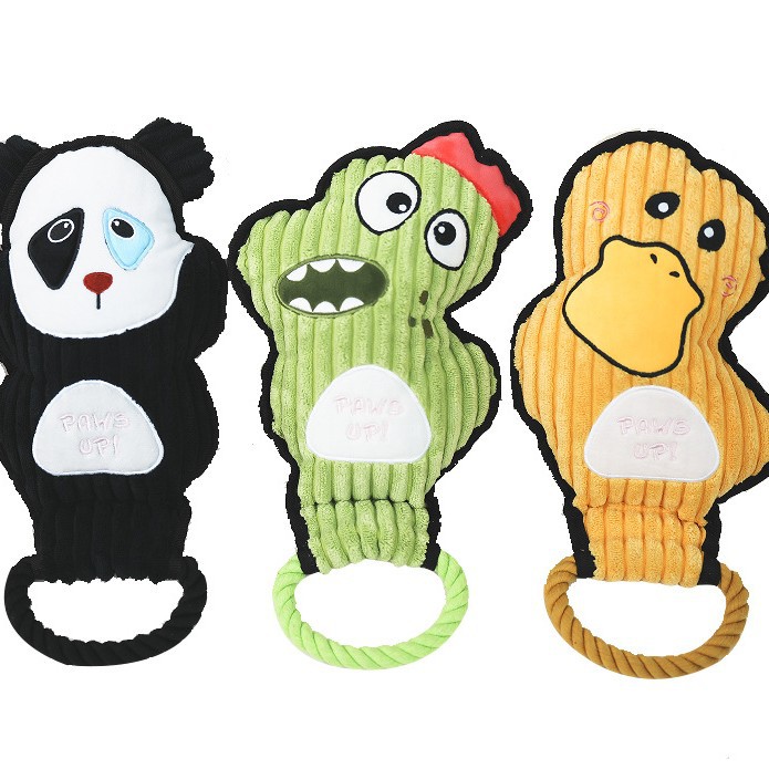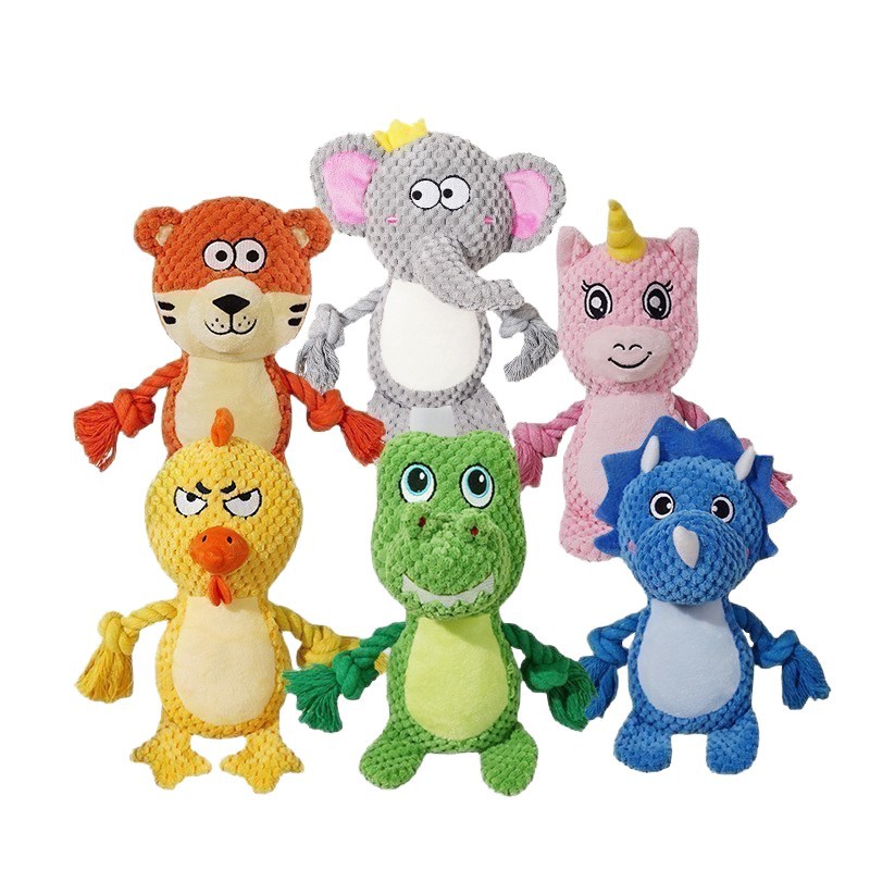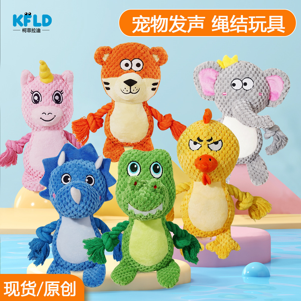 새로운 국경 간 애완 동물 플러시 사운드 면 로프 장난감 공룡 병아리 호랑이 개 대화 형 줄다리기 용품