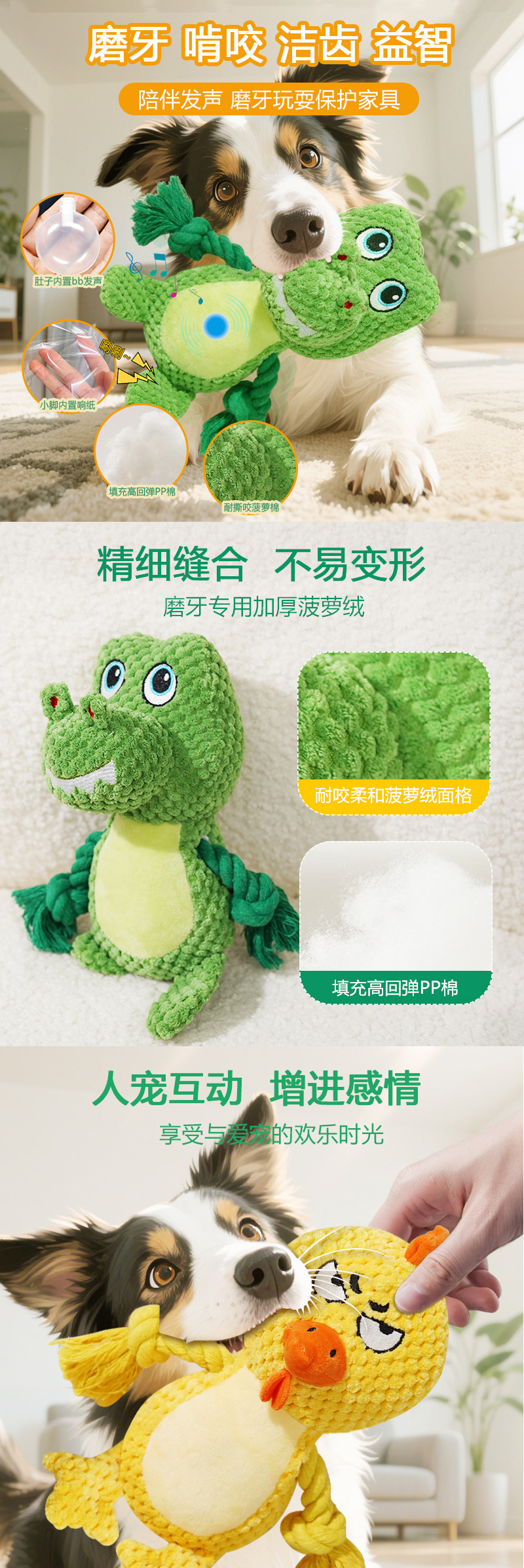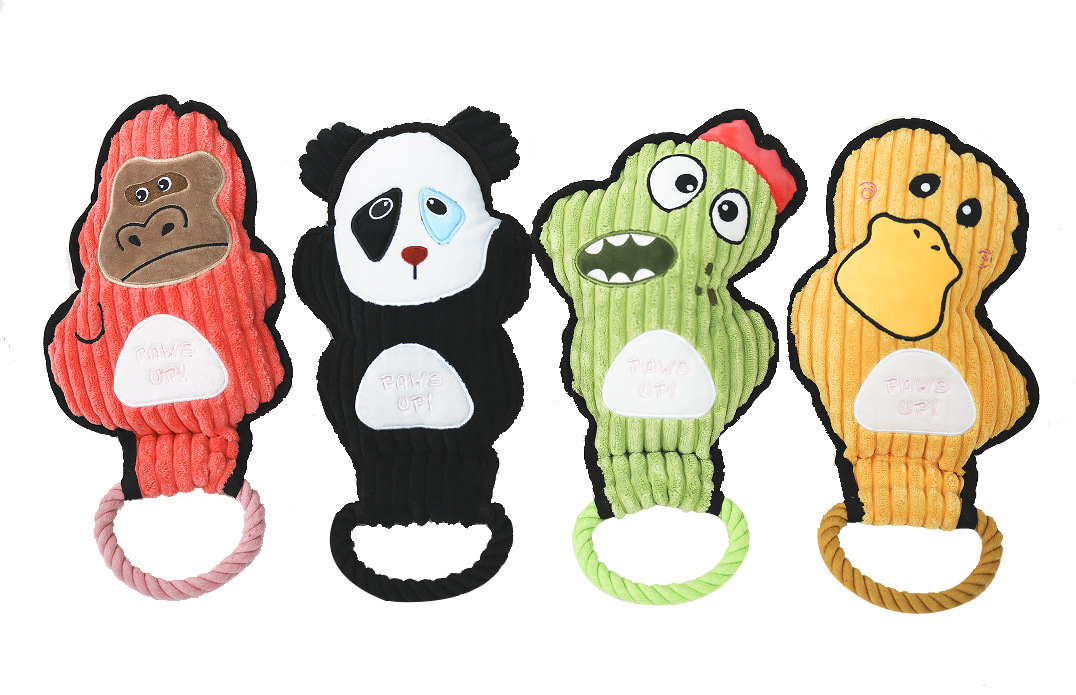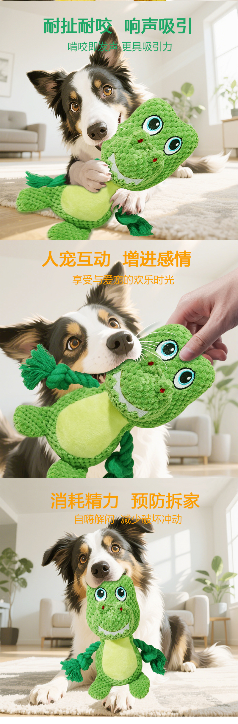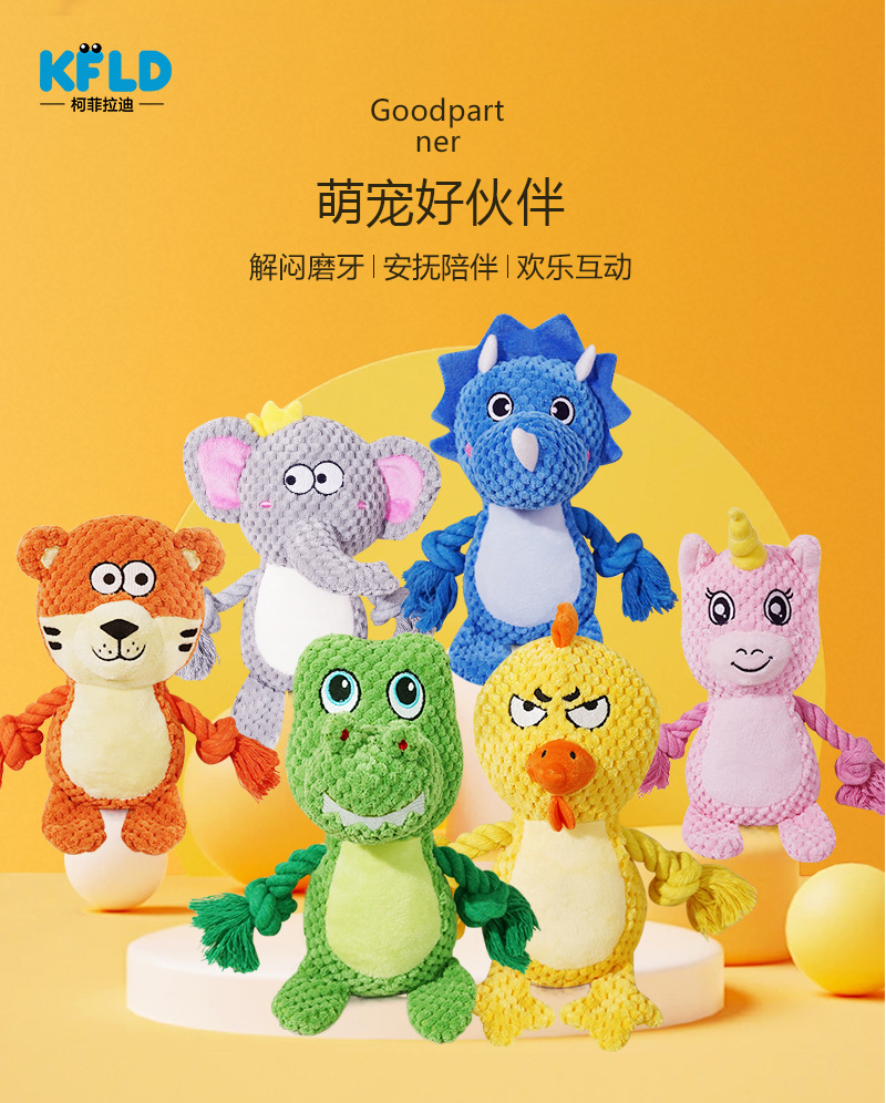 새로운 국경 간 애완 동물 플러시 사운드 면 로프 장난감 공룡 병아리 호랑이 개 대화 형 줄다리기 용품