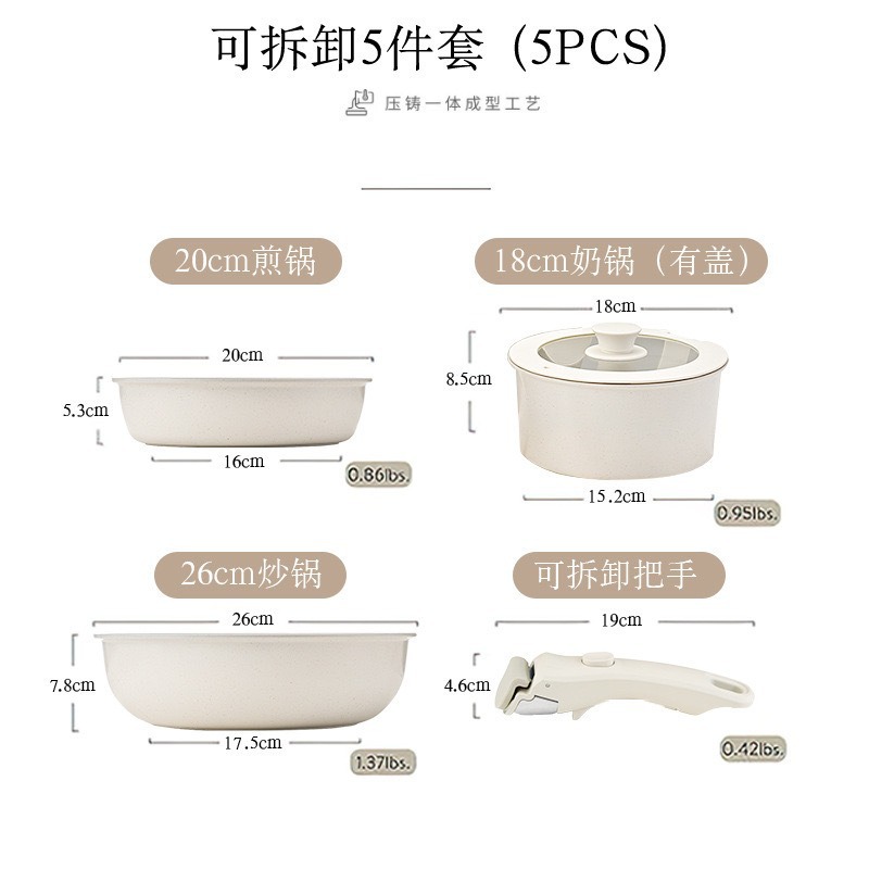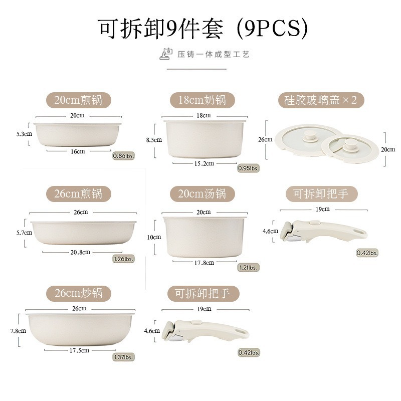 탈착식 냄비 세트, 찜통, 프라이팬, 논스틱 프라이팬, 가정용 손잡이 분리 냄비, 카롯 크로스보더