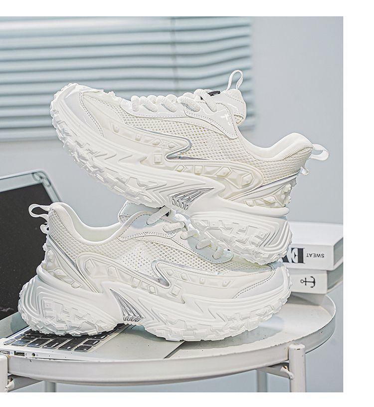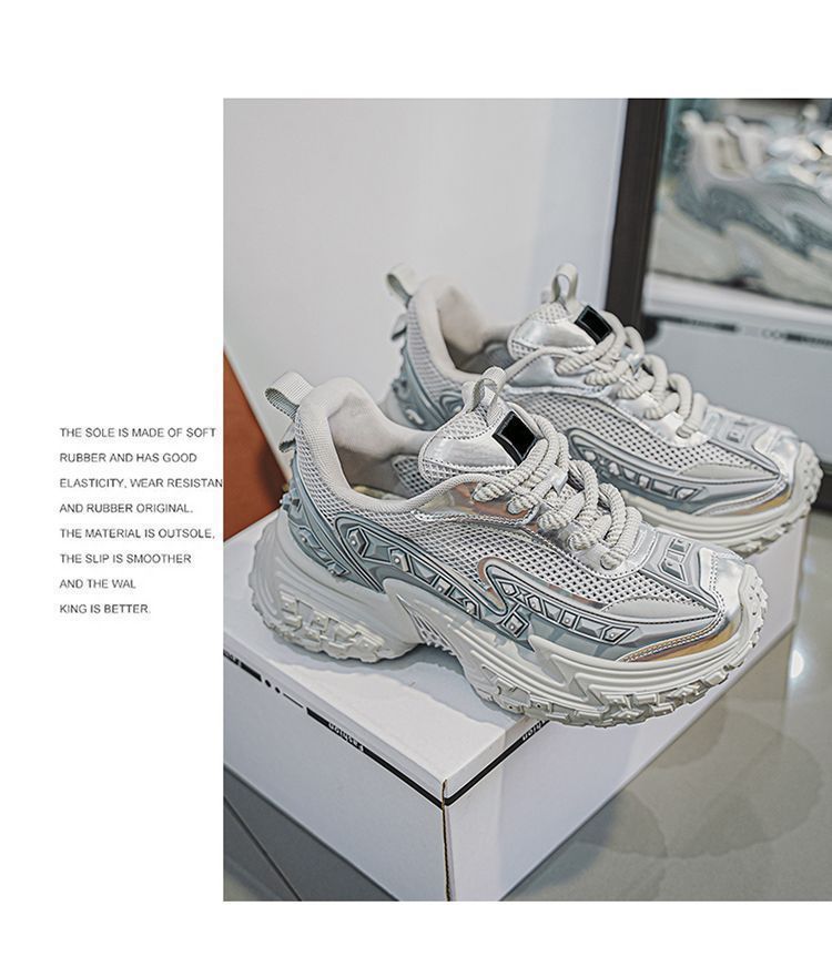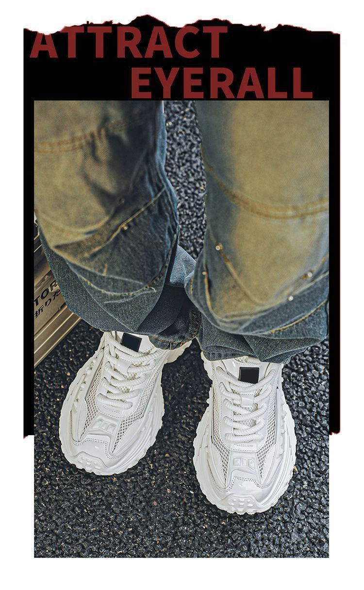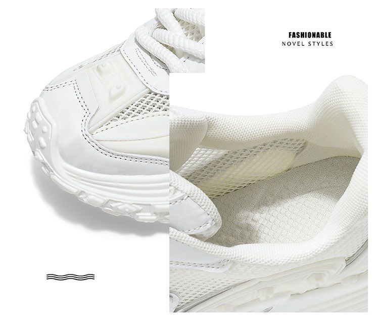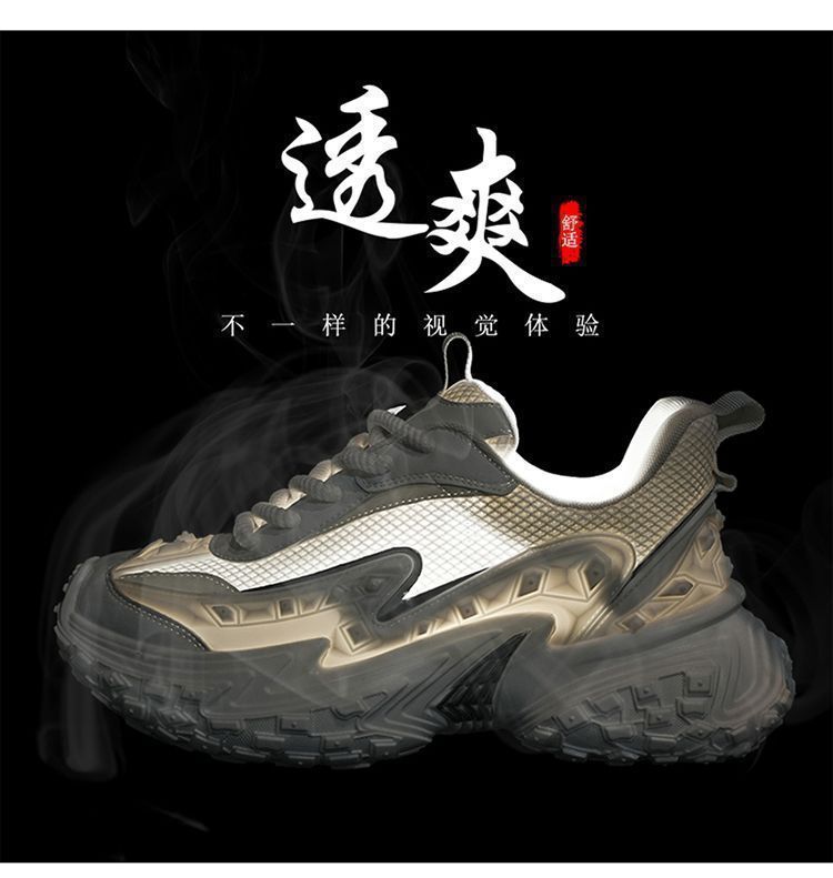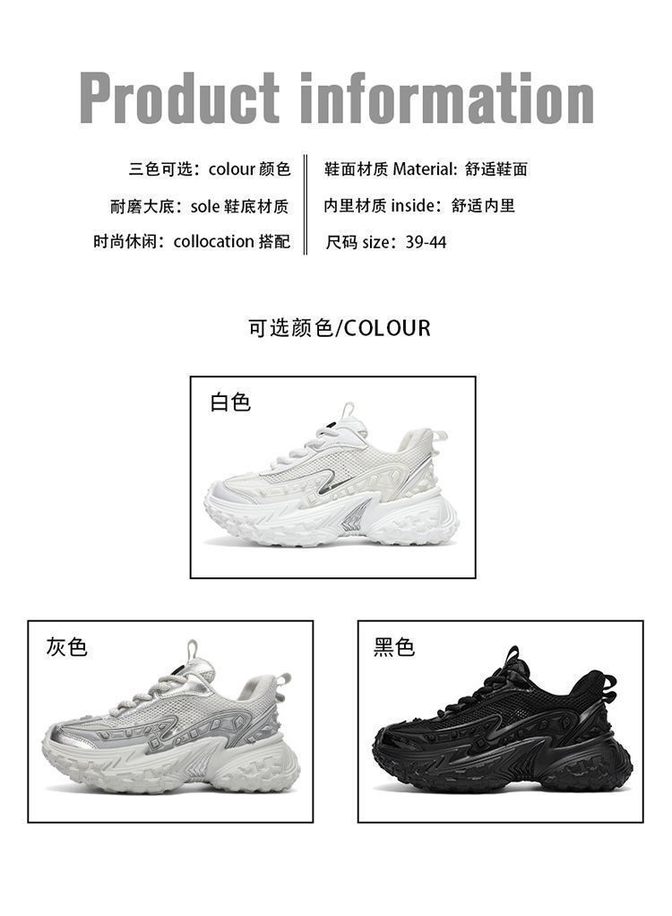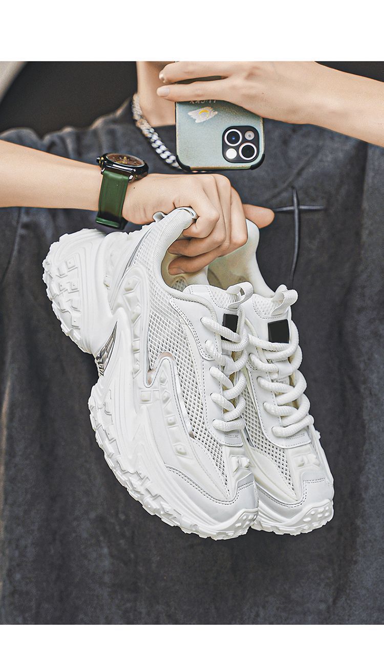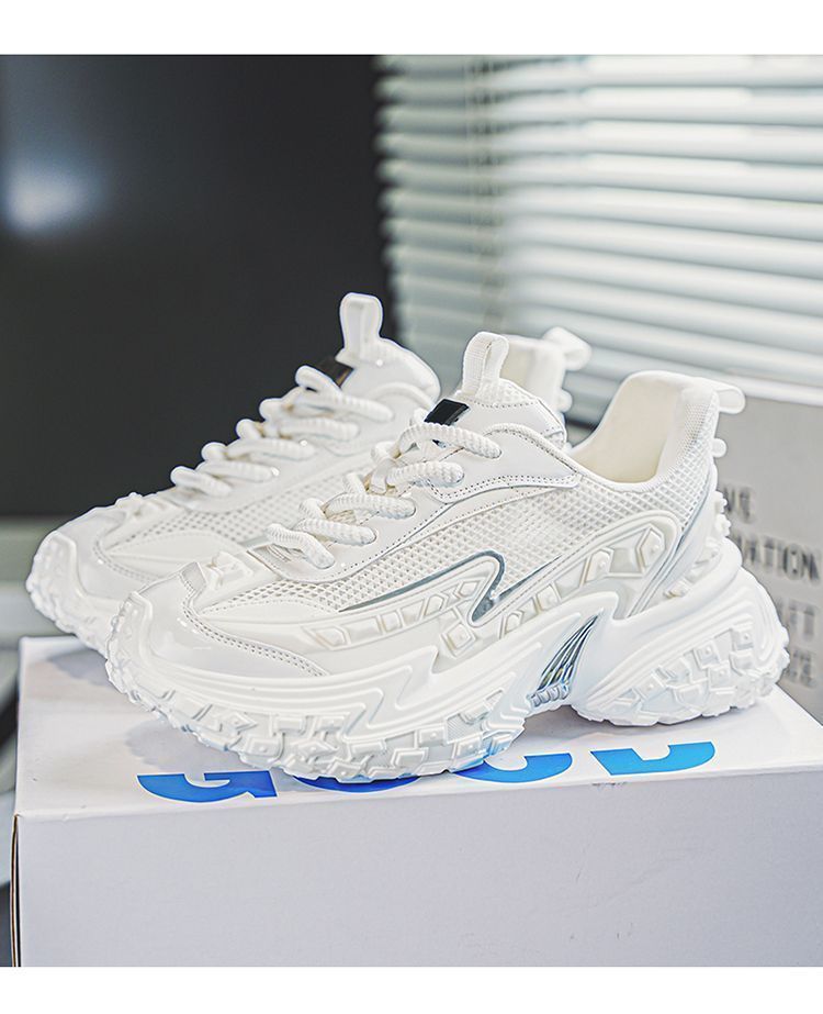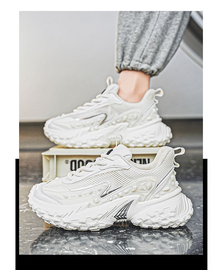 2025 핫 스타일 남성 신발 여름 메쉬 스포츠 및 레저 흰색 달리기 미끄럼 방지 두꺼운 밑창 높이 증가 아빠 유행 신발