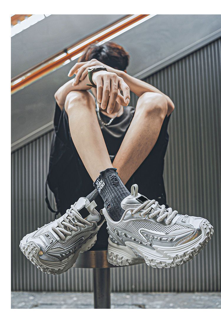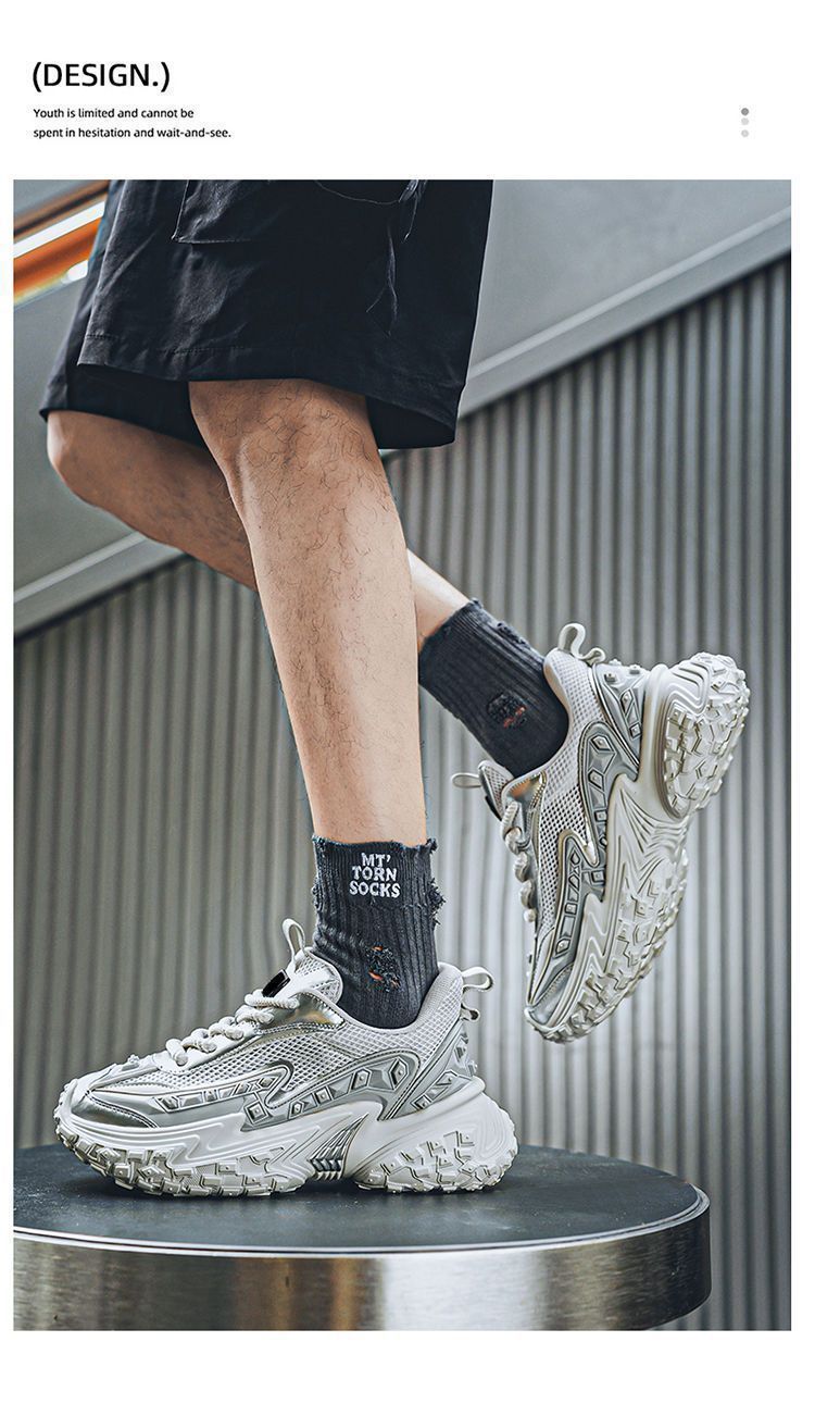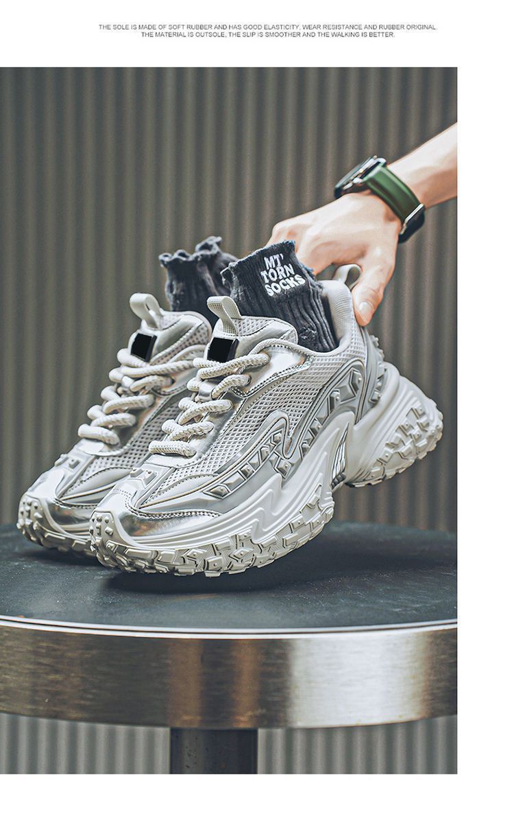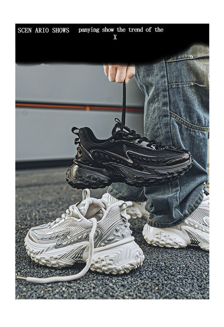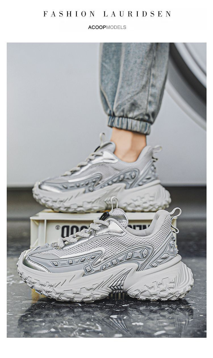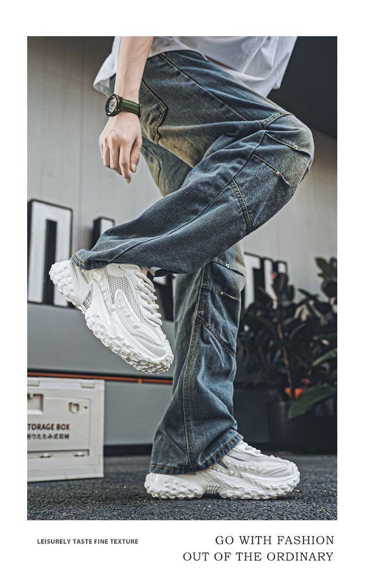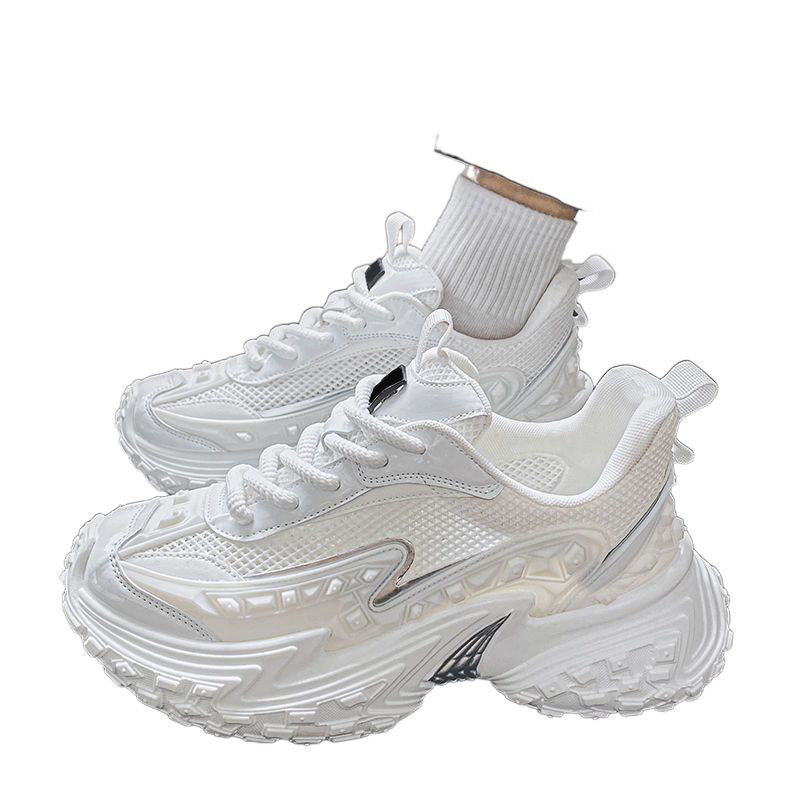 2025 핫 스타일 남성 신발 여름 메쉬 스포츠 및 레저 흰색 달리기 미끄럼 방지 두꺼운 밑창 높이 증가 아빠 유행 신발