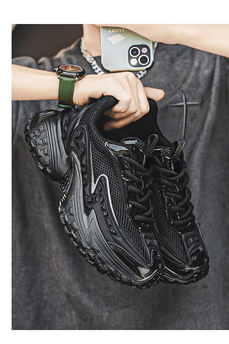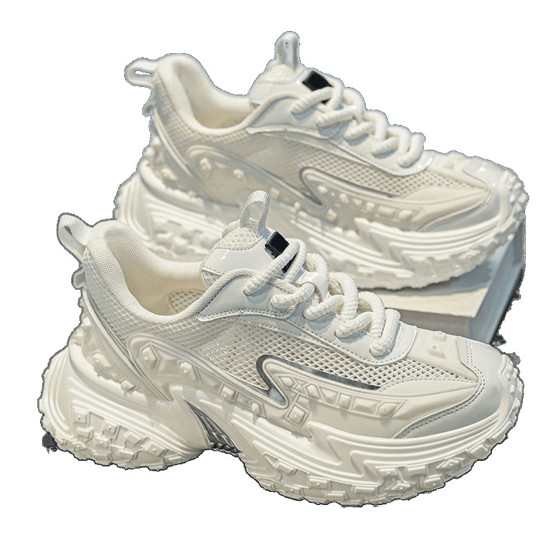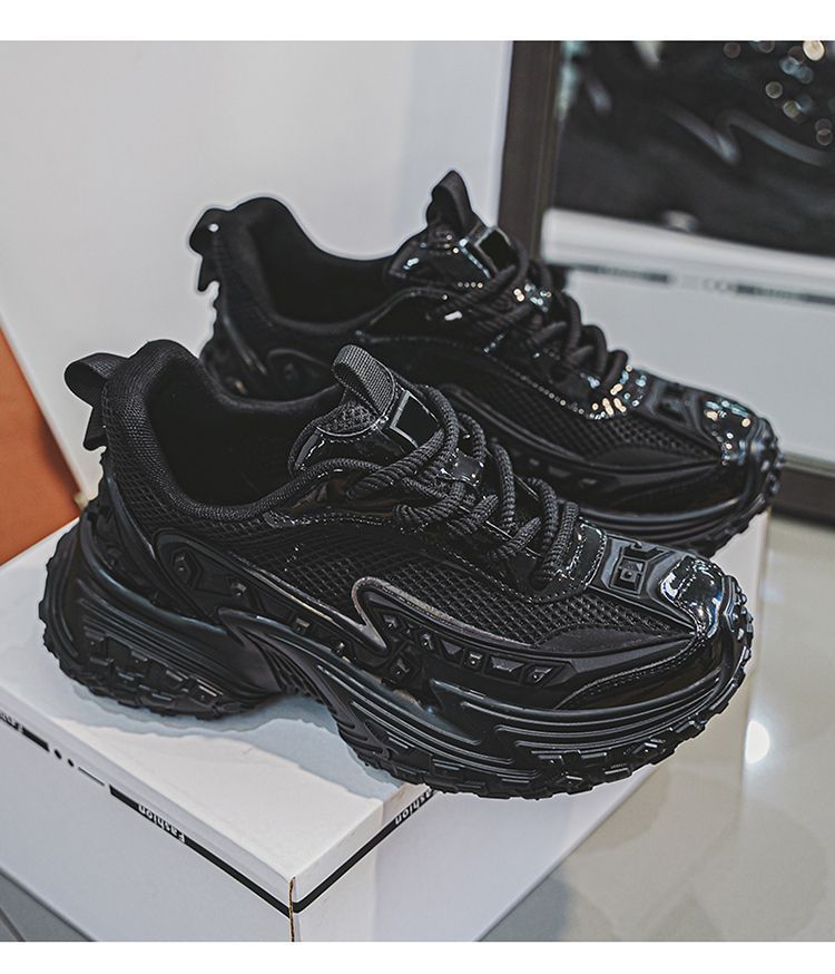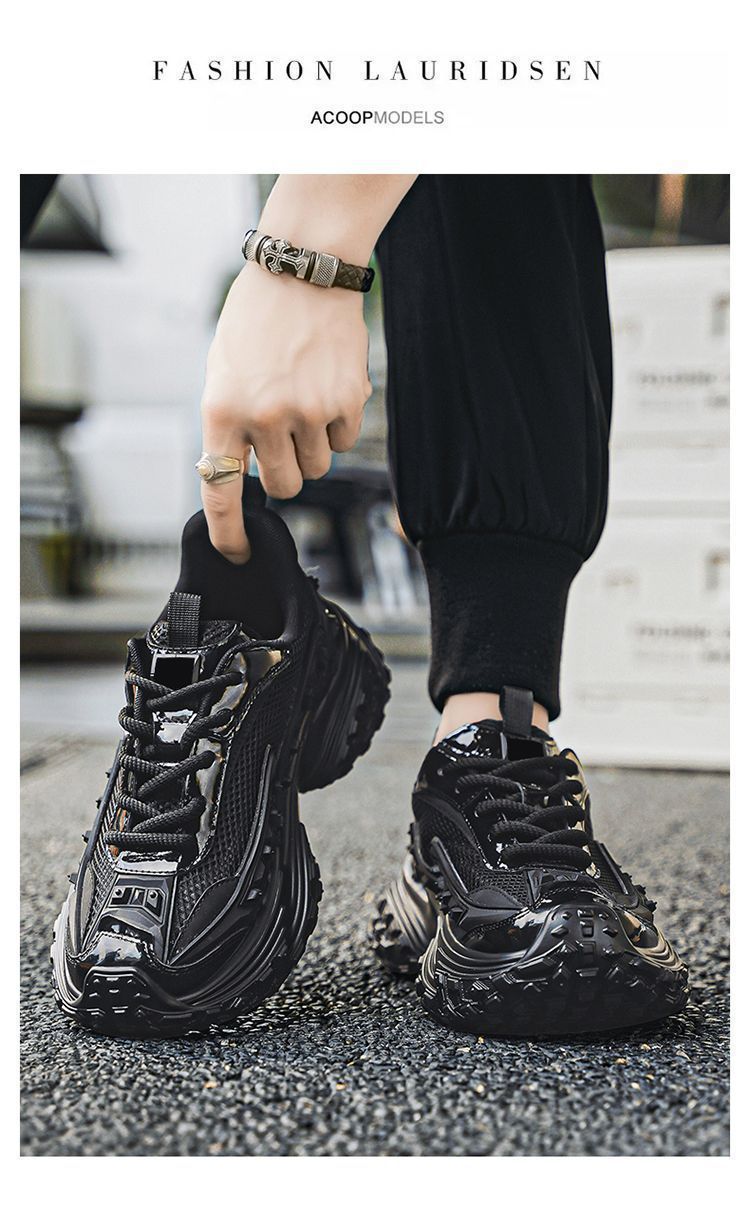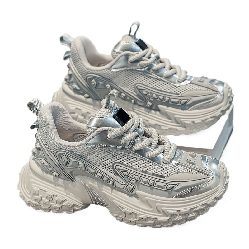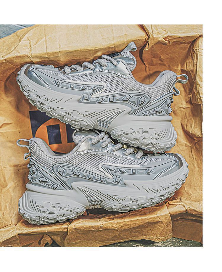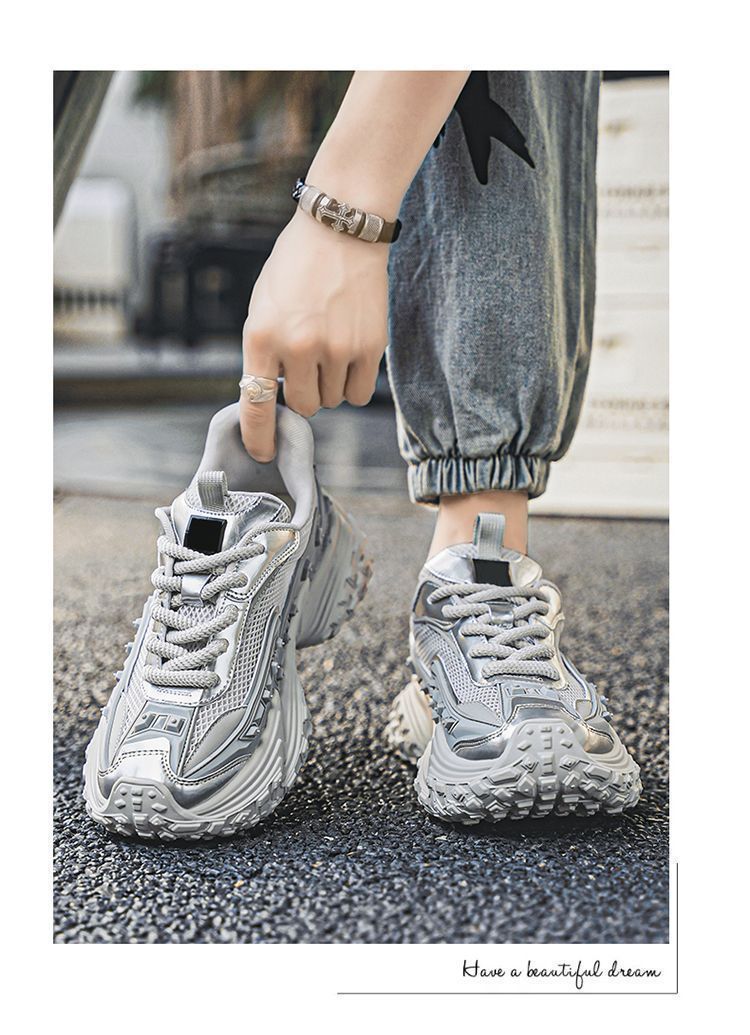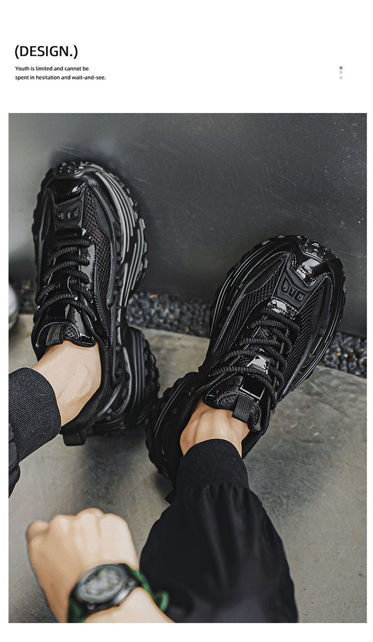 2025 핫 스타일 남성 신발 여름 메쉬 스포츠 및 레저 흰색 달리기 미끄럼 방지 두꺼운 밑창 높이 증가 아빠 유행 신발