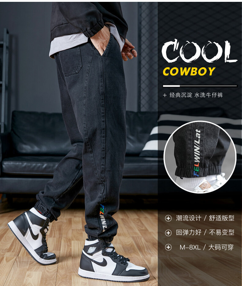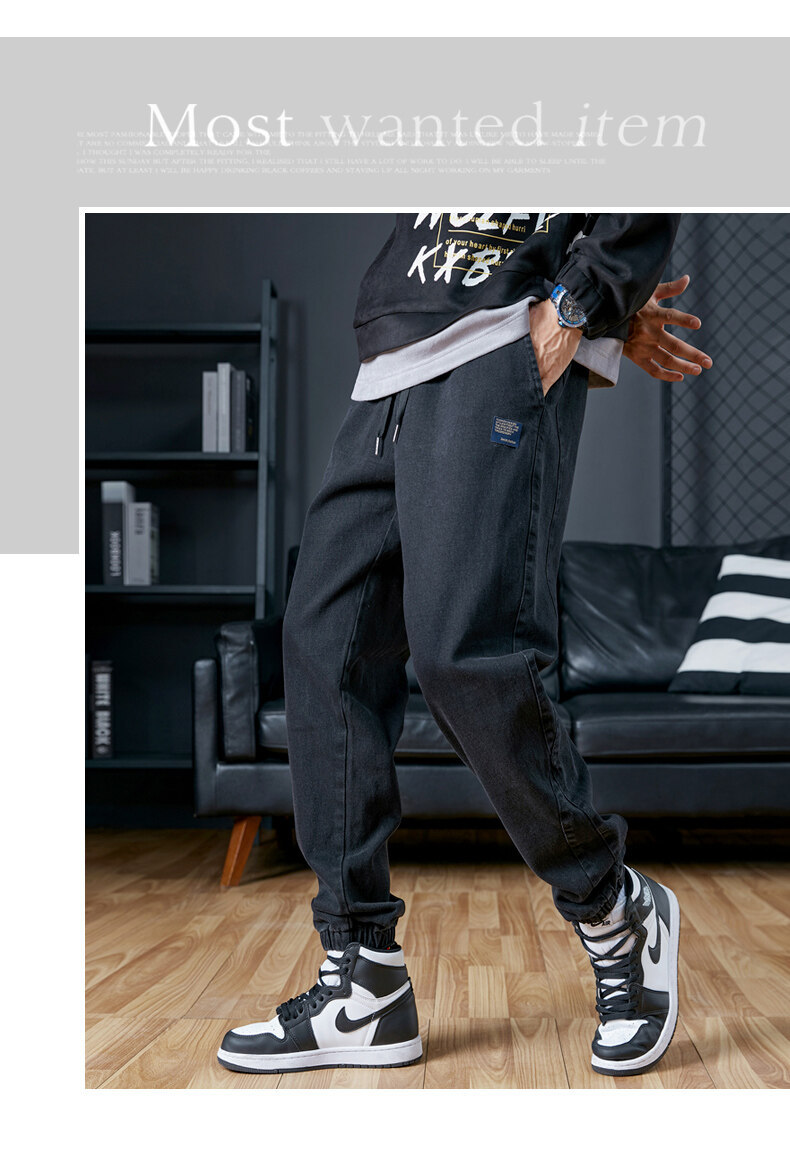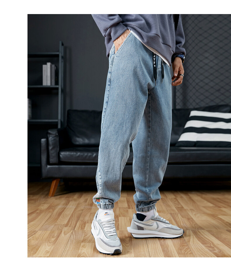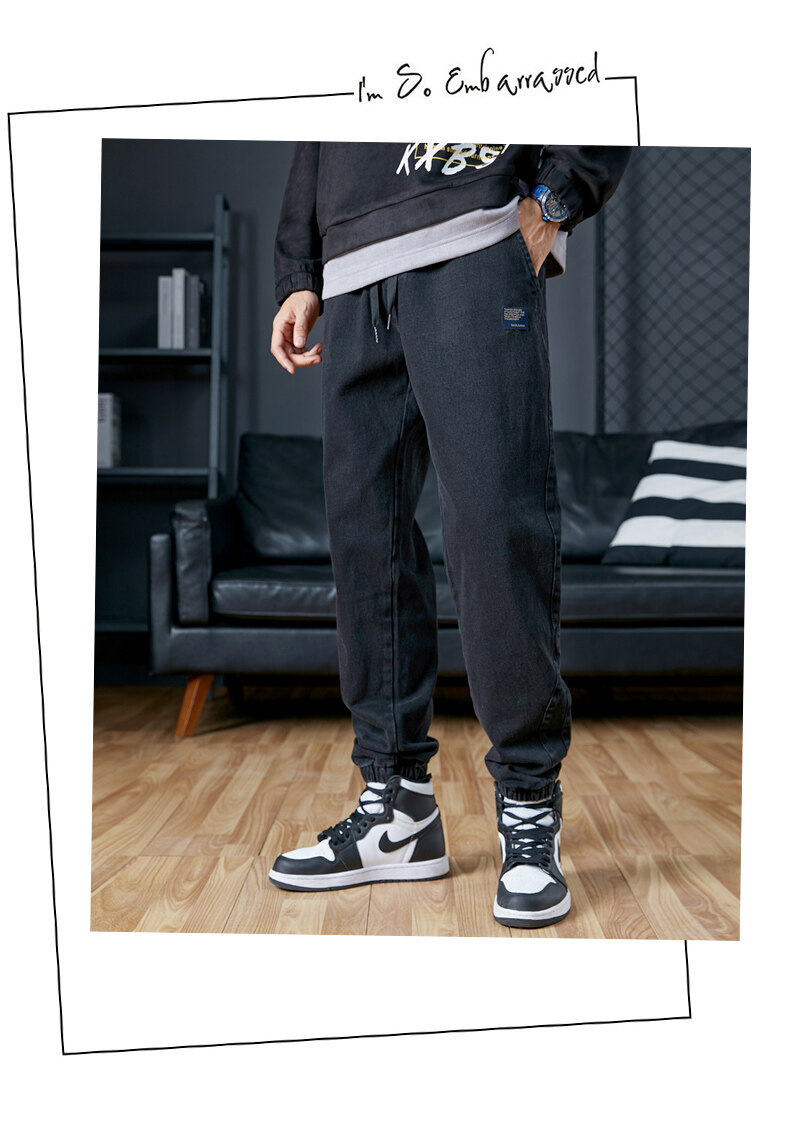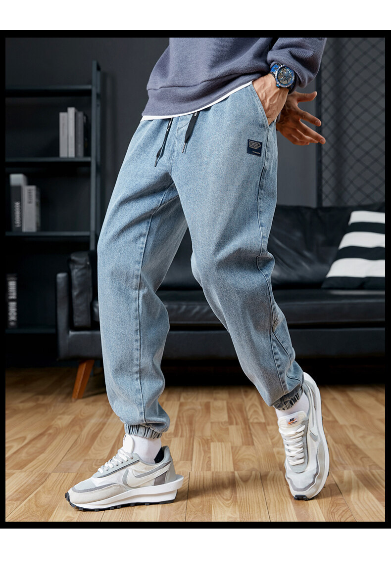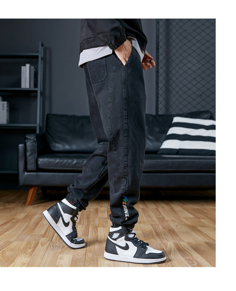 남성용 플러스 사이즈 가을 겨울 청바지, 루즈한 9부 팬츠, 한국 스타일 트렌디 브랜드 하렘 팬츠, 캐주얼 팬츠, 바지
