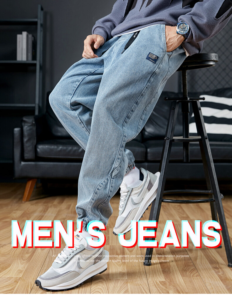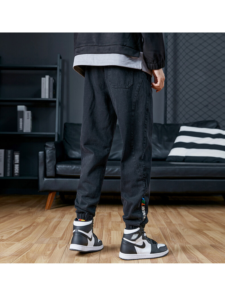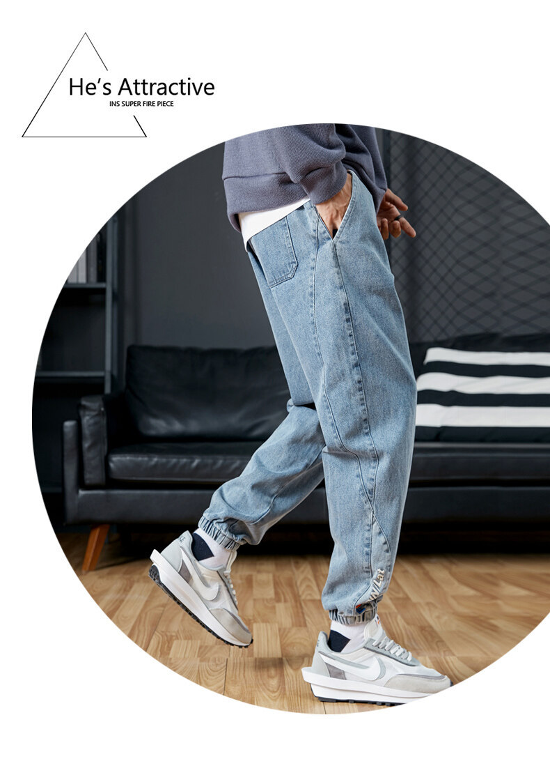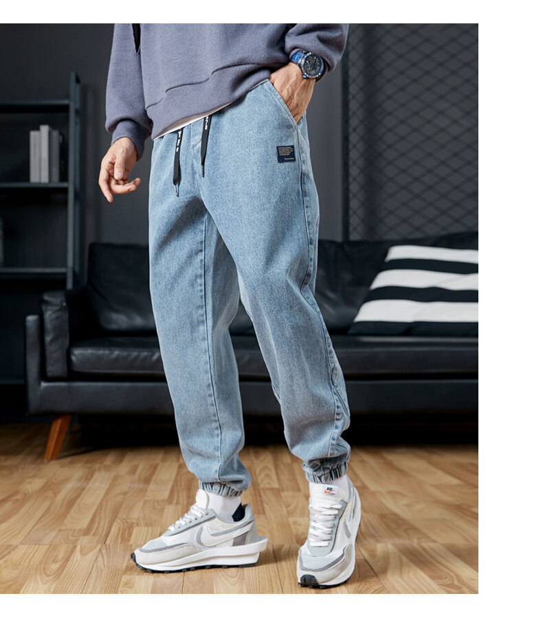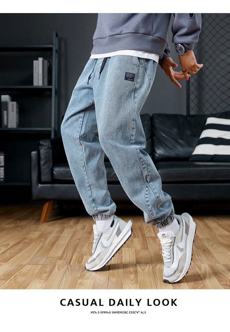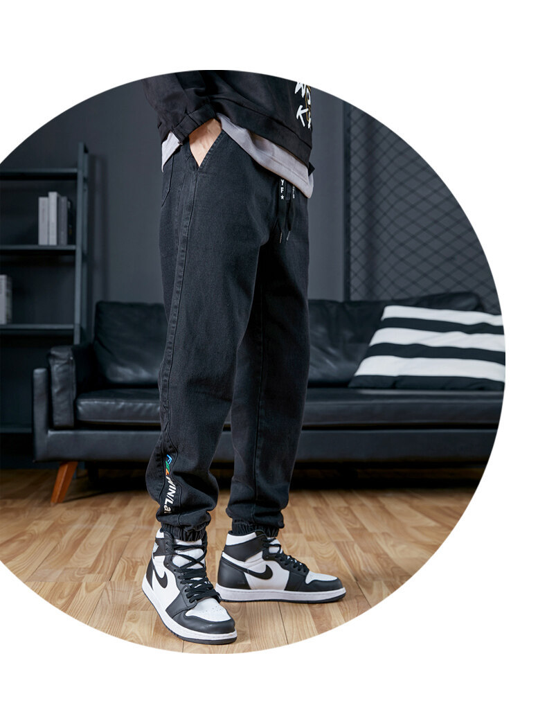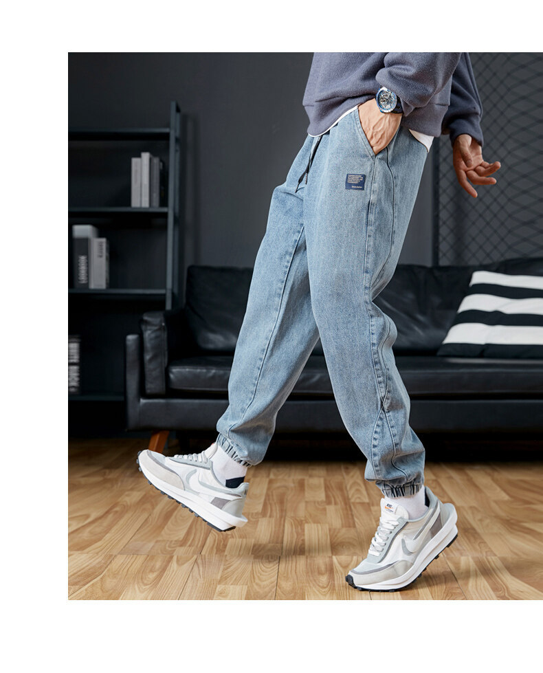 남성용 플러스 사이즈 가을 겨울 청바지, 루즈한 9부 팬츠, 한국 스타일 트렌디 브랜드 하렘 팬츠, 캐주얼 팬츠, 바지