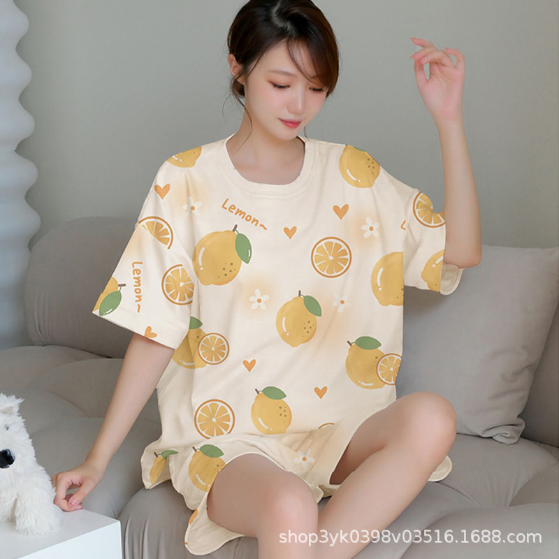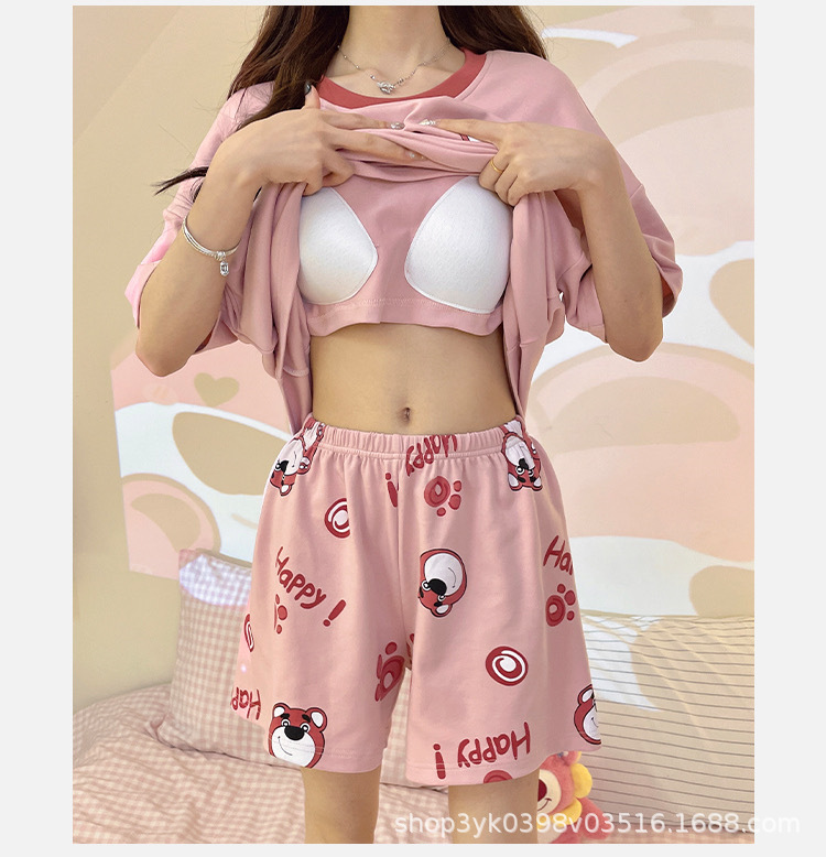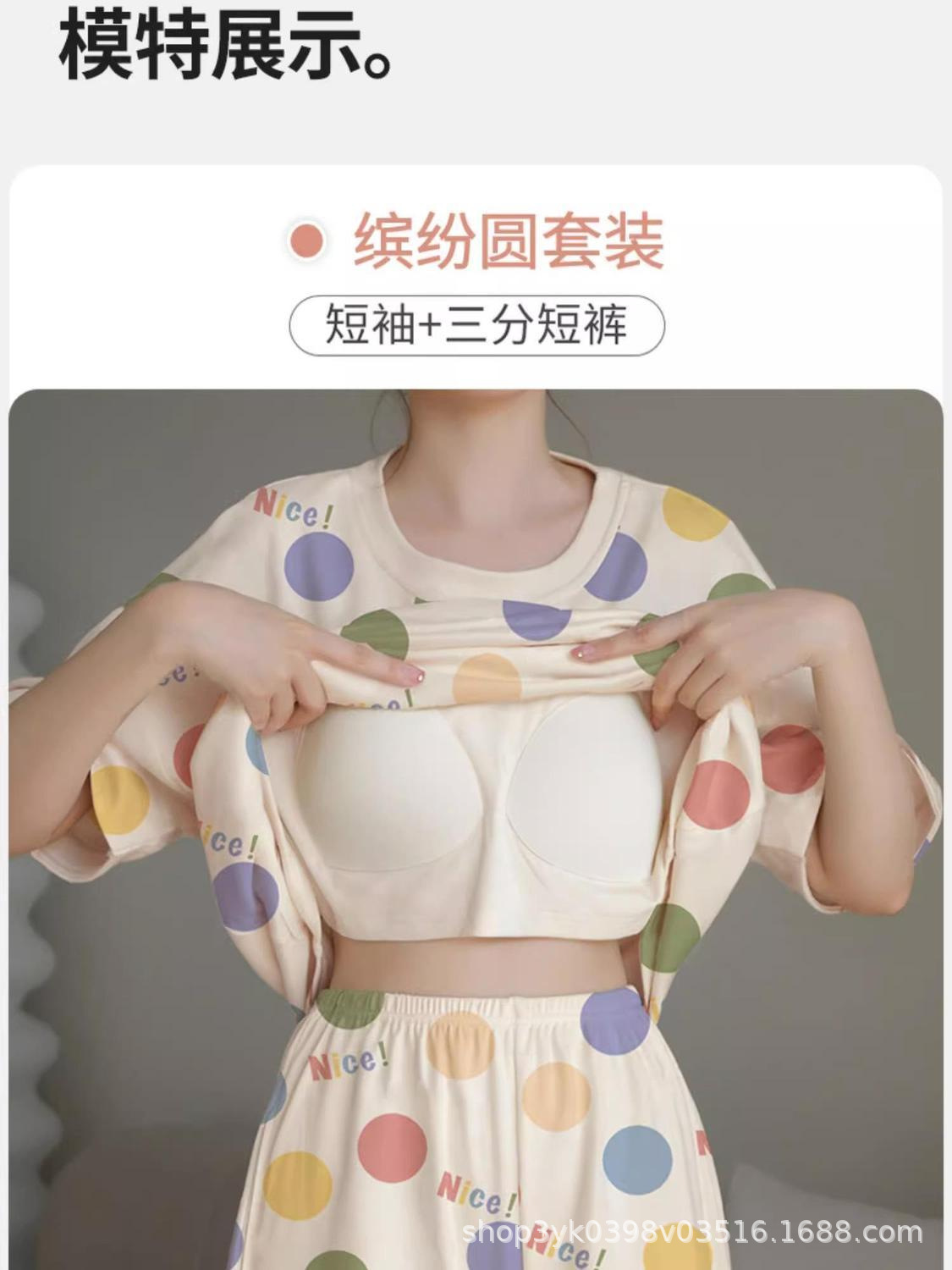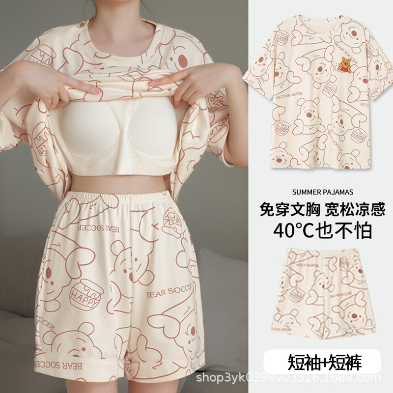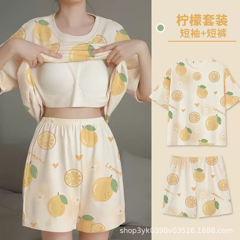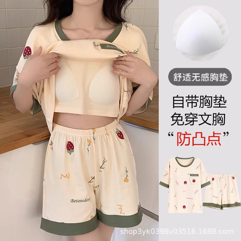 가슴 패드가 있는 홈웨어 잠옷, 여성용 여름 반팔 2025 신상 여름 브라 프리 웨어러블 슈트