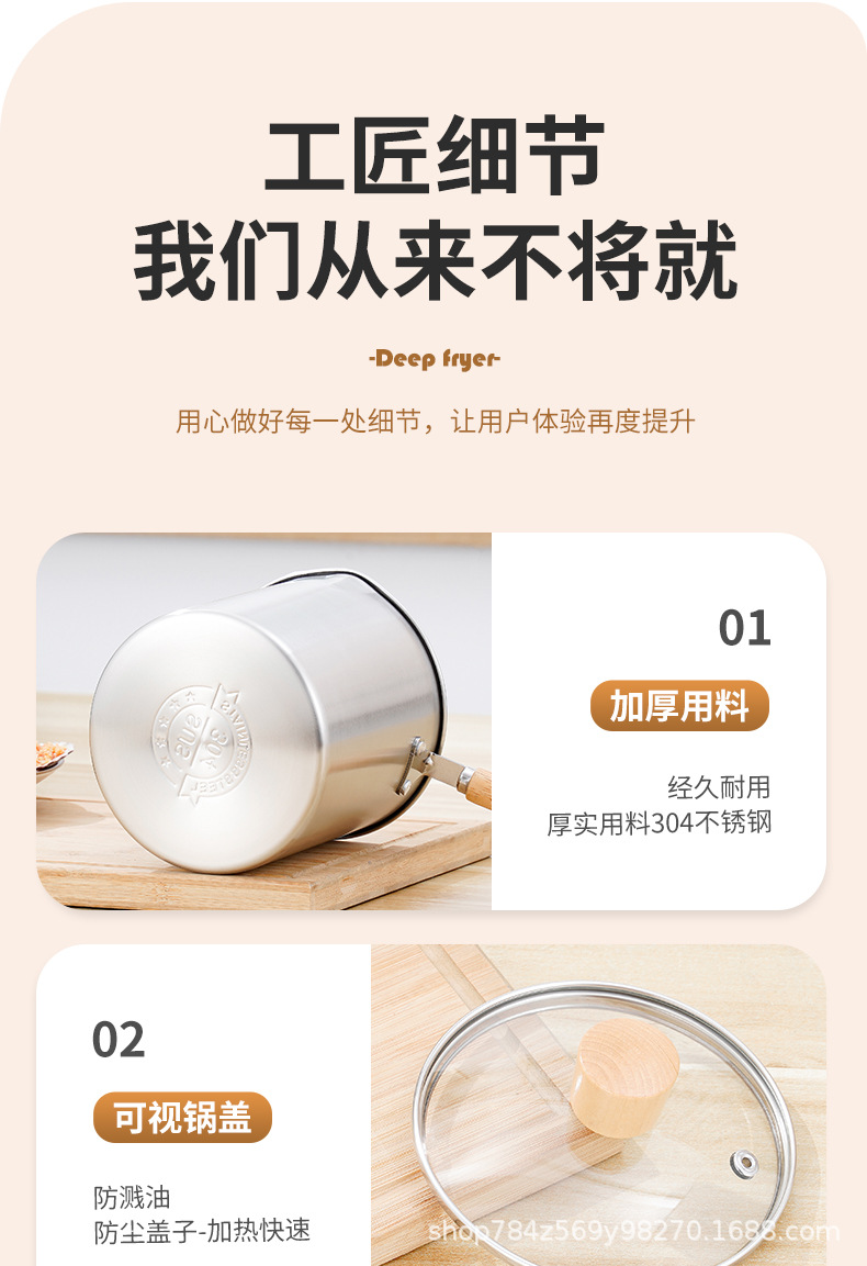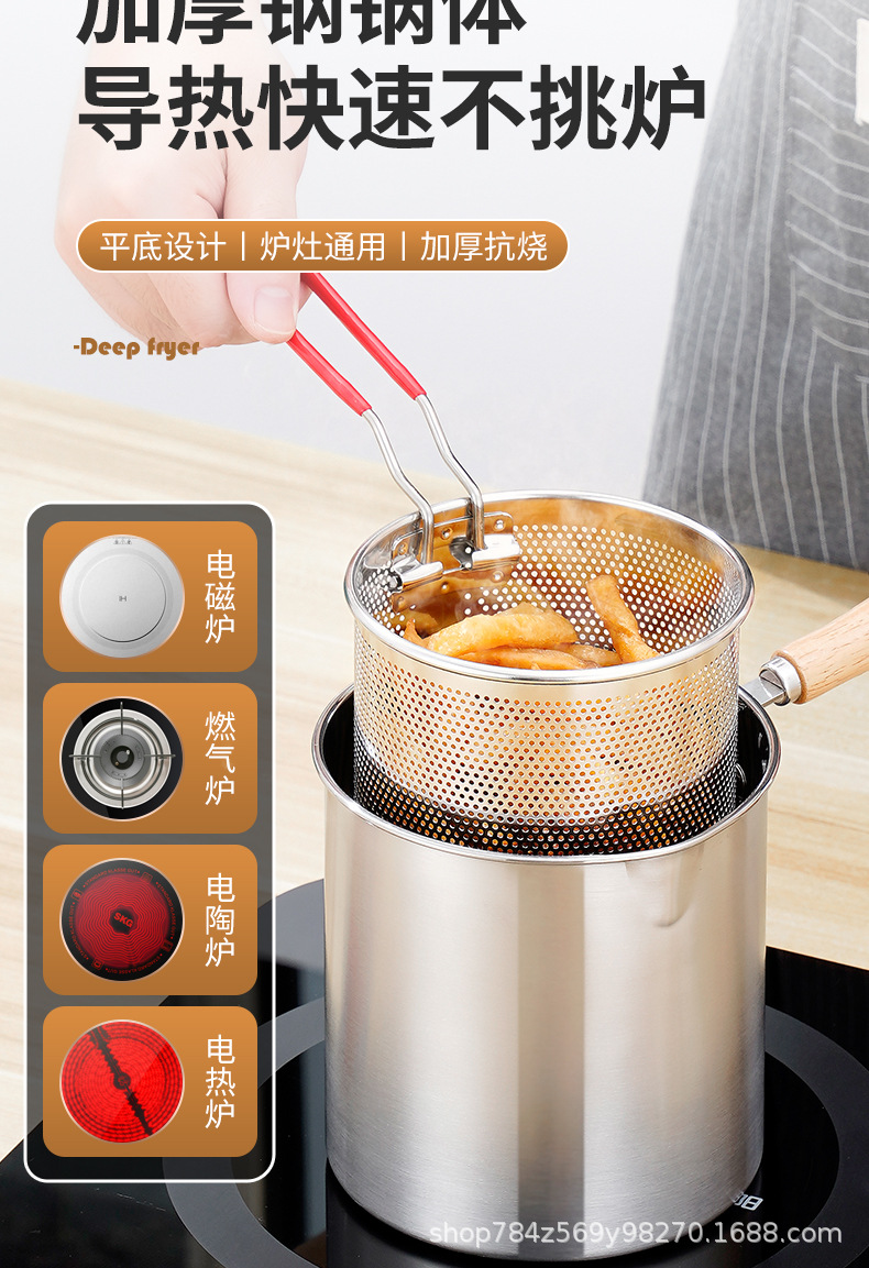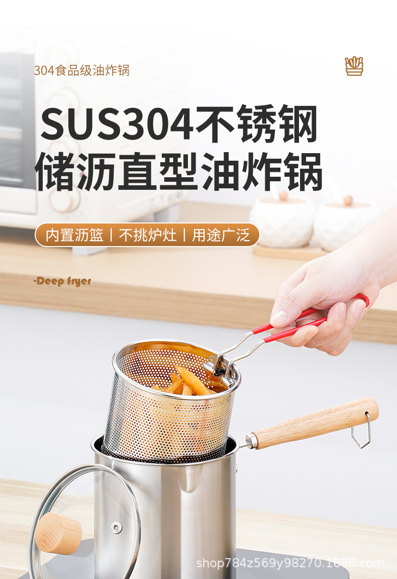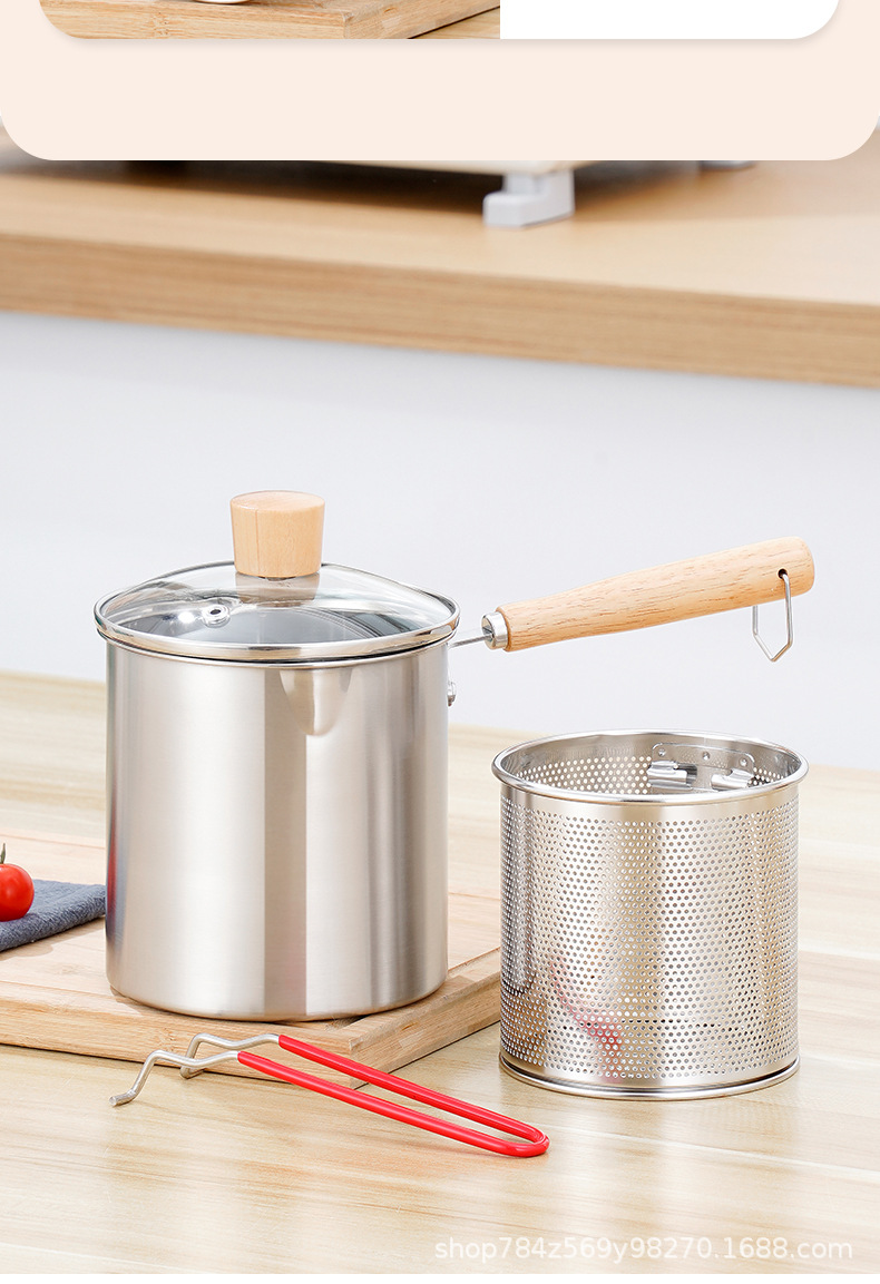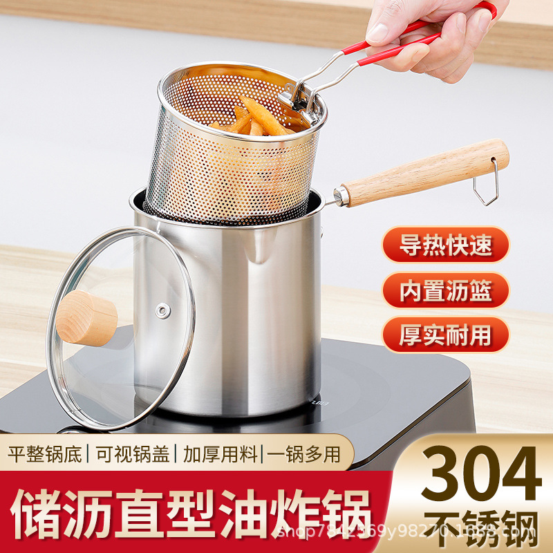 304 스테인레스 스틸 프라이팬 가정용 미니 소형 프라이팬 주방 필터가있는 절연 깊은 냄비 소형 프라이팬 프라이팬 바구니