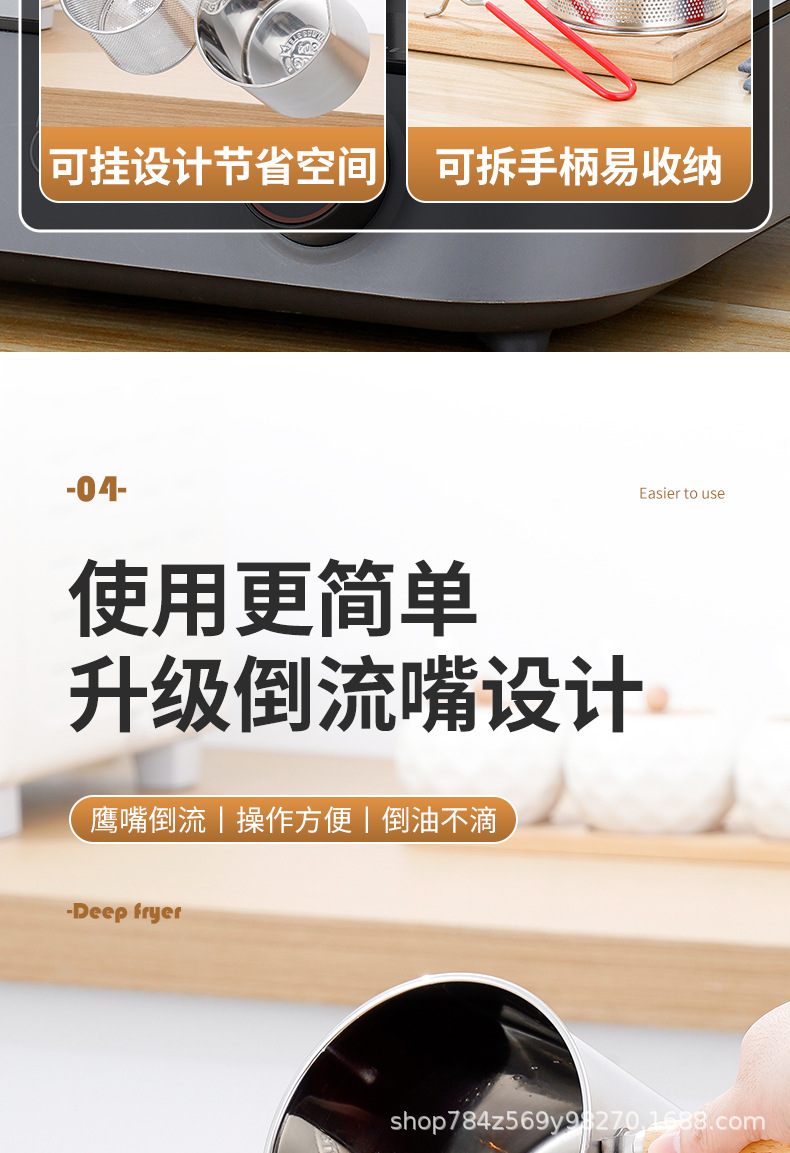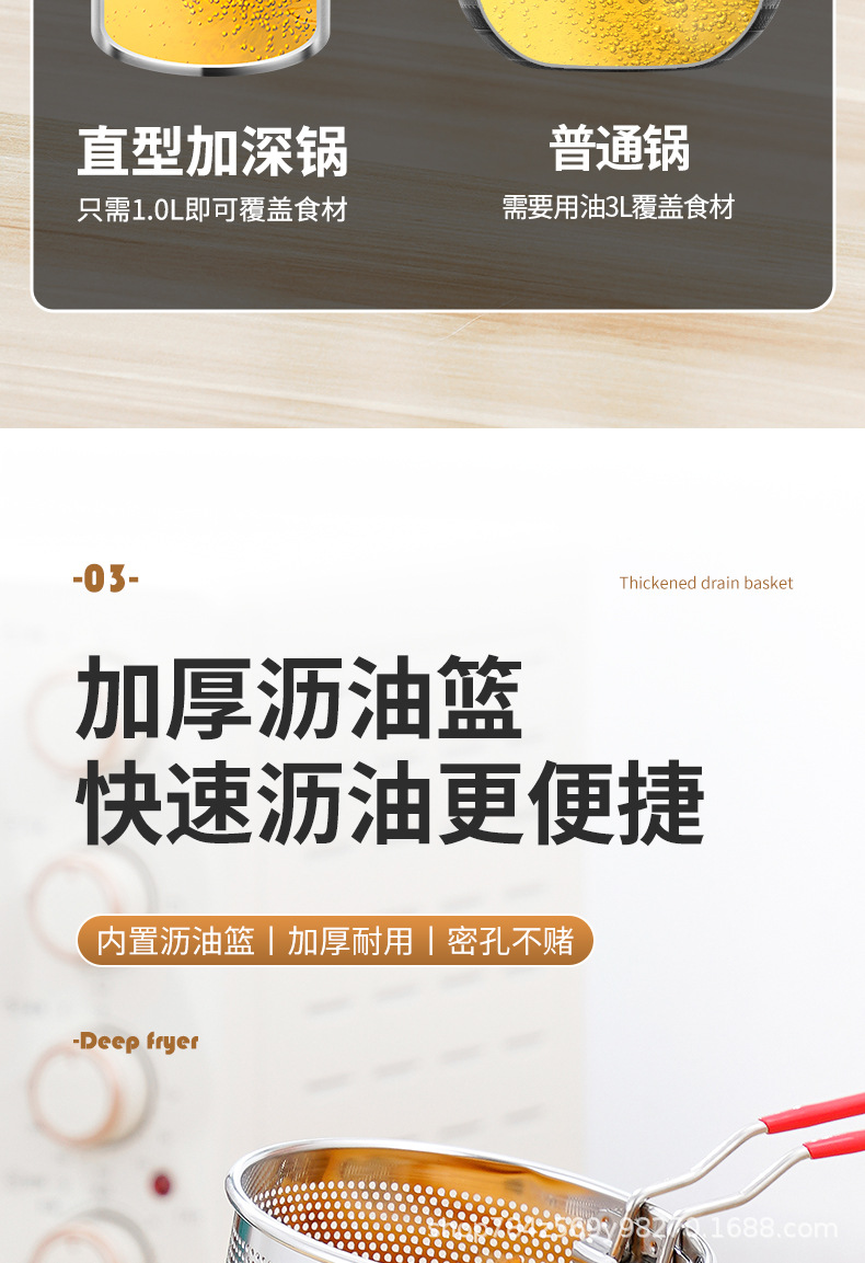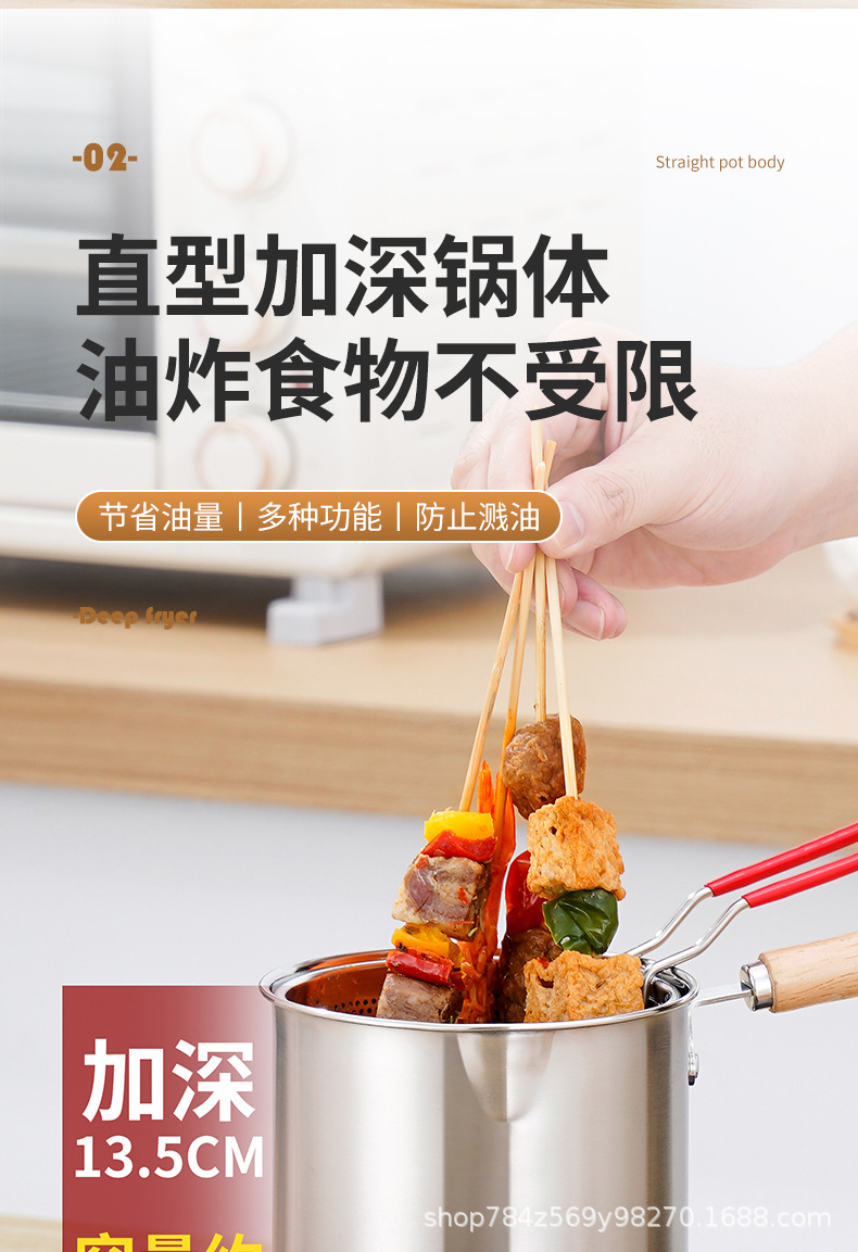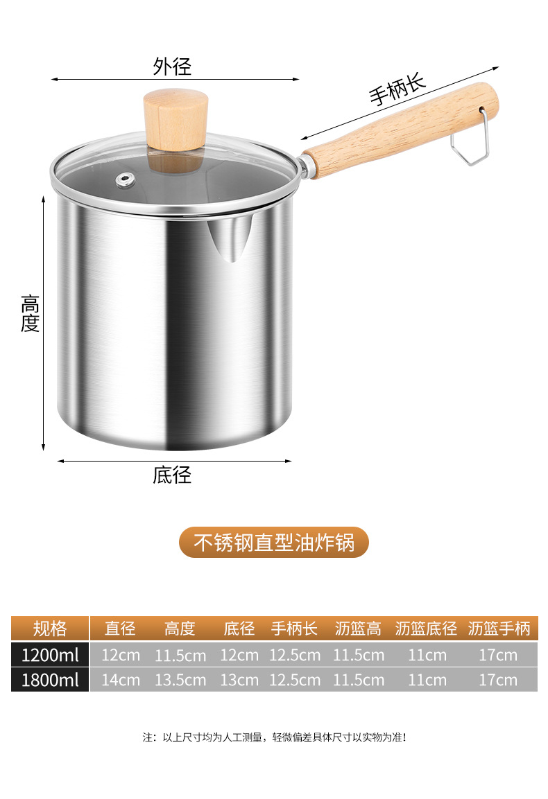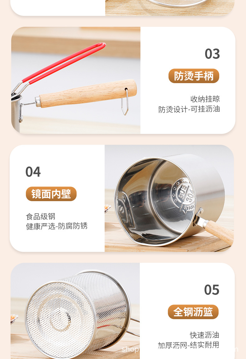 304 스테인레스 스틸 프라이팬 가정용 미니 소형 프라이팬 주방 필터가있는 절연 깊은 냄비 소형 프라이팬 프라이팬 바구니