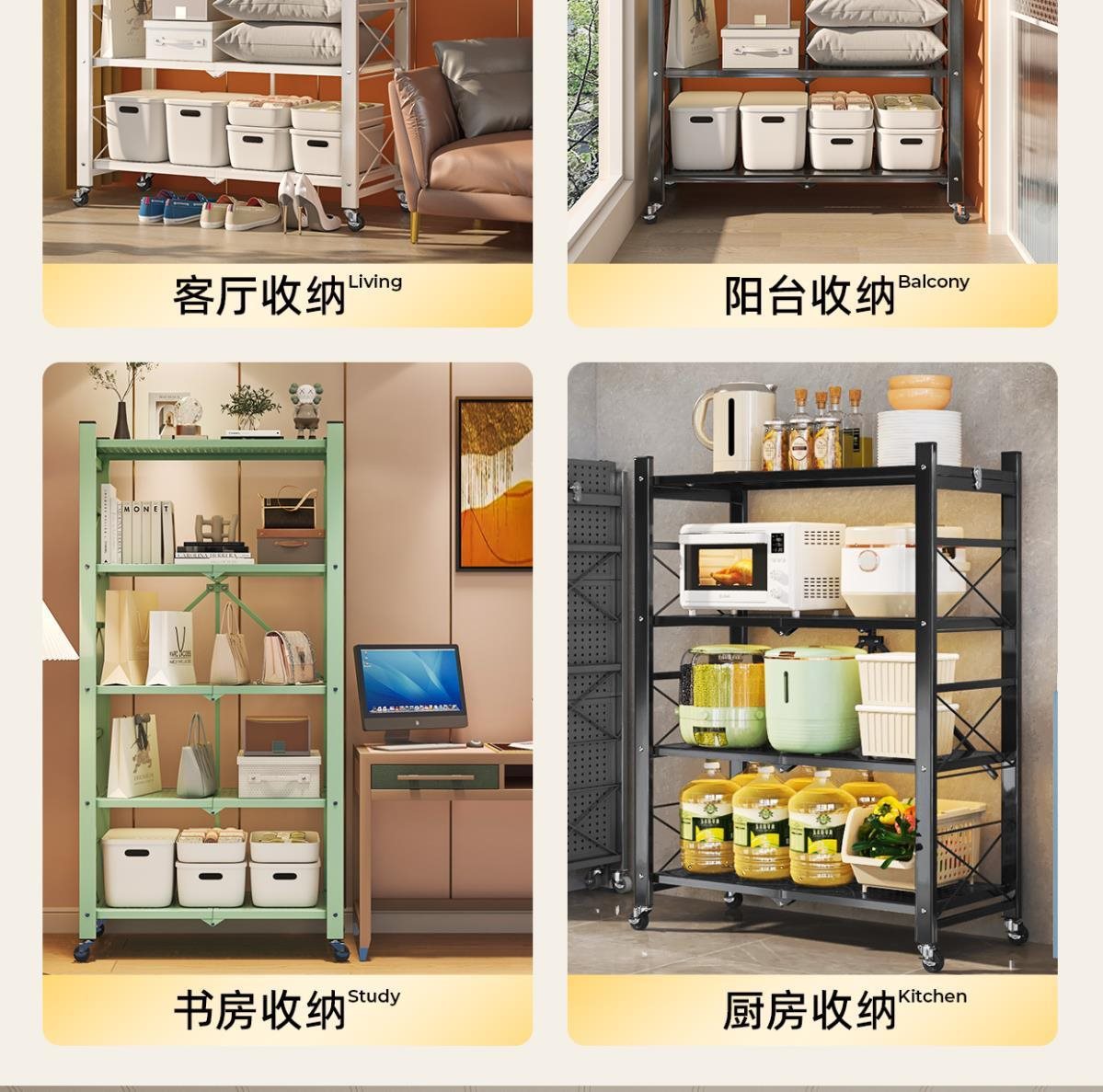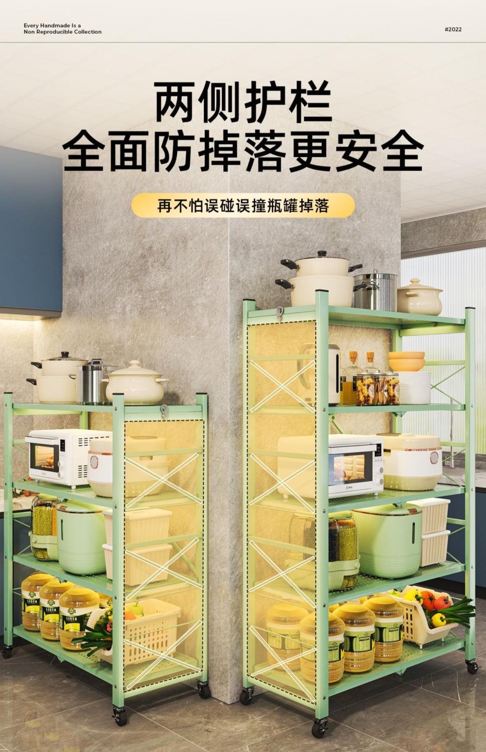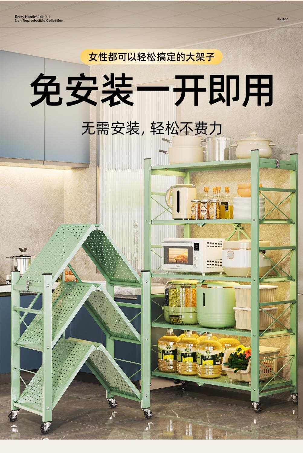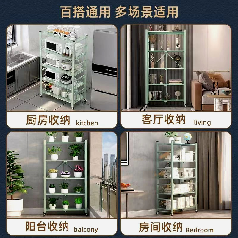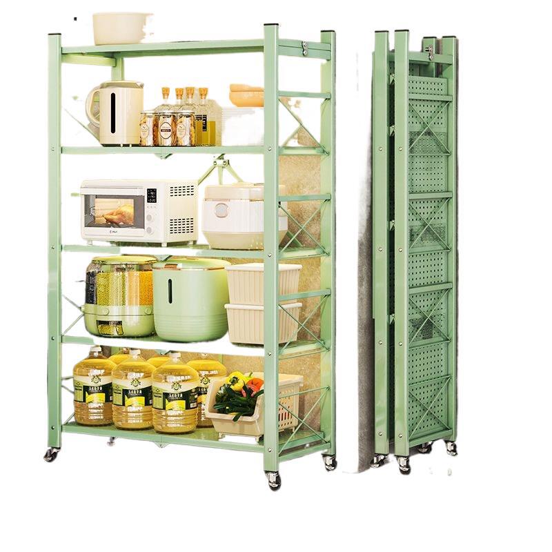 주방 접이식 선반 바닥에서 천장까지 다층 선반 설치가 필요 없는 보관 캐비닛 선반 전자 레인지 선반