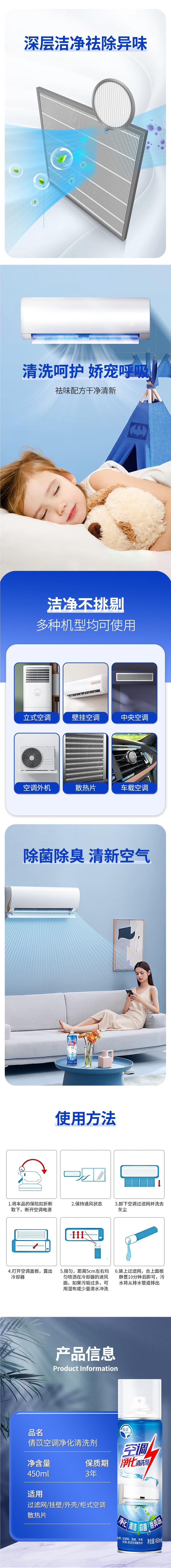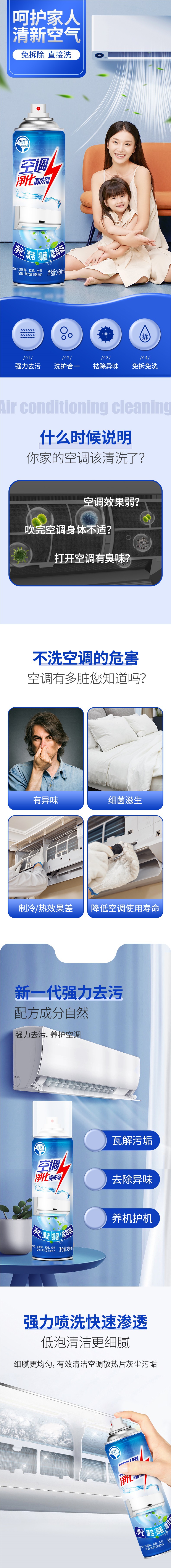 Qianyi 에어컨 정화 및 세척제는 탈취, 오염 제거, 냄새 제거, 분해 및 세척 없이 신선한 공기 거품 청소