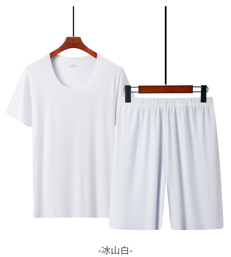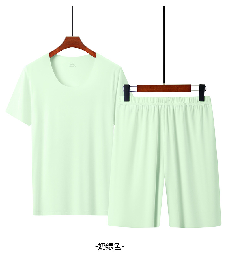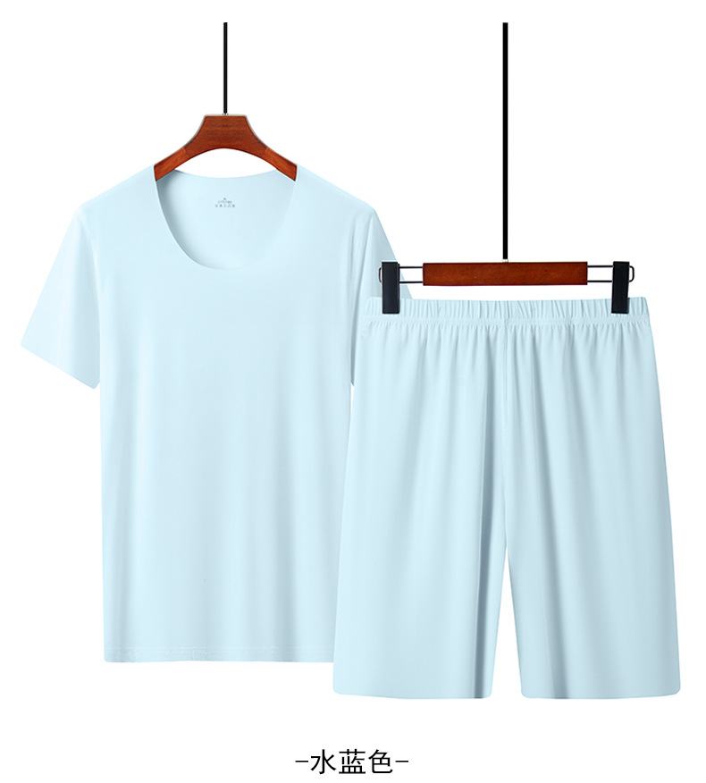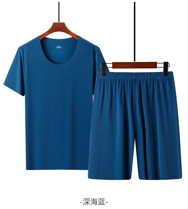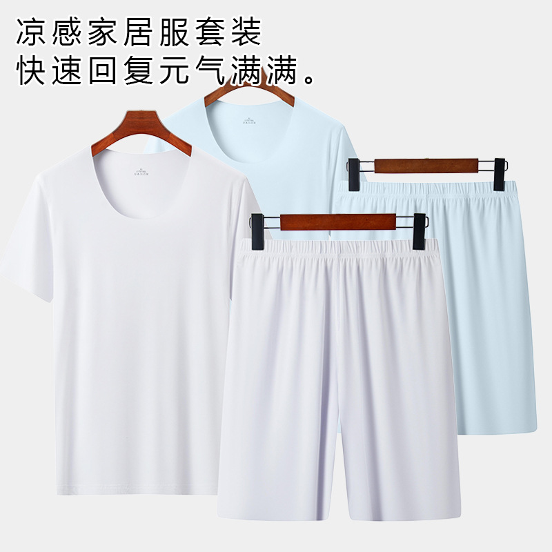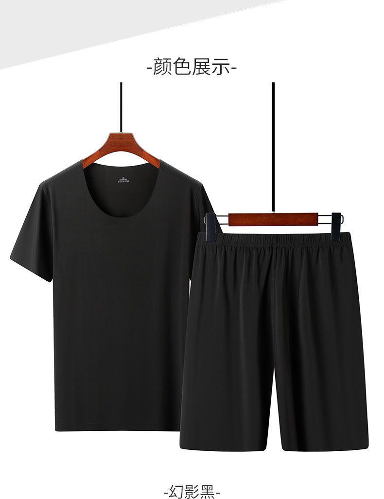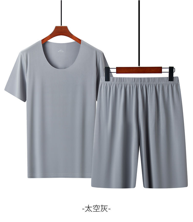 남성용 여름 잠옷, 얇은 얼음 실크, 무봉제, 남성용 여름 착용 가능, 청소년용 반팔 반바지, 남성용 가정복