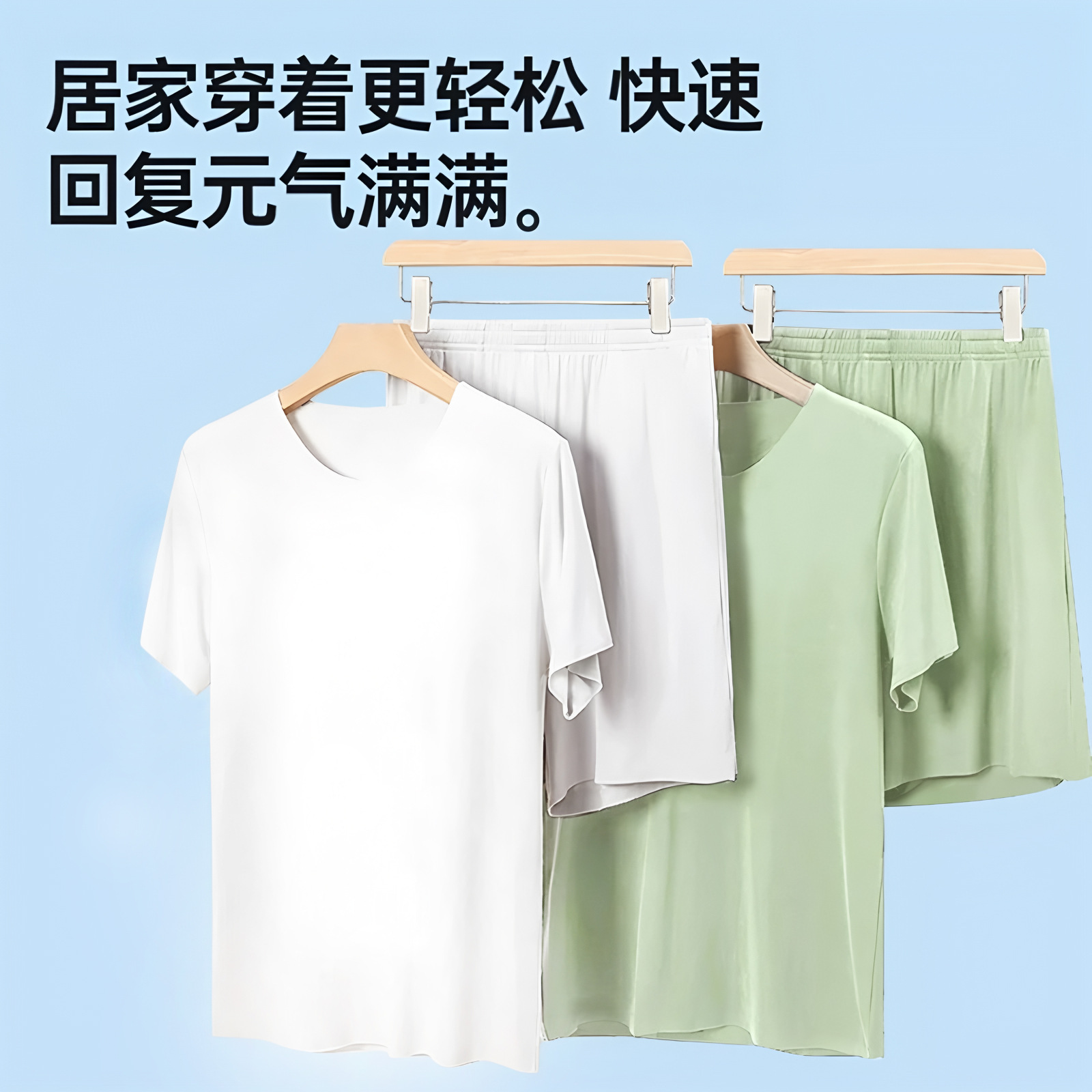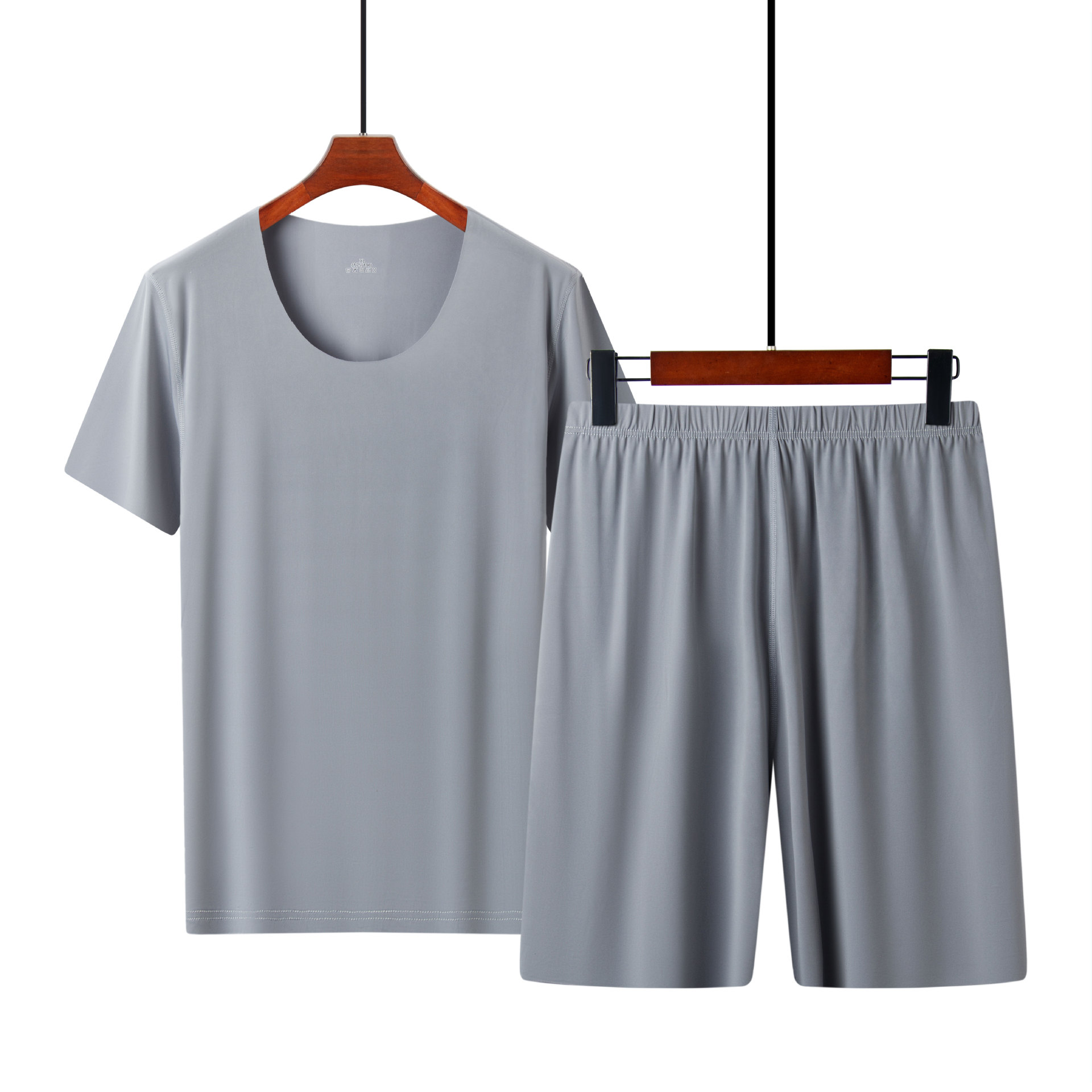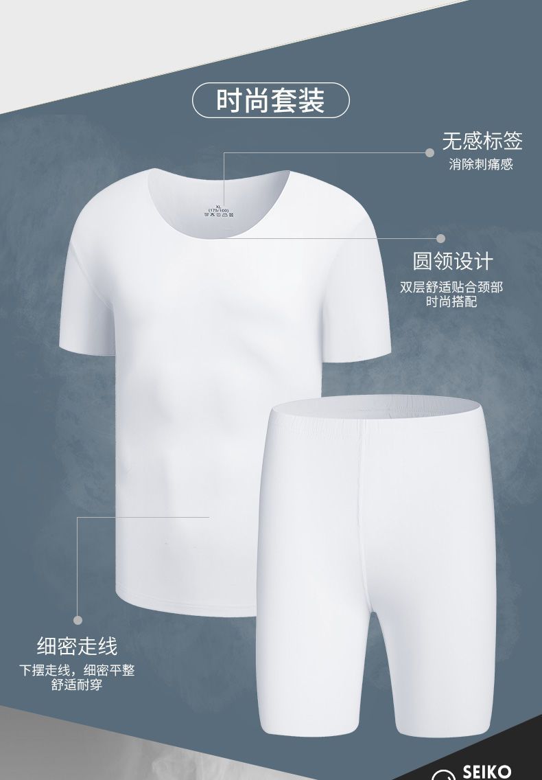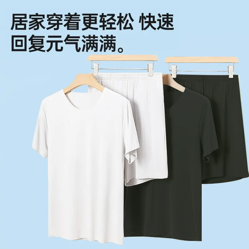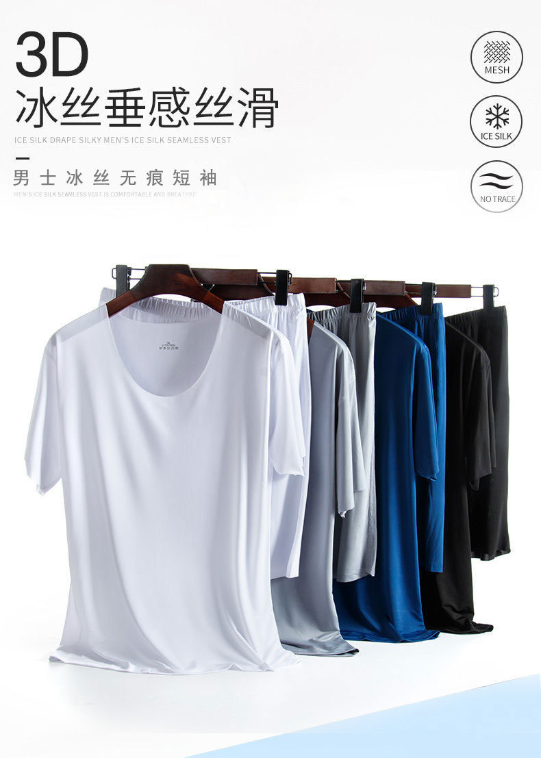남성용 여름 잠옷, 얇은 얼음 실크, 무봉제, 남성용 여름 착용 가능, 청소년용 반팔 반바지, 남성용 가정복