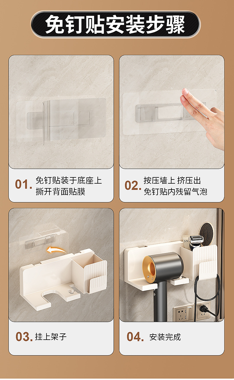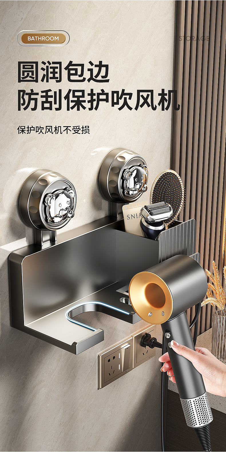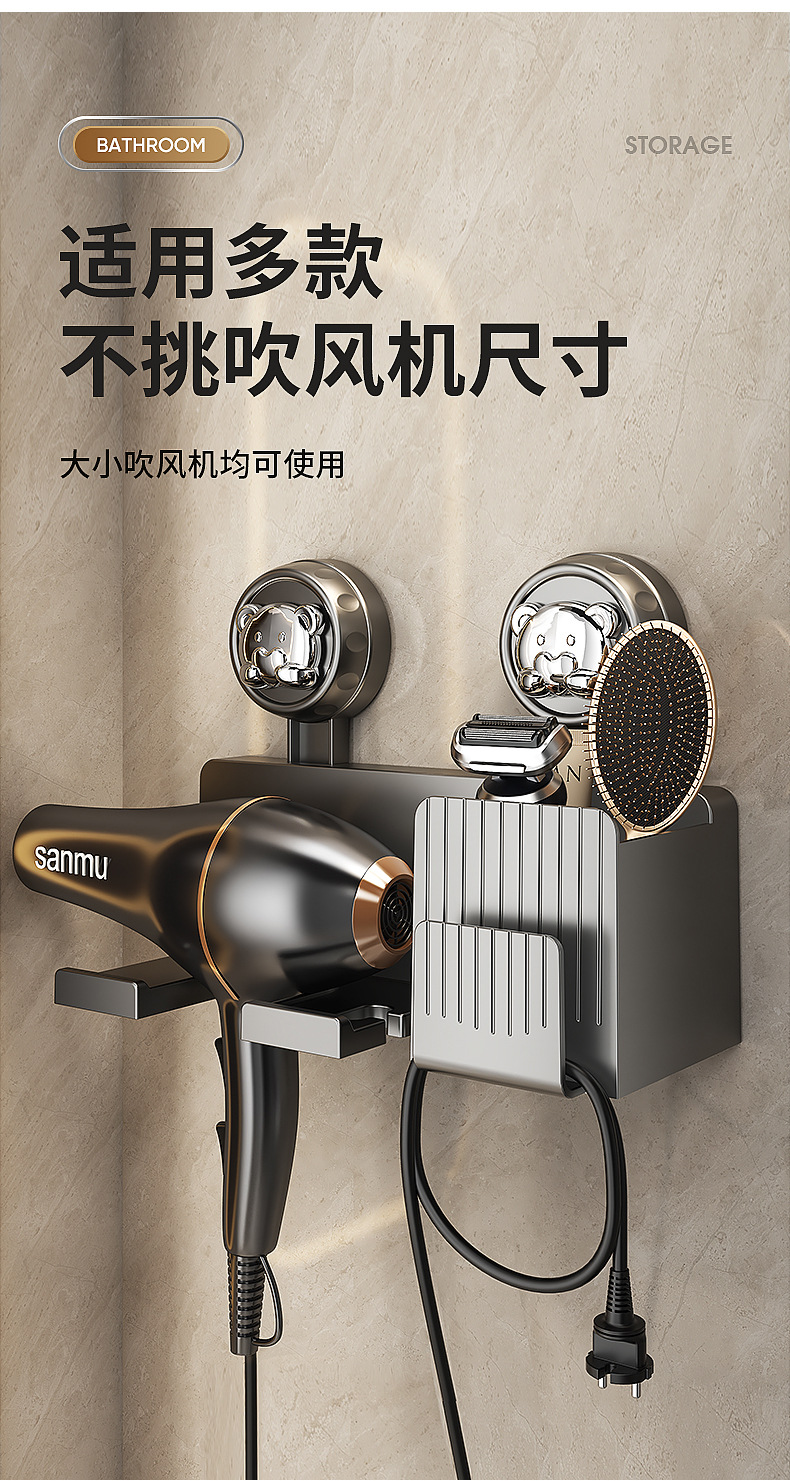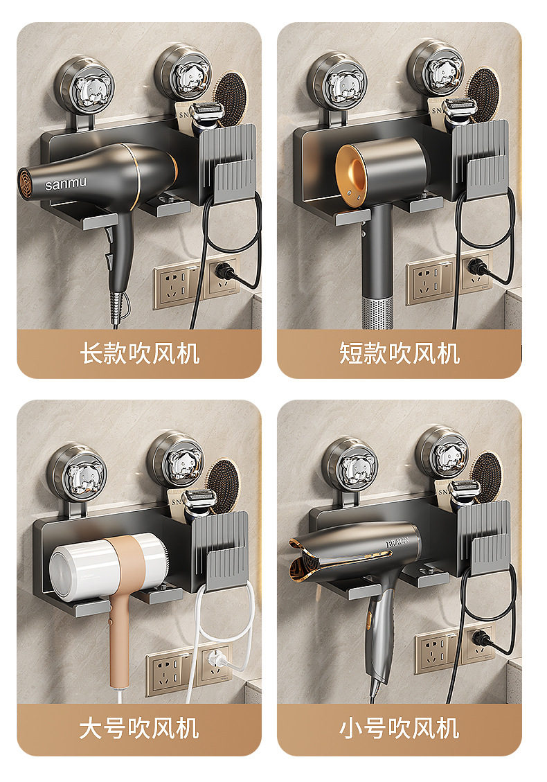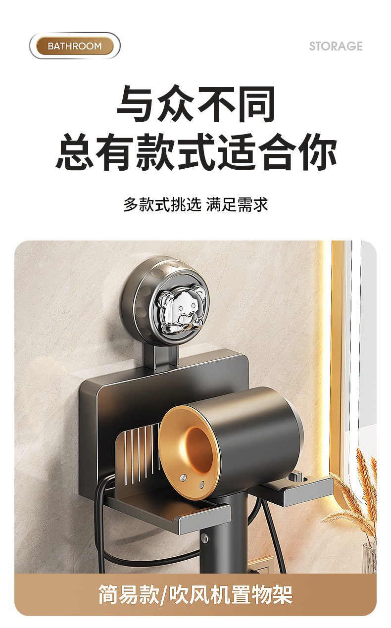 흡착식 헤어드라이어 거치대, 무타공 헤어드라이어 선반, 욕실 수납 걸이, 헤어드라이어 벽걸이 선반
