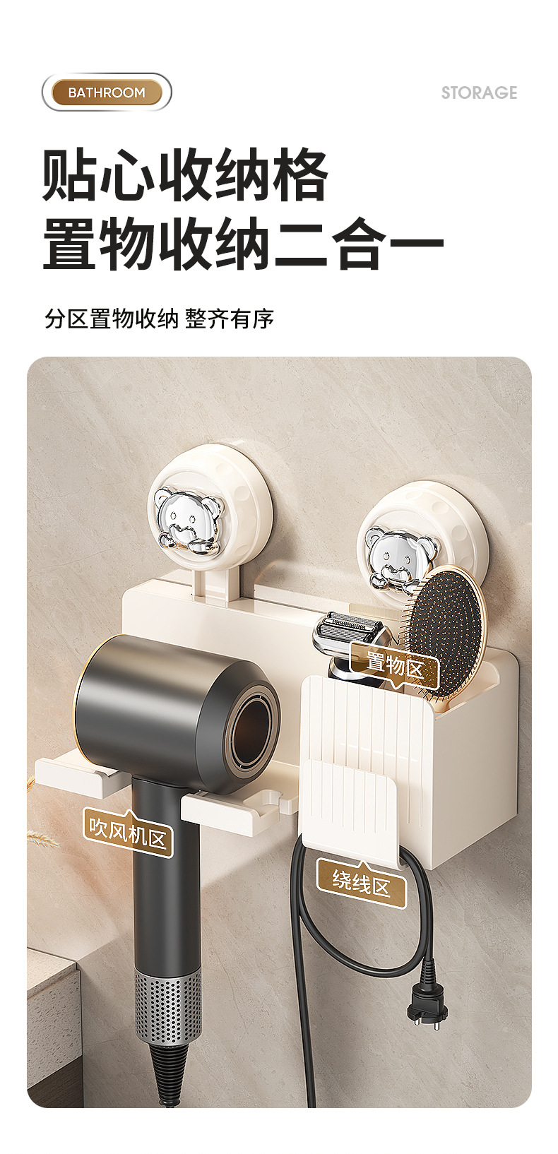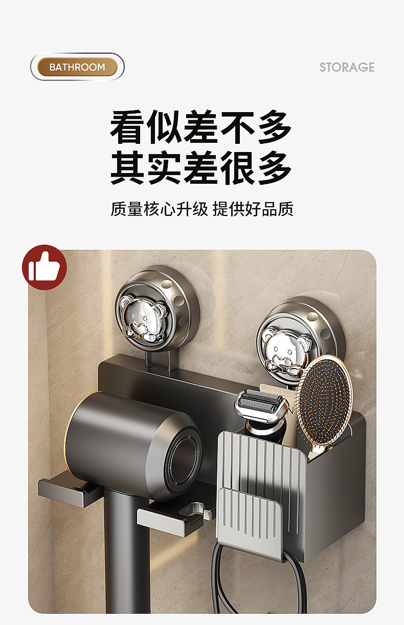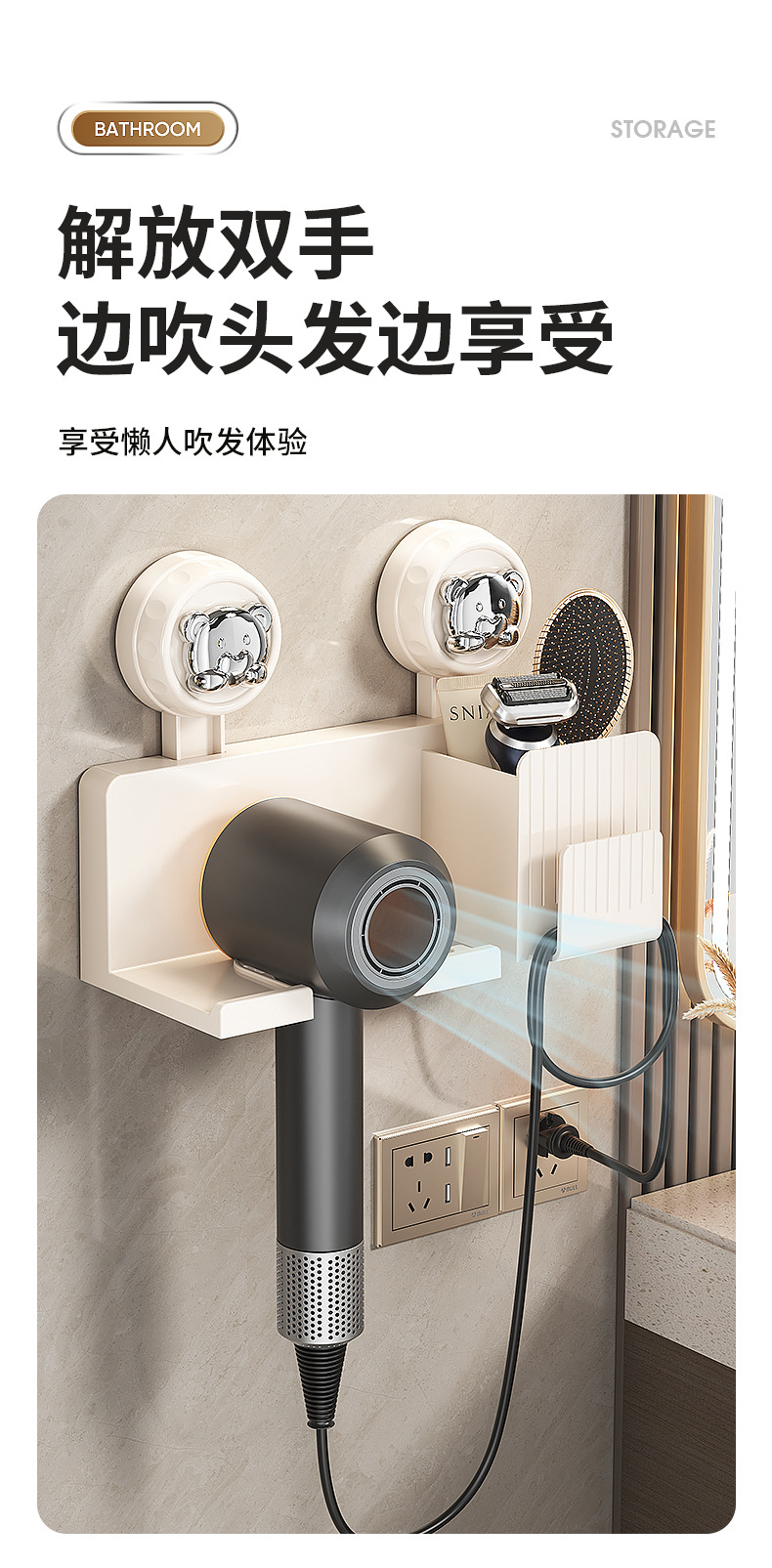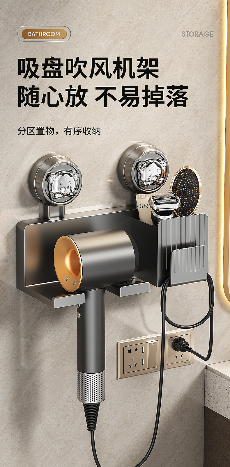 흡착식 헤어드라이어 거치대, 무타공 헤어드라이어 선반, 욕실 수납 걸이, 헤어드라이어 벽걸이 선반
