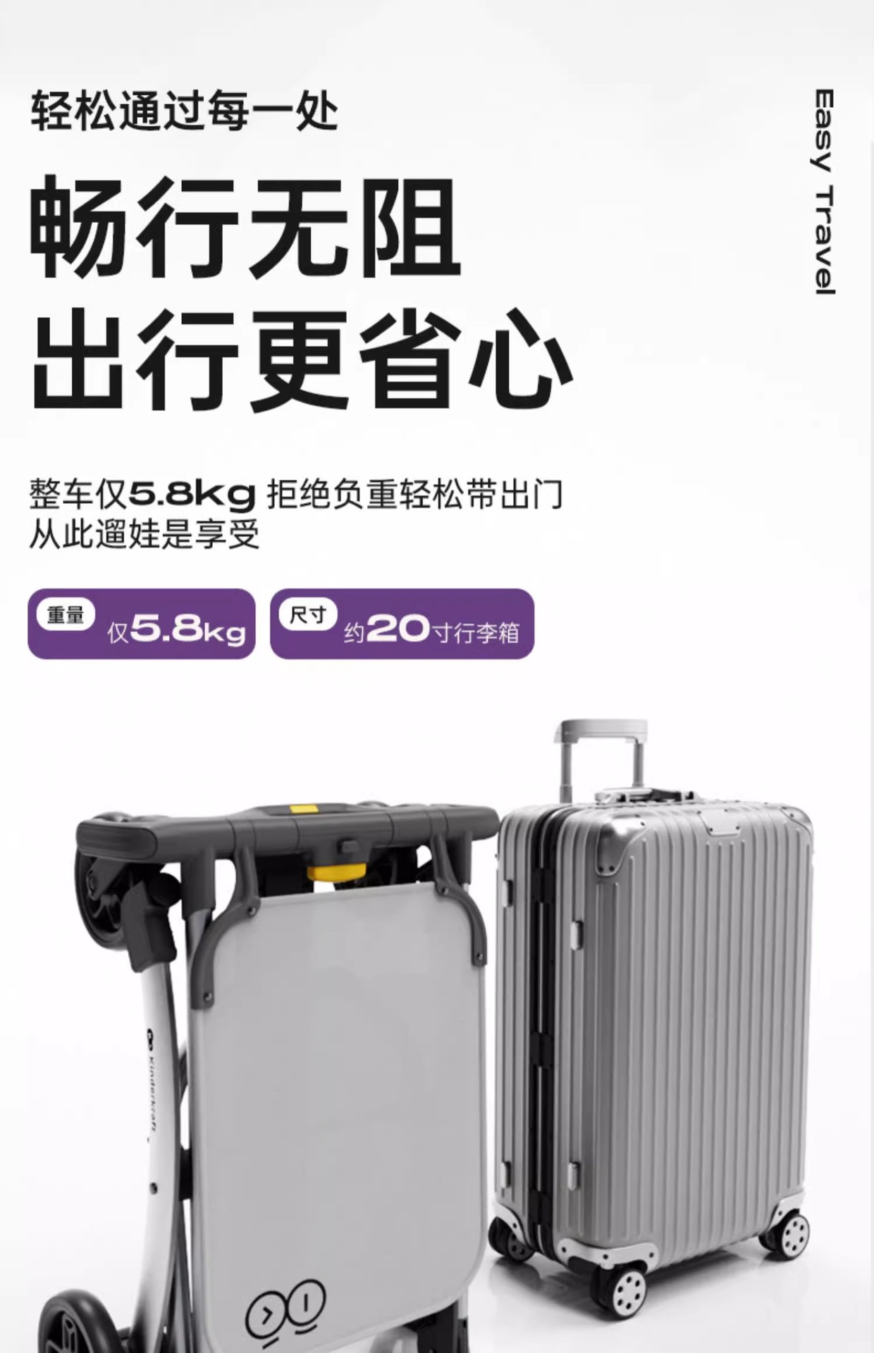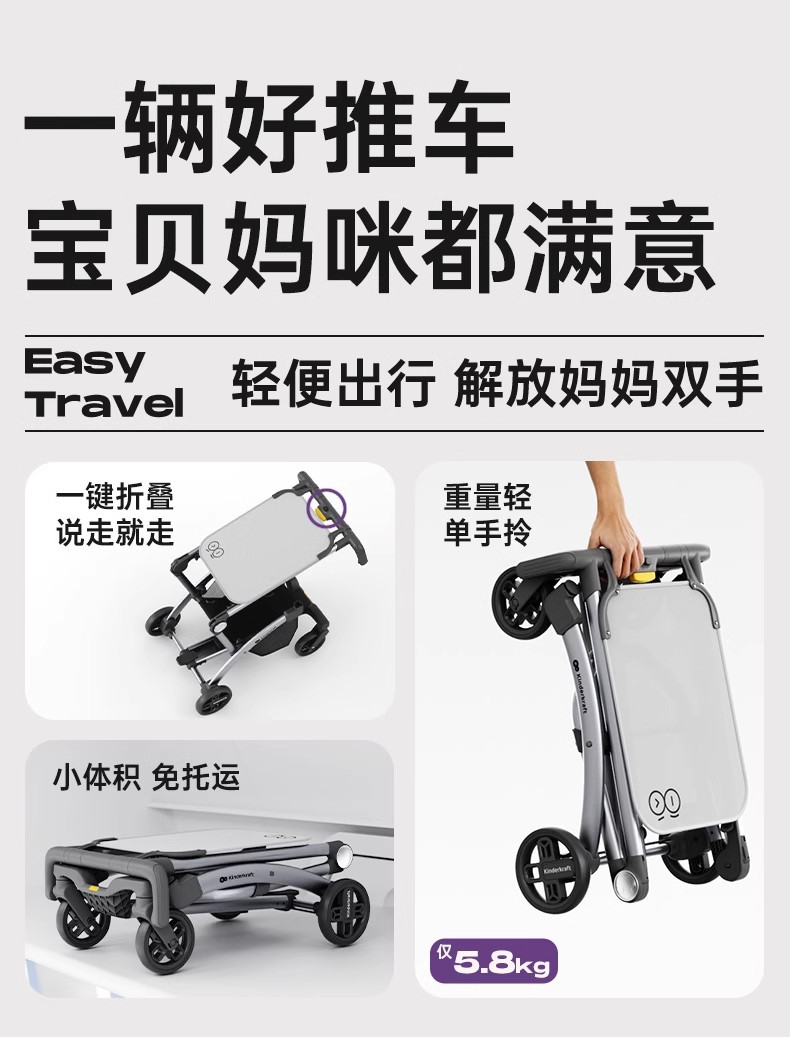 KK 포켓 유모차, 리틀 빈티지 유모차, 중대형 어린이를 위한 가벼운 접이식 유모차, 하이 뷰 유모차