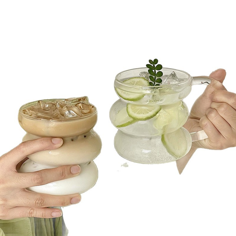 불규칙한 귀여운 애벌레 컵 고붕규산 유리 투명 가정용 전기 세라믹 스토브 가열 주스 음료 컵