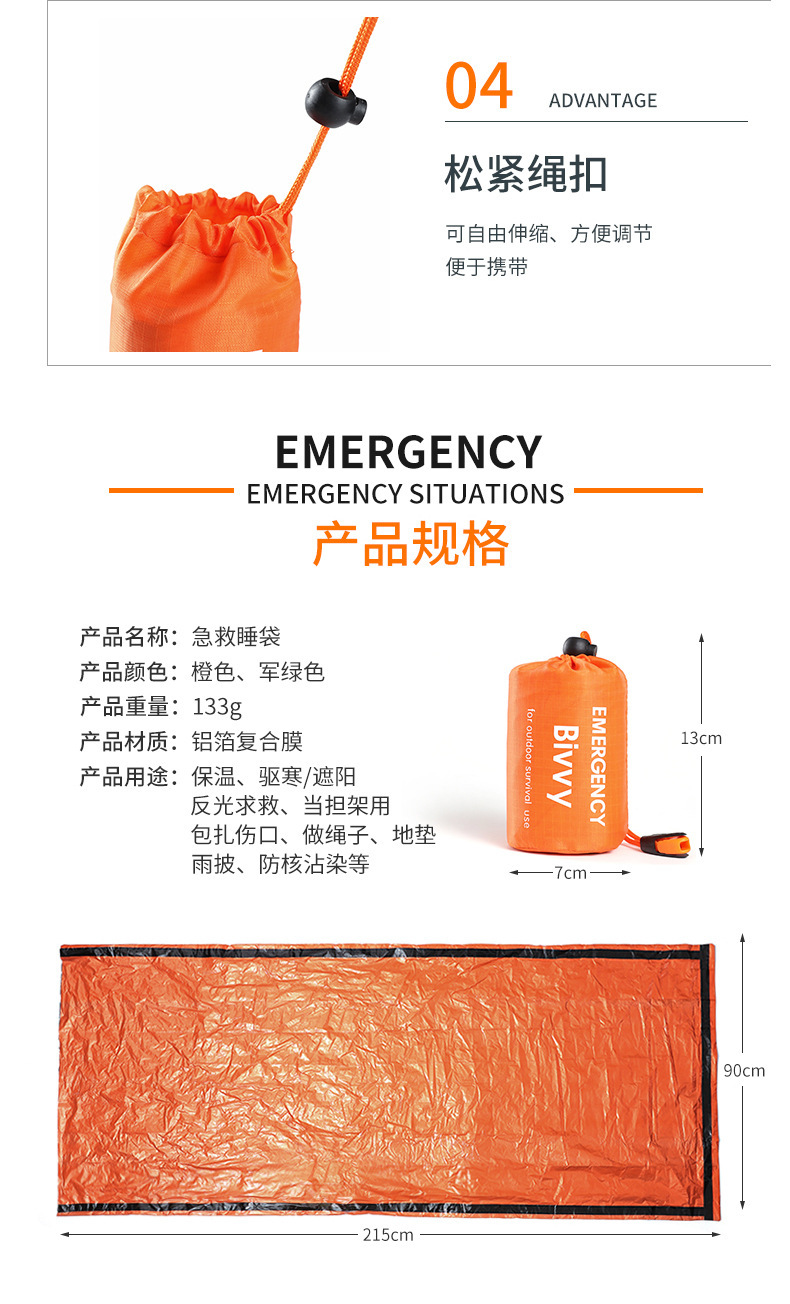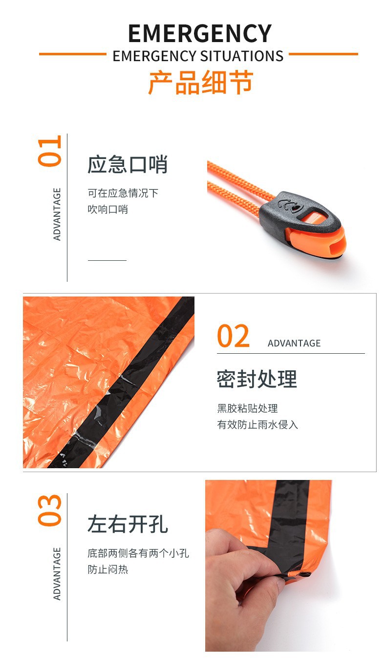 ISE MOUNT Amazon Supply PE 알루미늄 필름 응급 처치 침낭 방한 및 재해 구호 따뜻한 침낭 보관 가방 포함