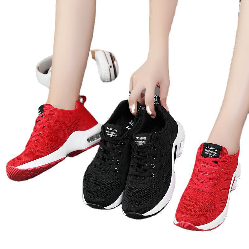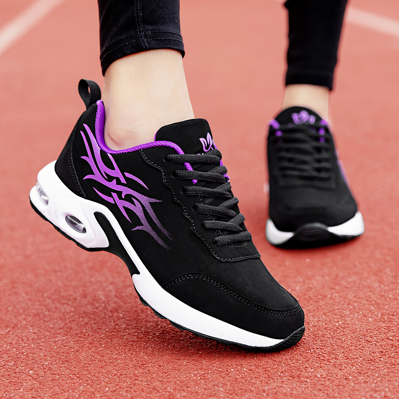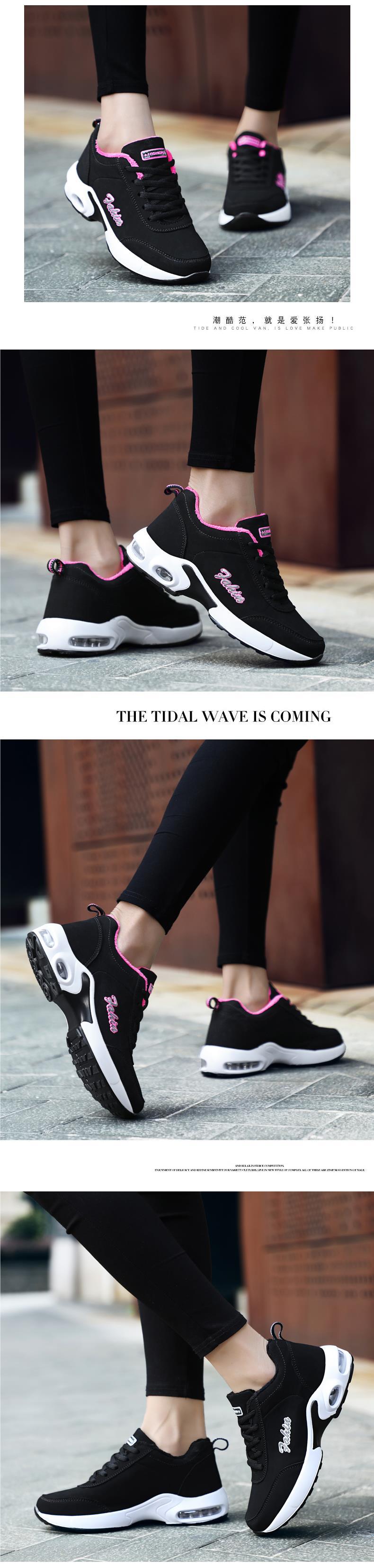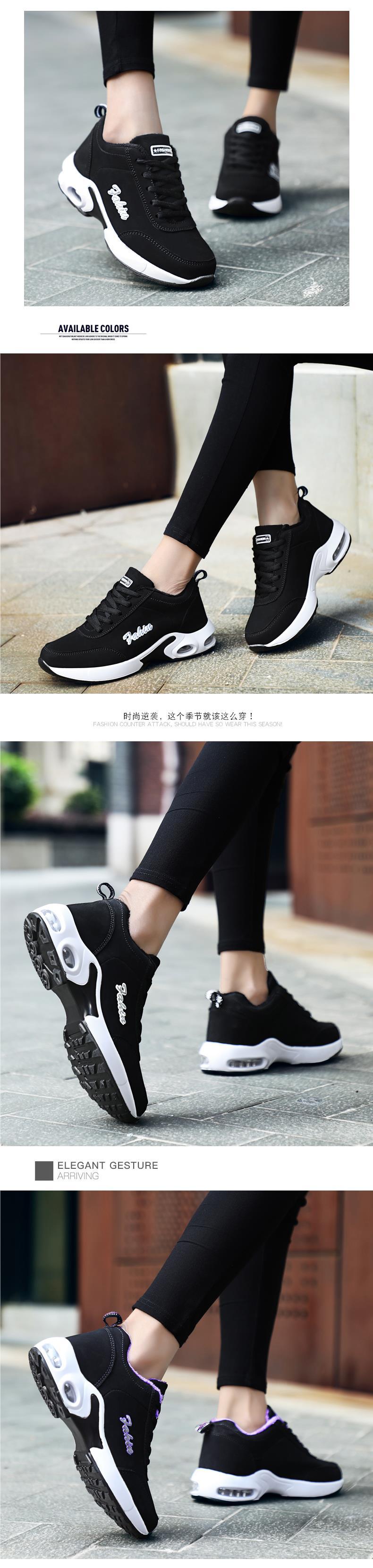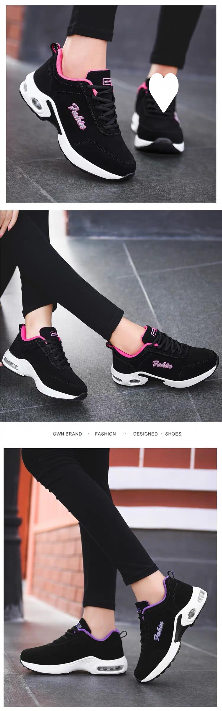 봄과 가을 에어 쿠션 여성 신발 가죽 운동화 부드러운 바닥 캐주얼 여행 신발 블랙 운동화 유행