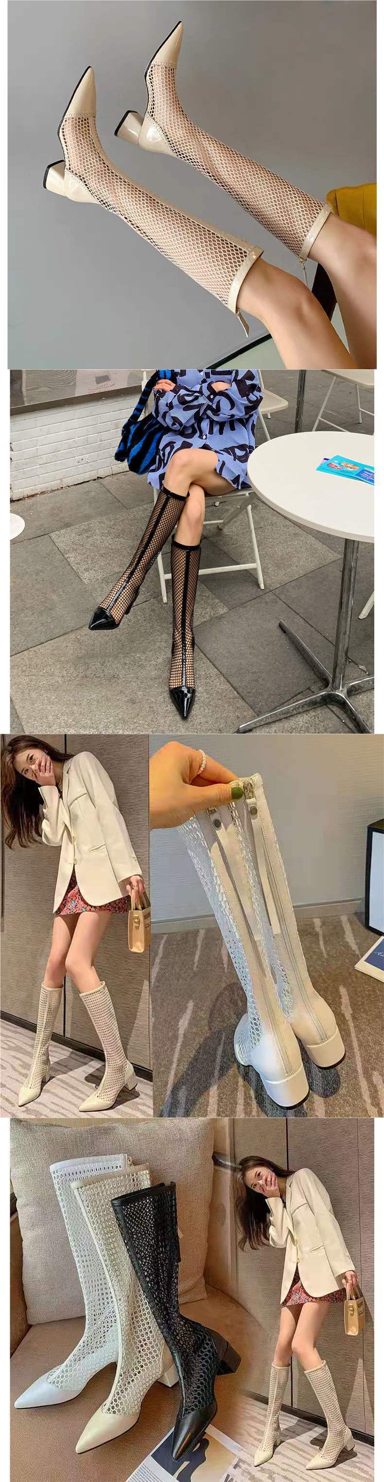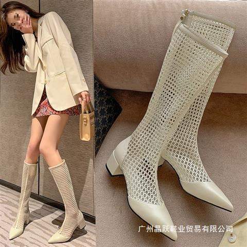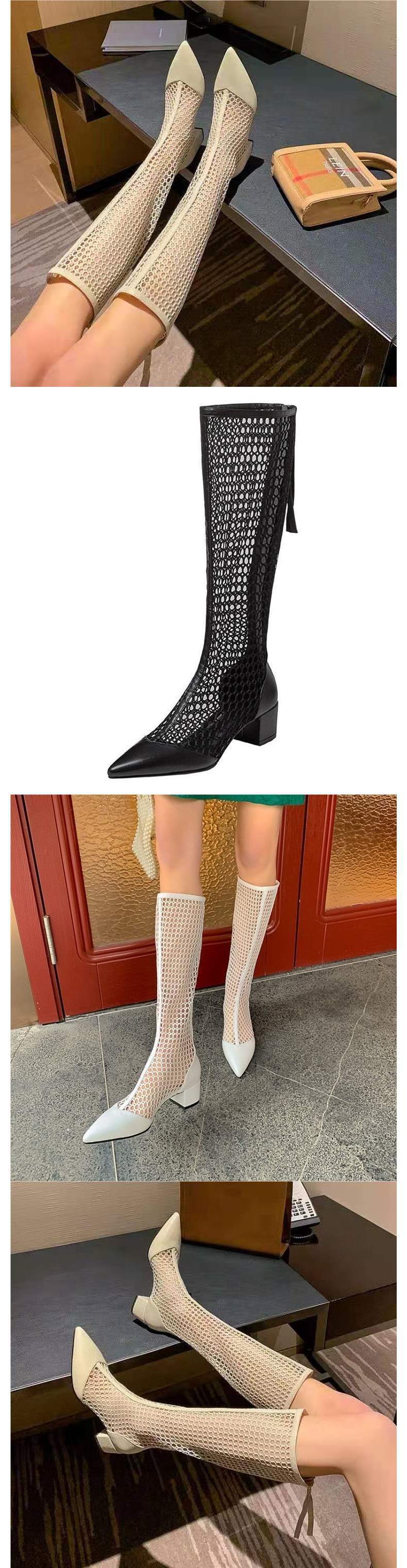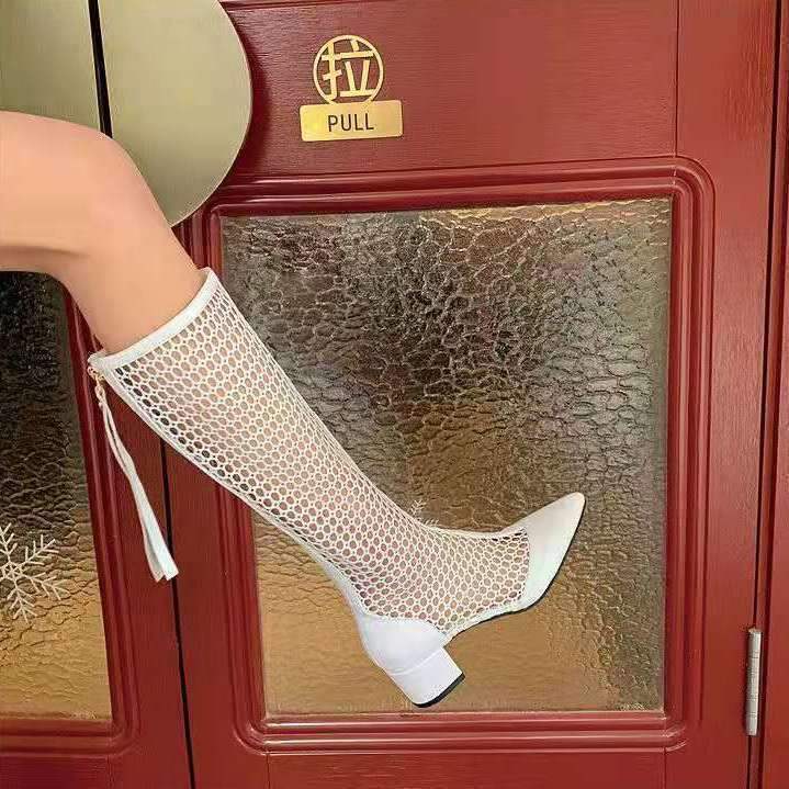 여름 여성 부츠 2025 신상 메쉬 부츠 중공 샌들 메쉬 다용도 통기성 얇은 부츠 두꺼운 굽 하이 부츠