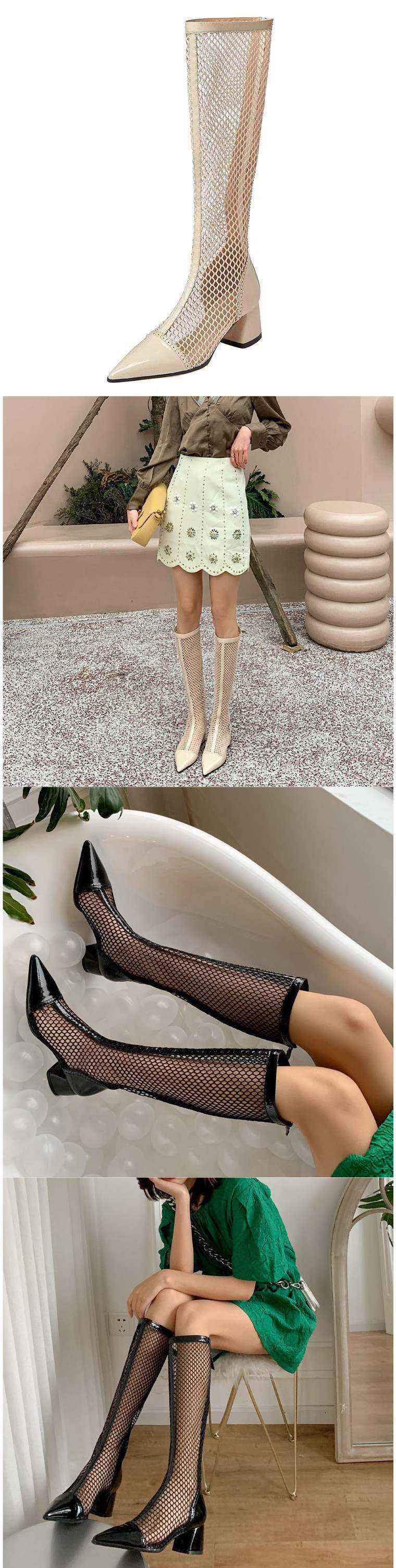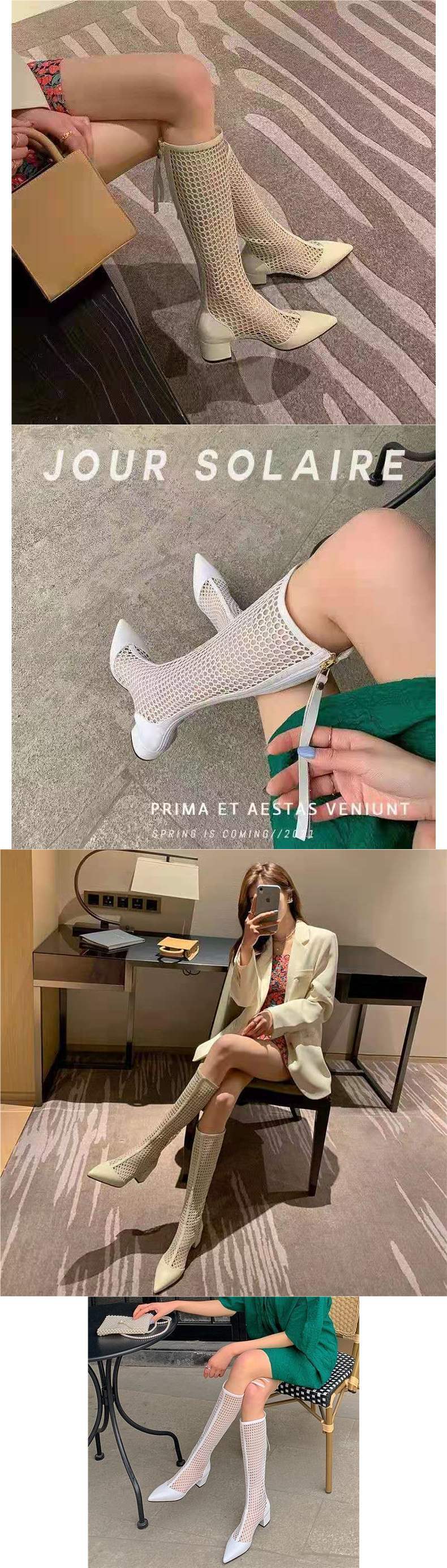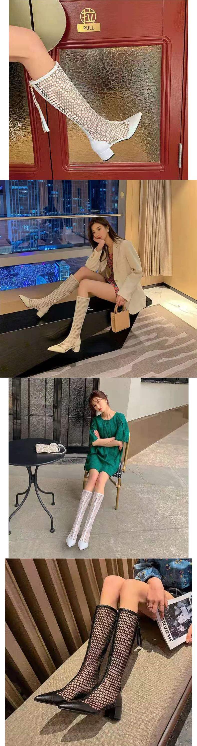 여름 여성 부츠 2025 신상 메쉬 부츠 중공 샌들 메쉬 다용도 통기성 얇은 부츠 두꺼운 굽 하이 부츠