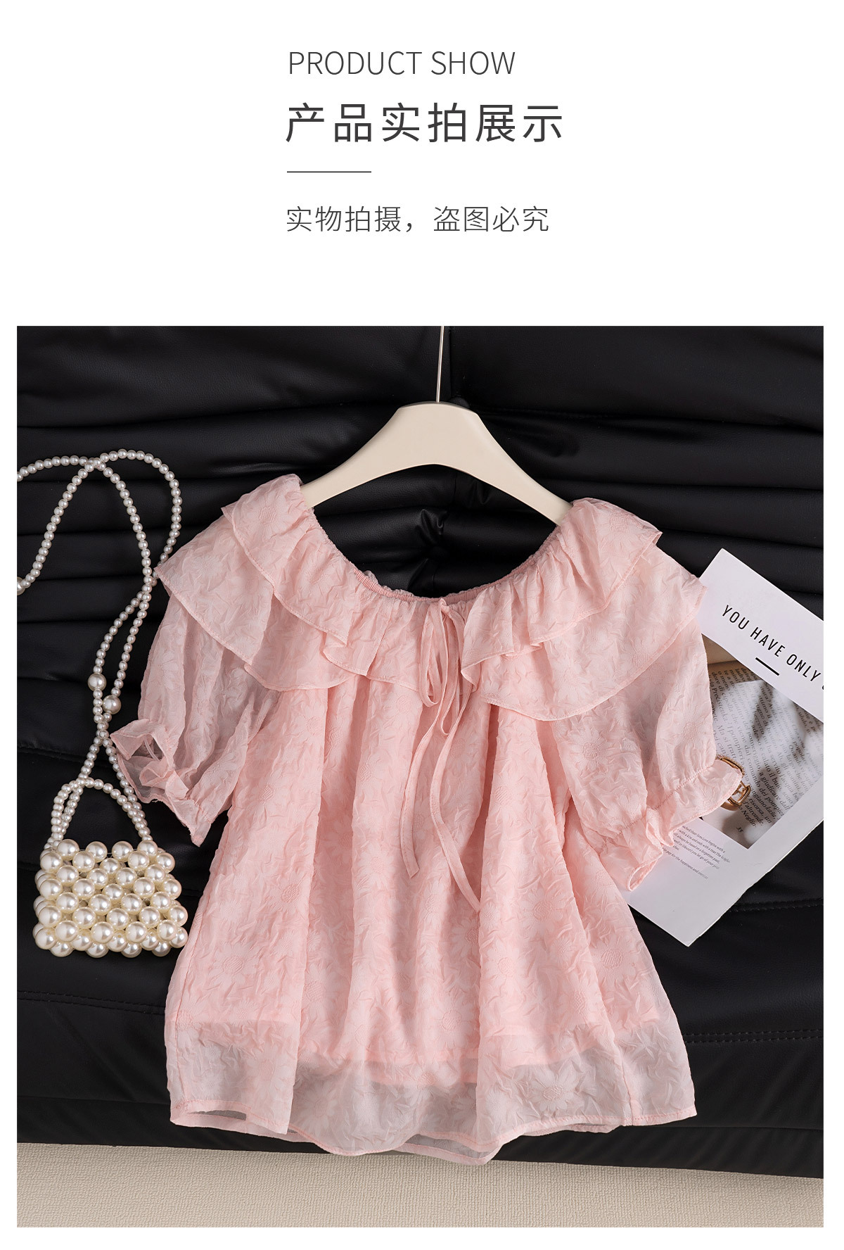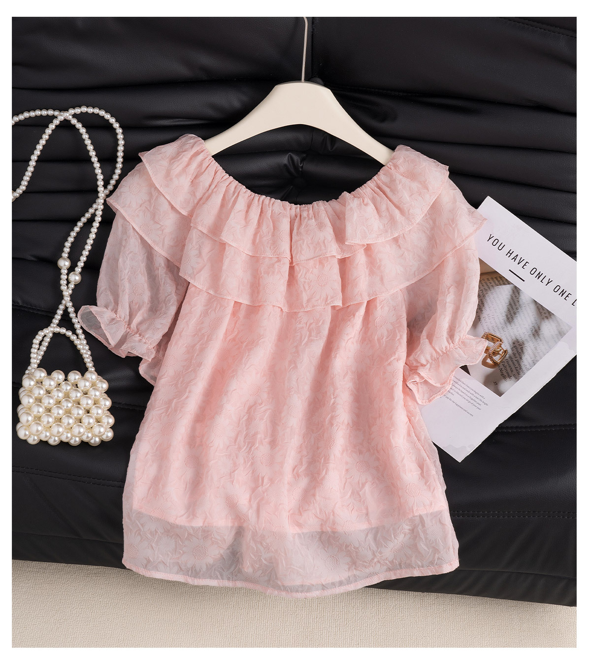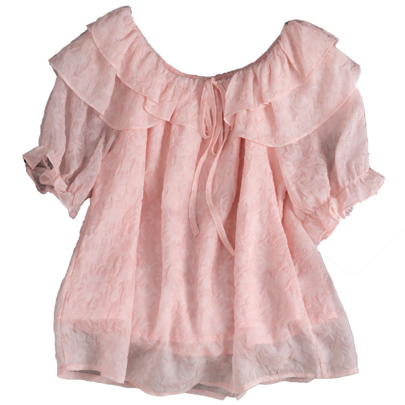 여성을위한 핑크색 아름답고 독특한 양각 쉬폰 셔츠 여름 2025 새로운 스타일 살을 커버하고 슬리밍 반팔 티셔츠 셔츠 탑