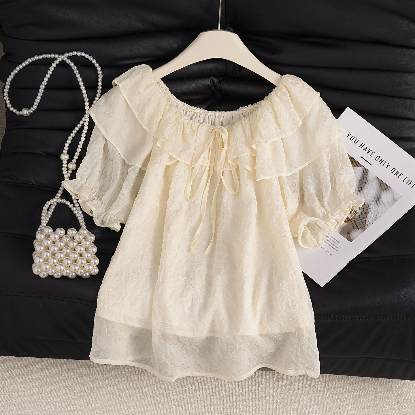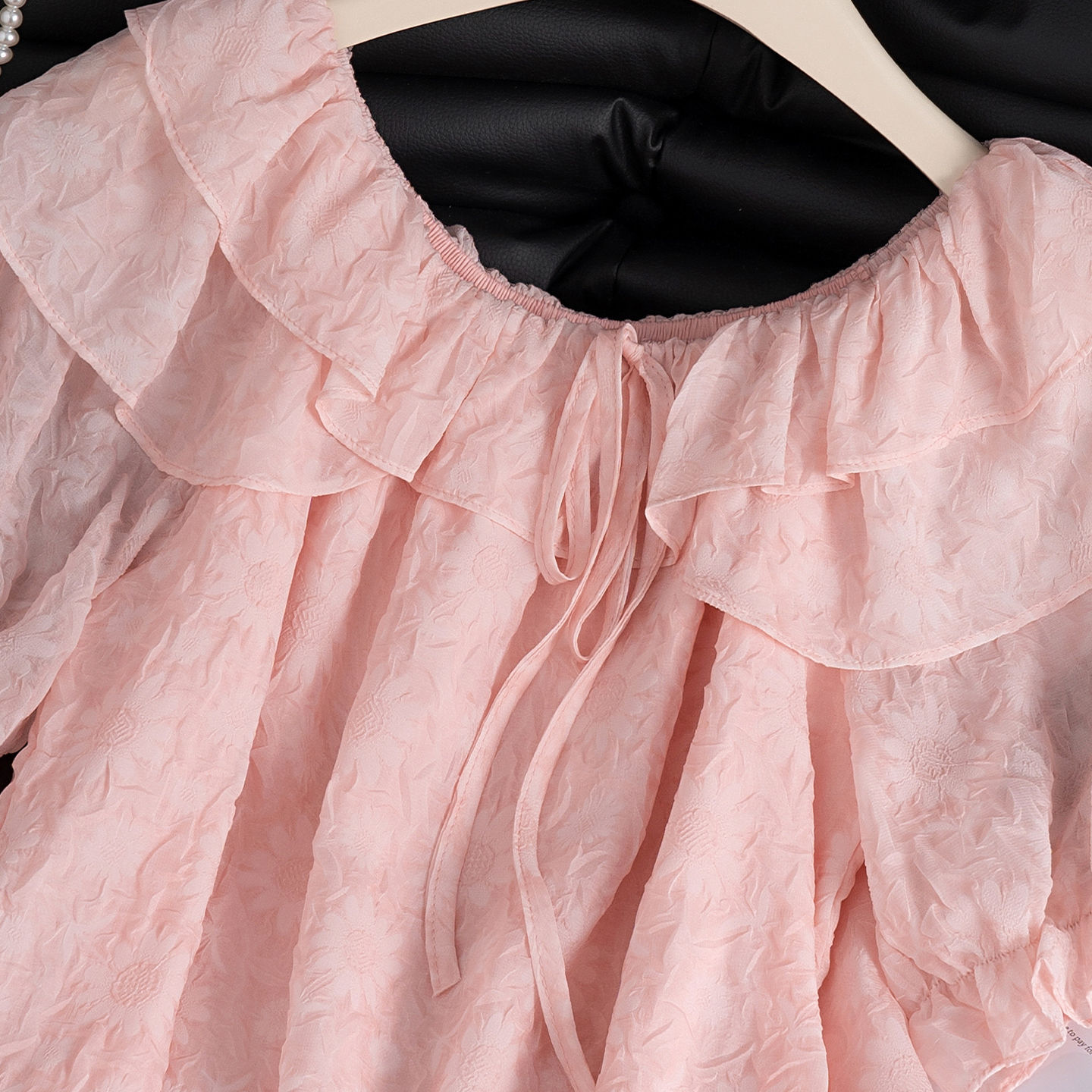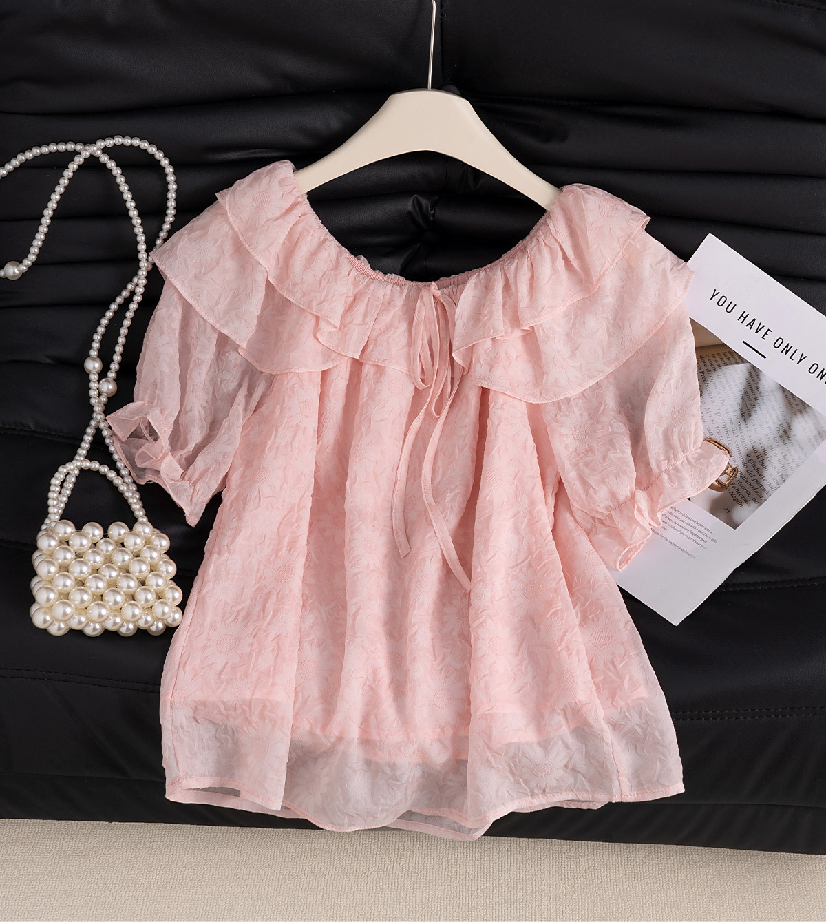여성을위한 핑크색 아름답고 독특한 양각 쉬폰 셔츠 여름 2025 새로운 스타일 살을 커버하고 슬리밍 반팔 티셔츠 셔츠 탑