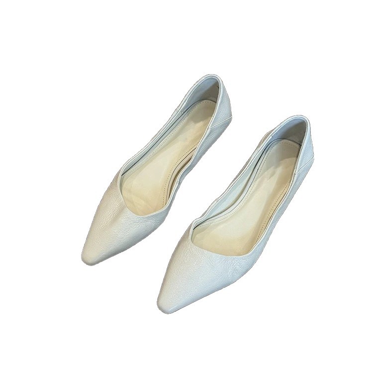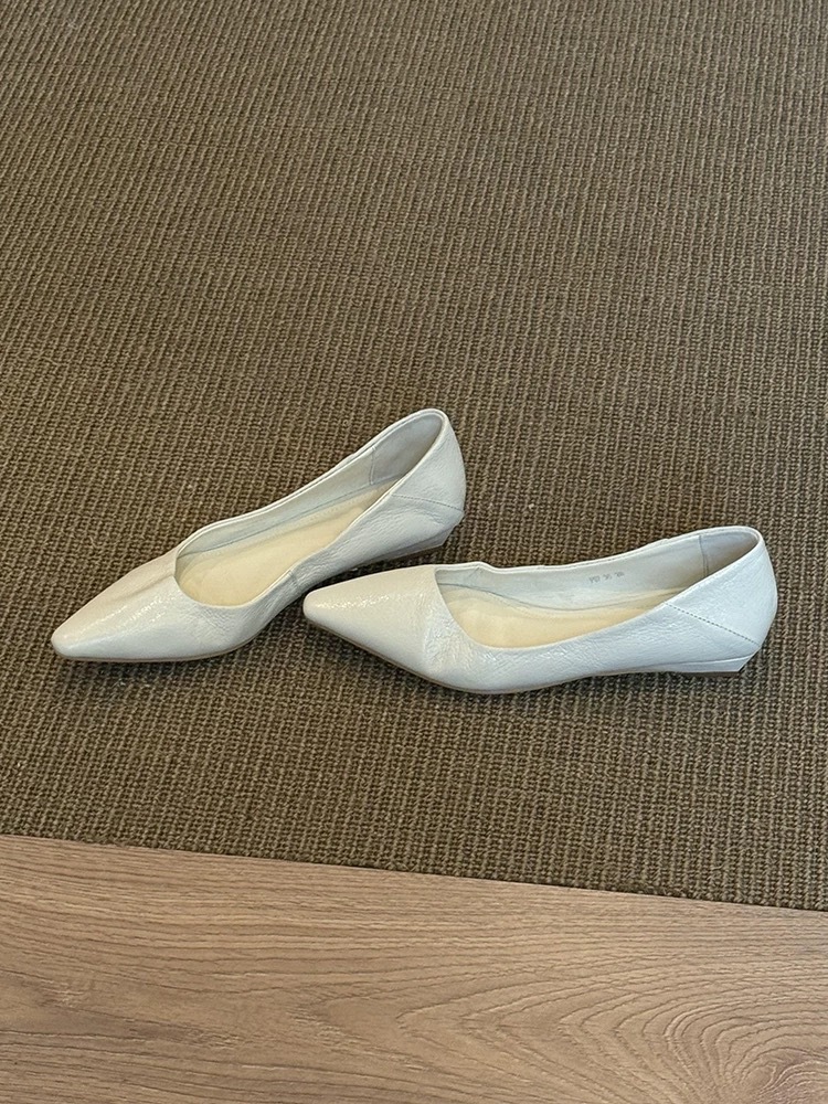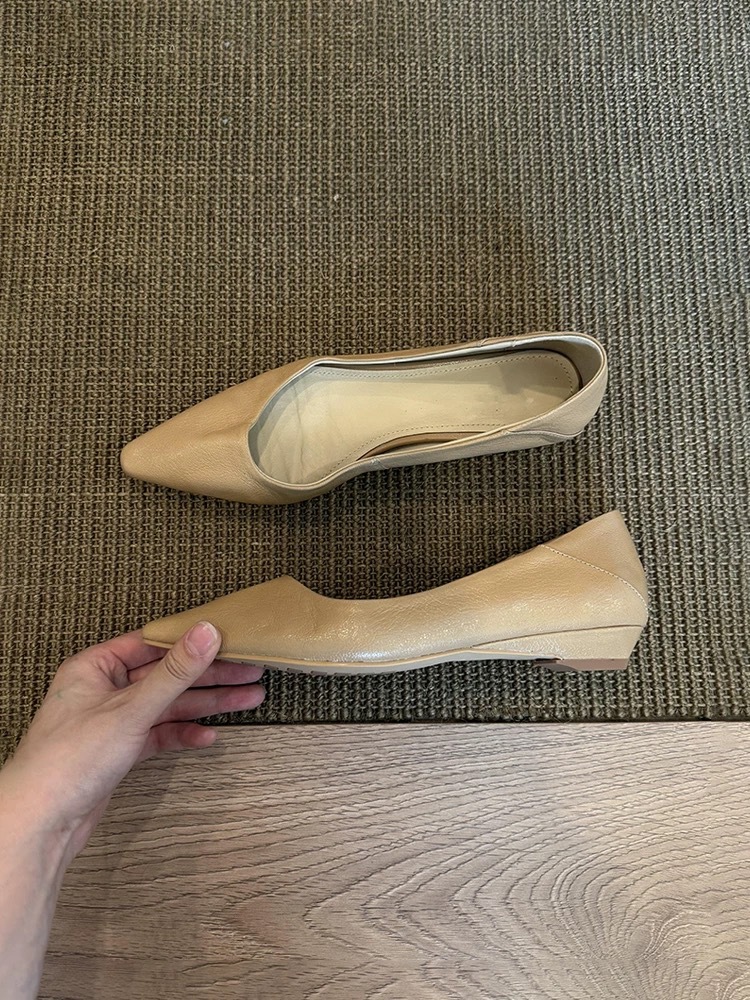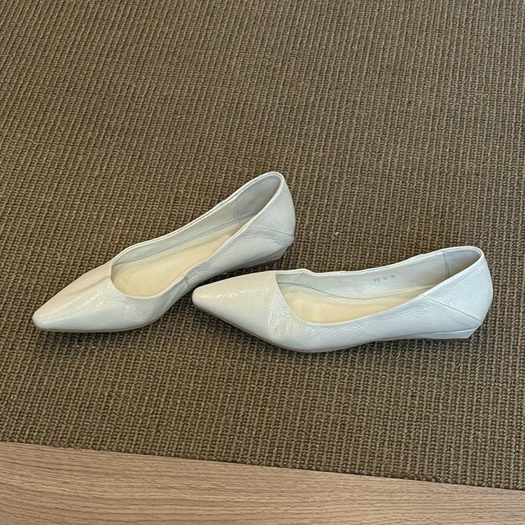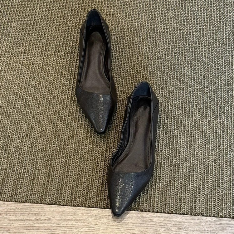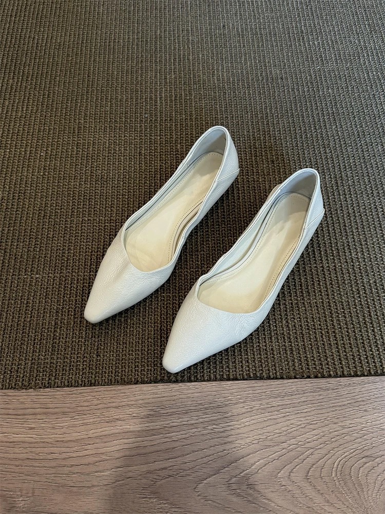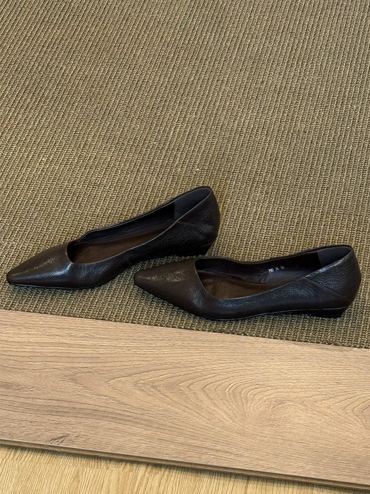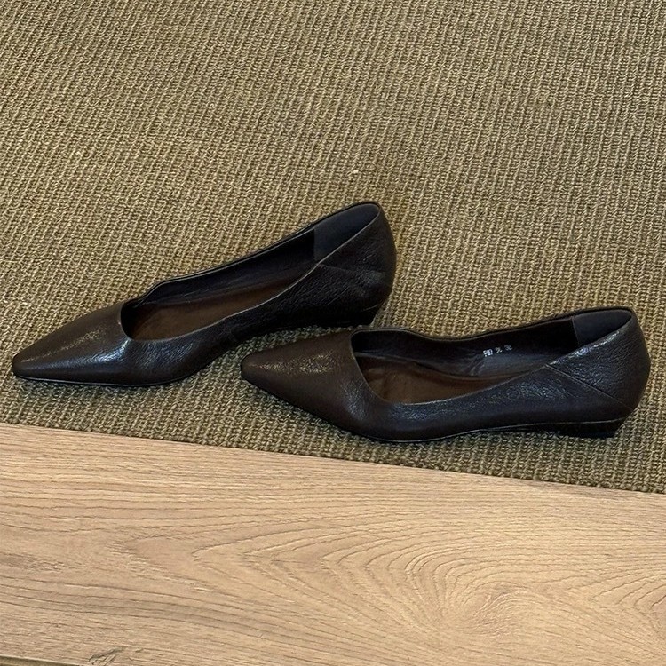 소가죽 버전 ~ 미니멀 스타일 작은 웨지힐 포인티드 토 여성용 심플 슈즈 2025 신작 봄, 가을 통근 플랫 여성화