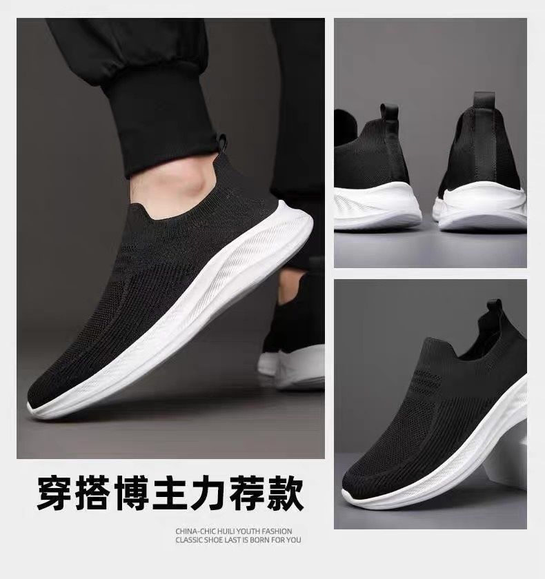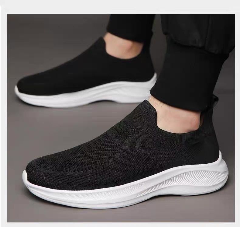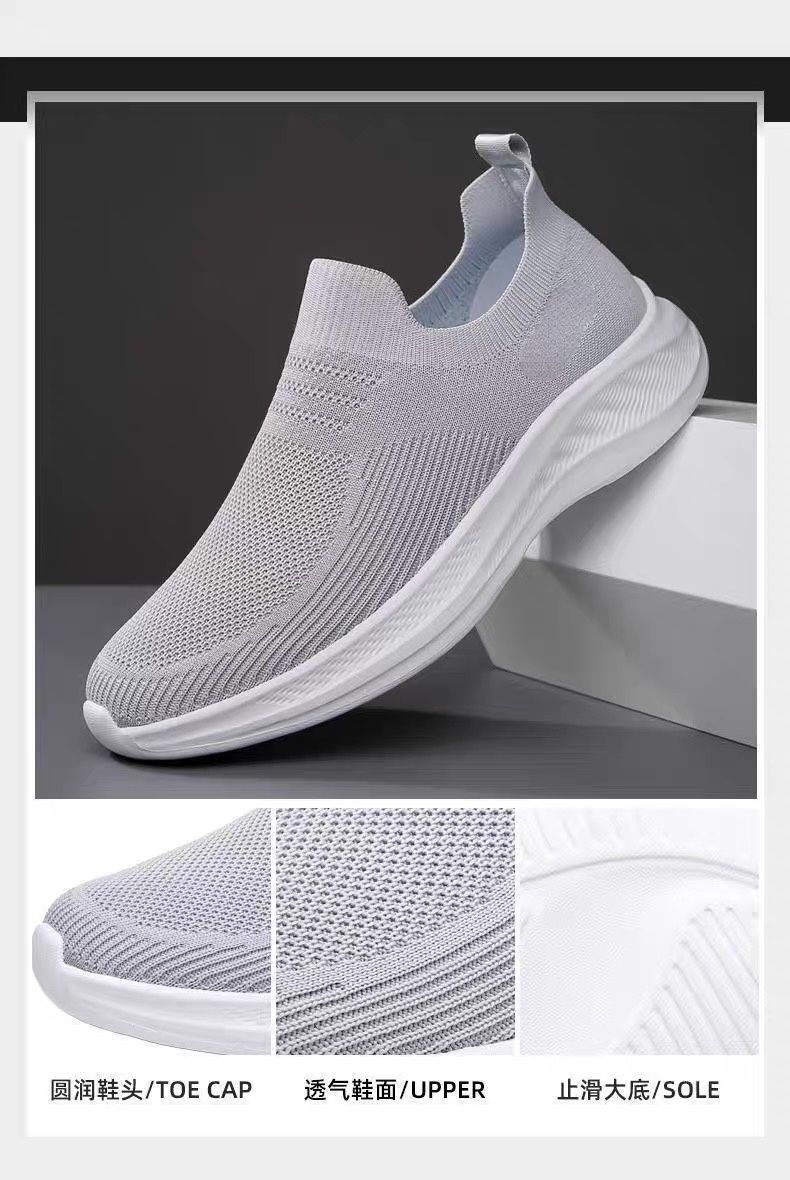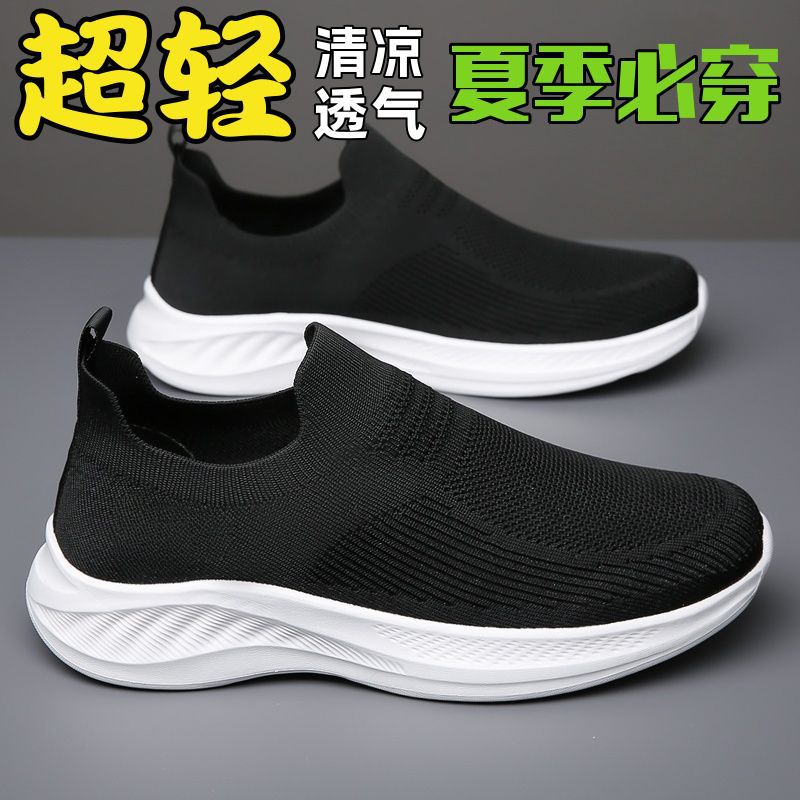 2025 새로운 여름 스포츠 및 레저 남성 신발 통기성 슬립온 플라이 니트 중년 및 노인 베이징 슬립온 메쉬 신발