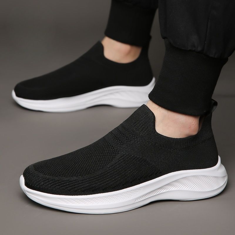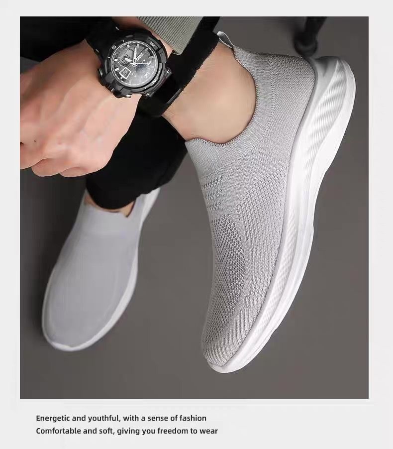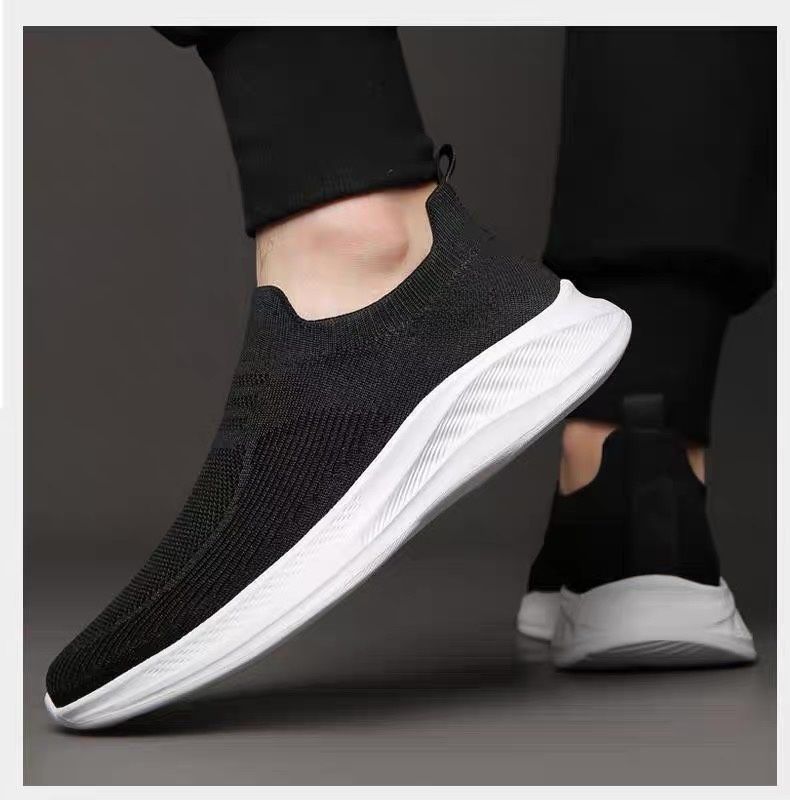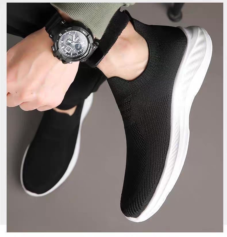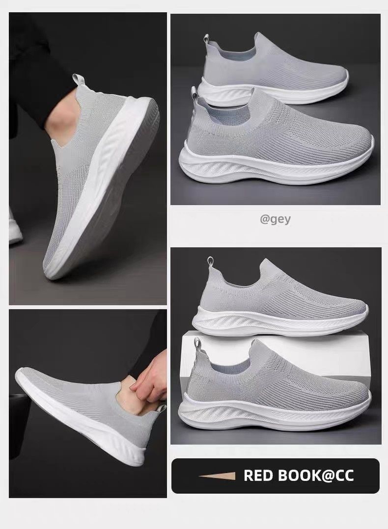 2025 새로운 여름 스포츠 및 레저 남성 신발 통기성 슬립온 플라이 니트 중년 및 노인 베이징 슬립온 메쉬 신발