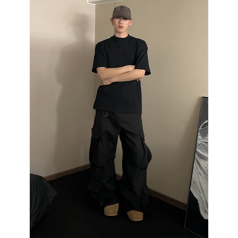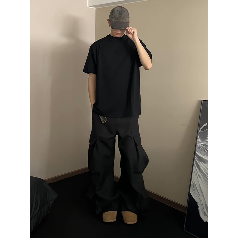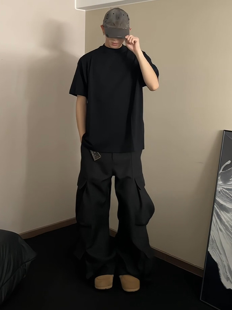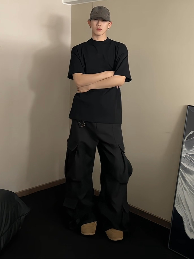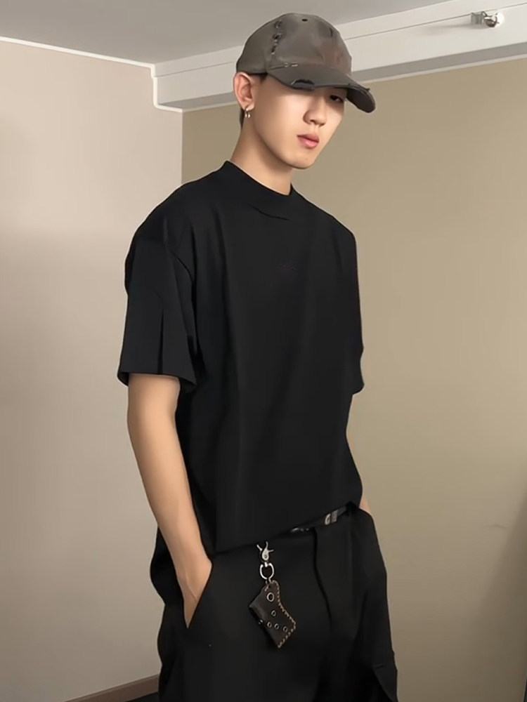 Cleanfit 블랙 퓨어 코튼 반팔 티셔츠 남성 여름 미국 하이 엔드 스몰 넥라인 오른쪽 어깨 반소매