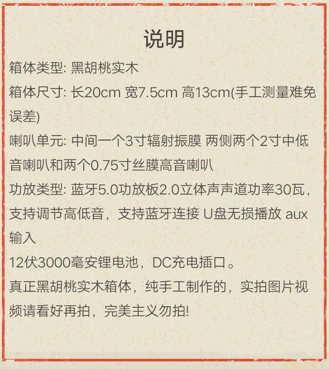 검은 호두 단단한 나무 블루투스 스피커 수제 야외 복고풍 서브 우퍼 나무 작은 스피커 휴대용 휴대용 스피커