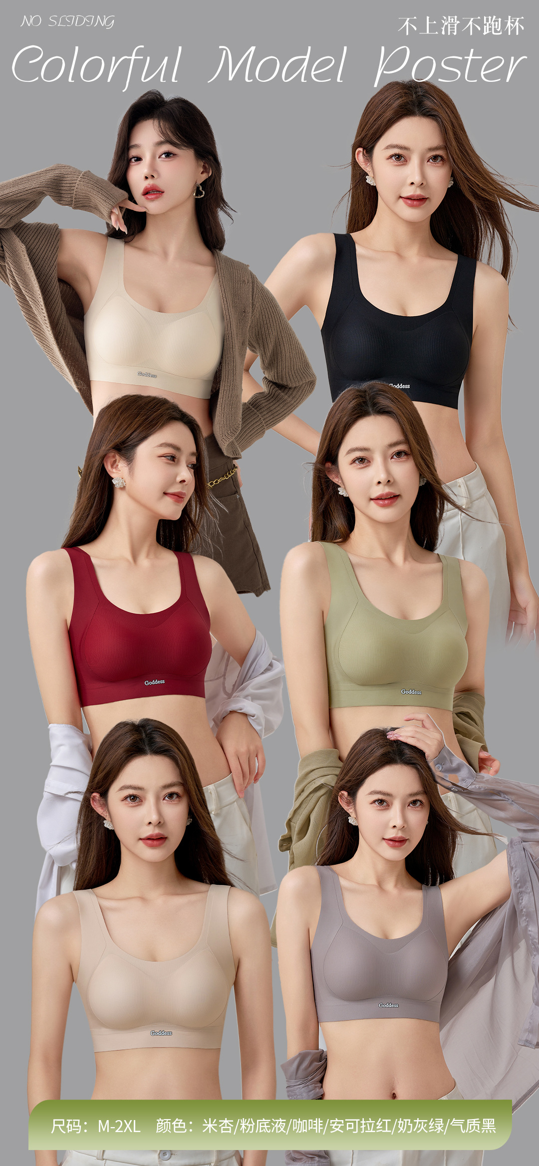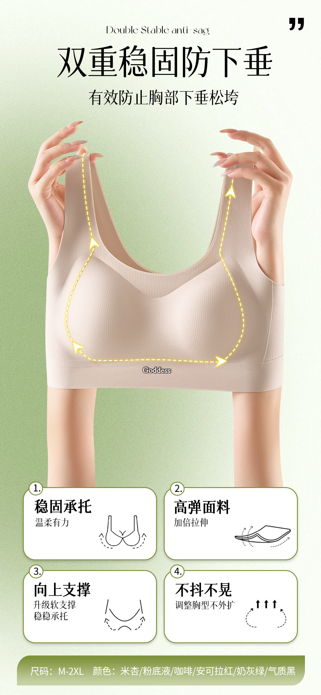 여성용 무봉제 속옷, 여름용 얇은 모델, 처짐 방지 브라, 스포츠용 작은 가슴 푸쉬업 브라, 통기성 조끼형 브라