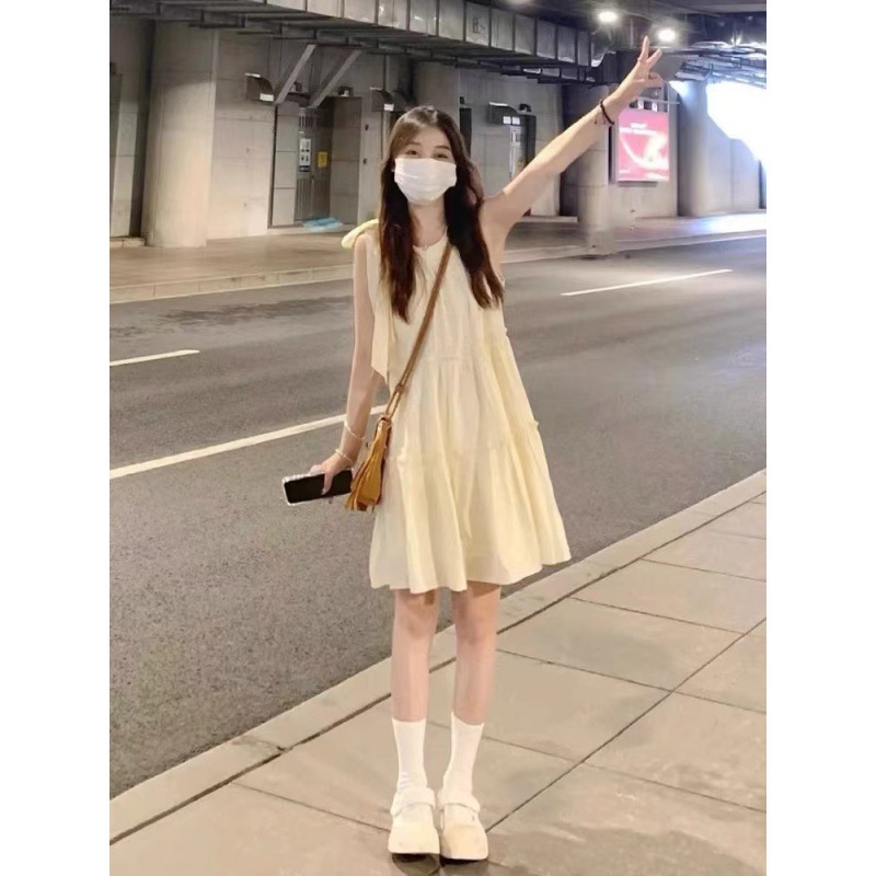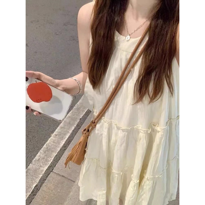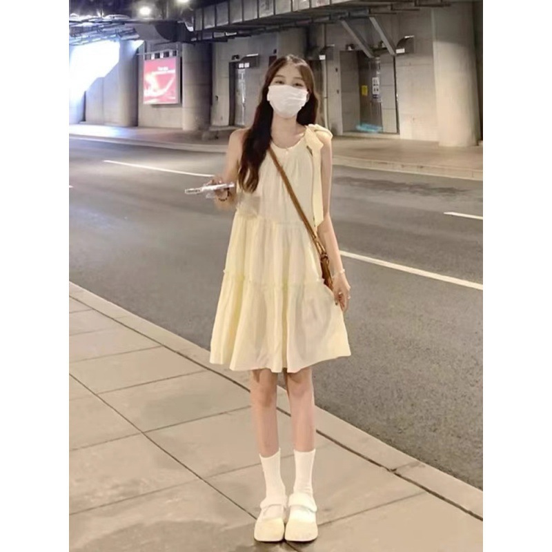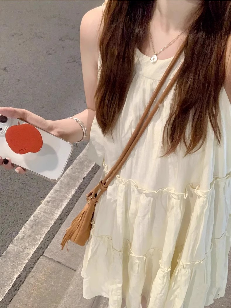 2024 새로운 작은 서스펜더 민소매 홀터넥 드레스 여성 여름 해변 휴가 요정 비치 드레스
