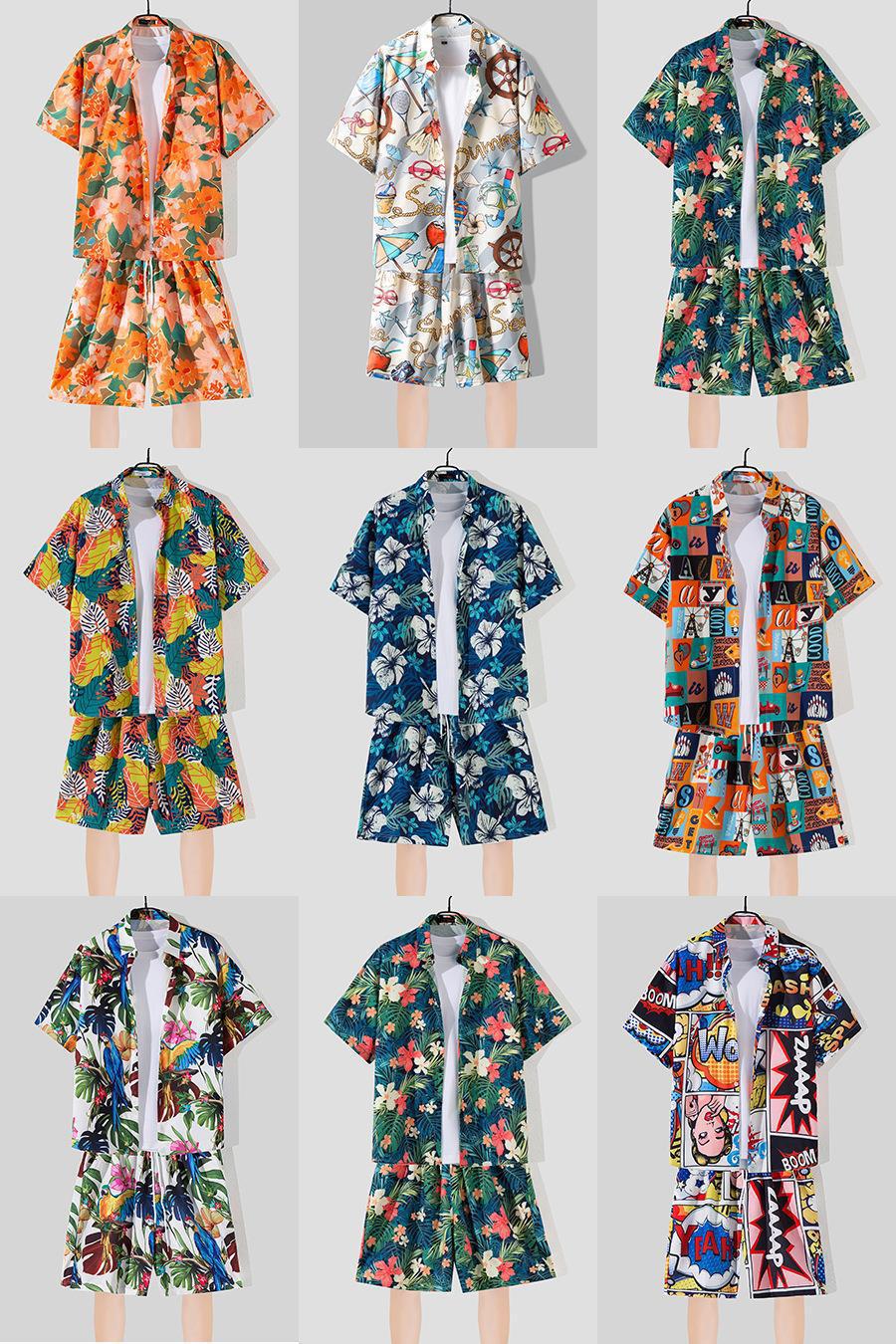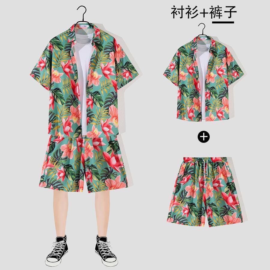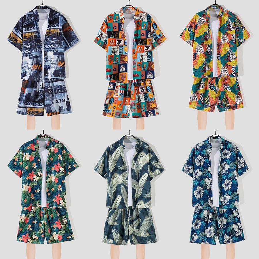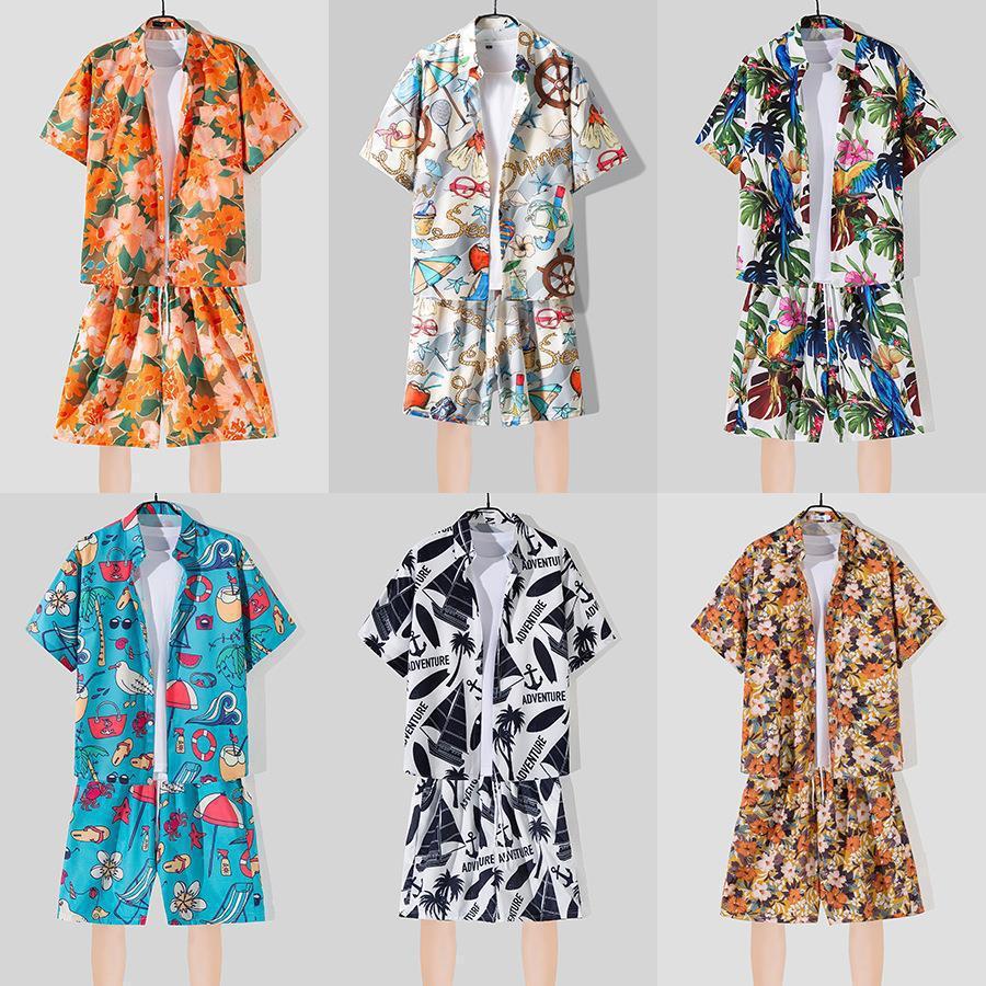 남성용 여름 해변 정장, 산야 해변 휴가 스타일 투피스 의류, 남성용 하와이안 스타일 여행복, 커플