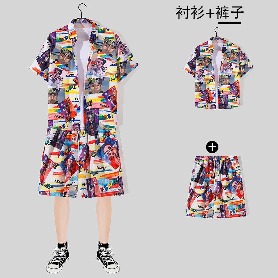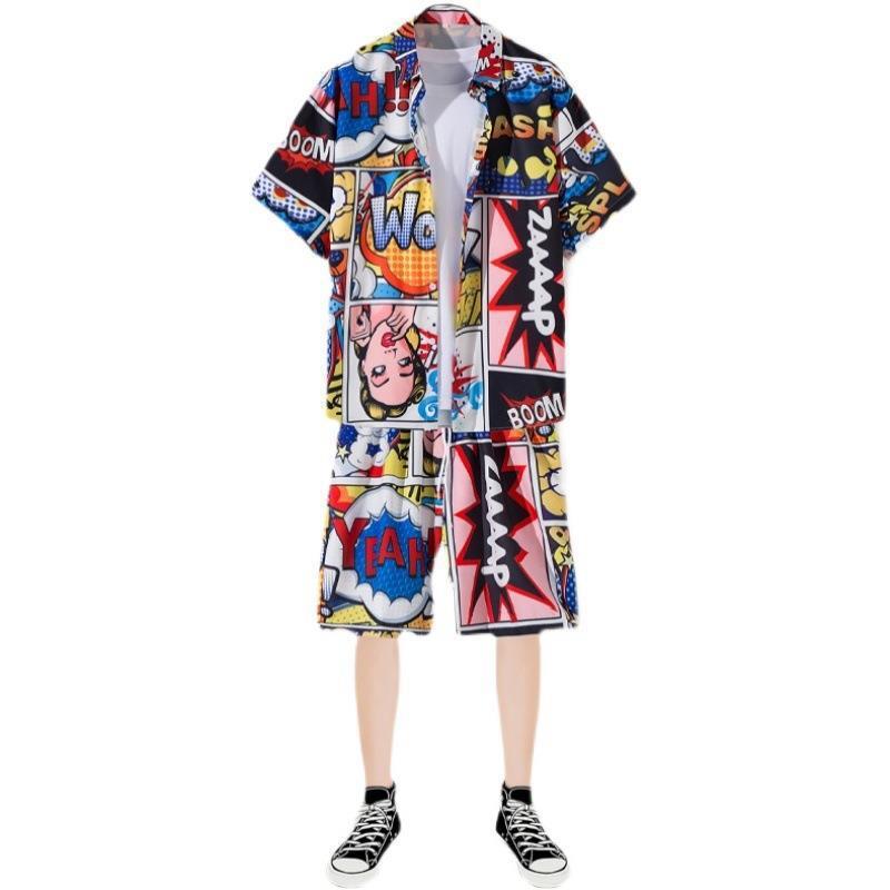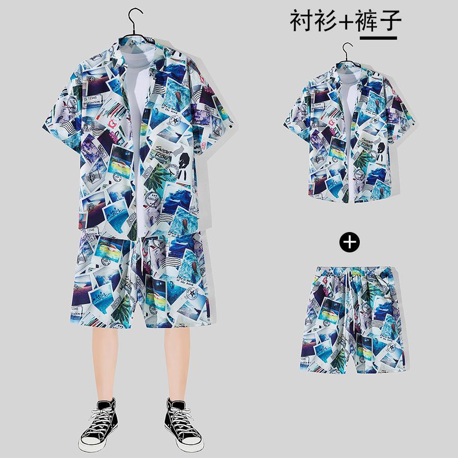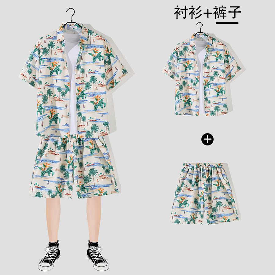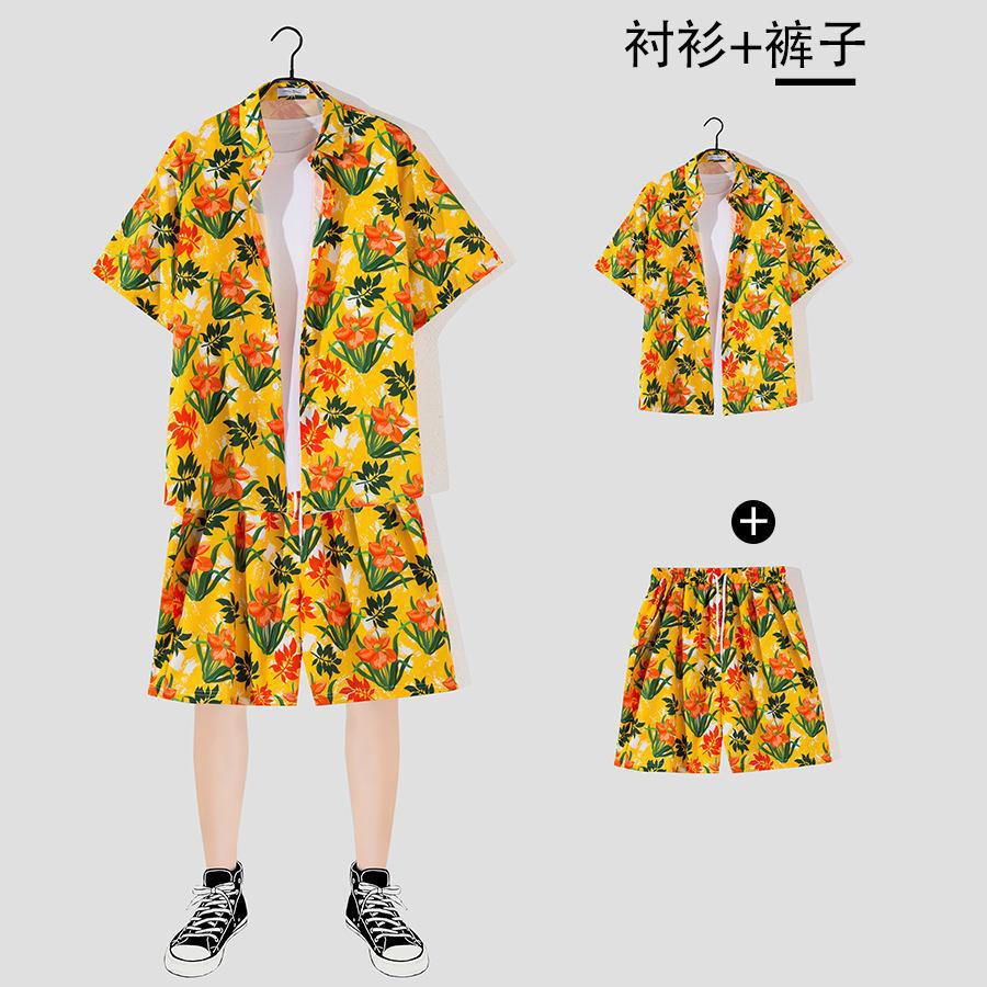 남성용 여름 해변 정장, 산야 해변 휴가 스타일 투피스 의류, 남성용 하와이안 스타일 여행복, 커플