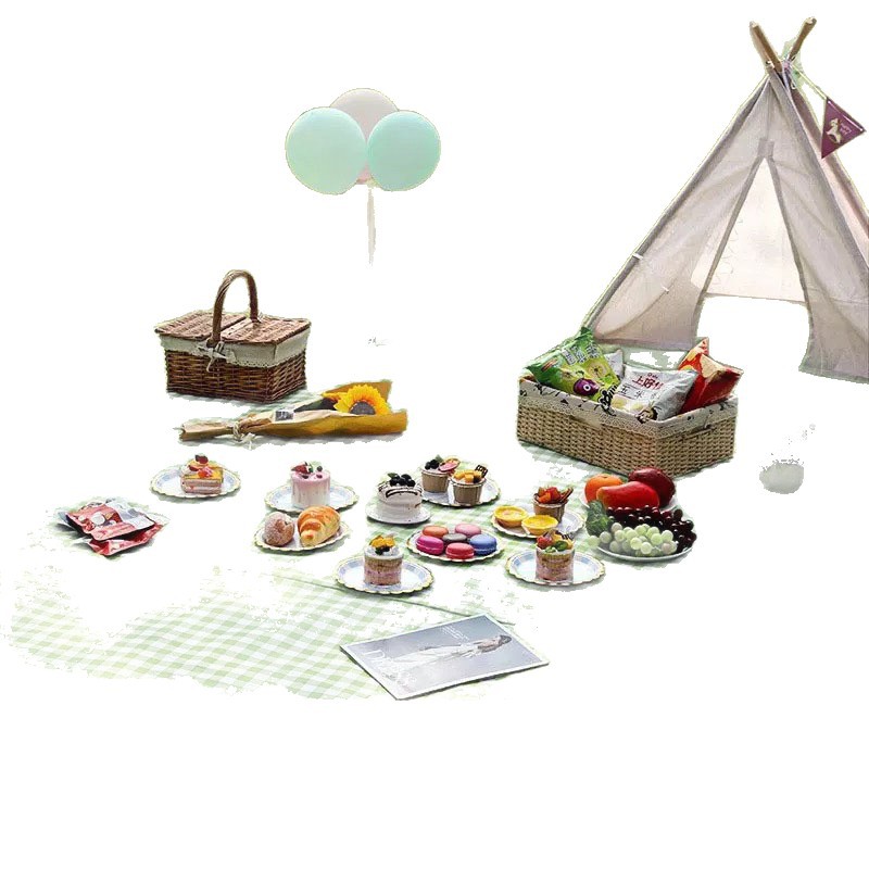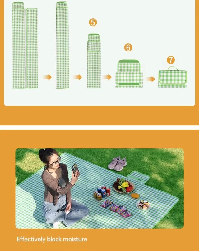 두꺼운 녹색 격자 무늬 2* 2m [6-8명이 앉을 수 있음] 양면 방수/냄새 없음