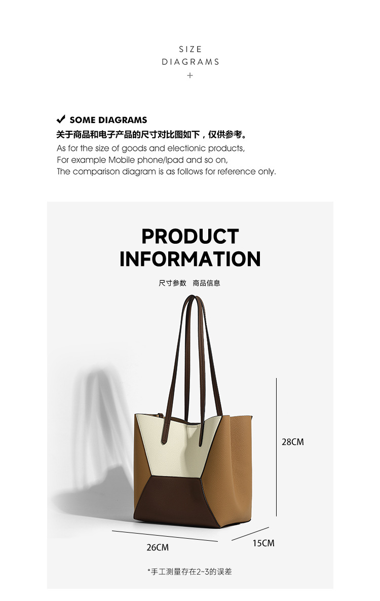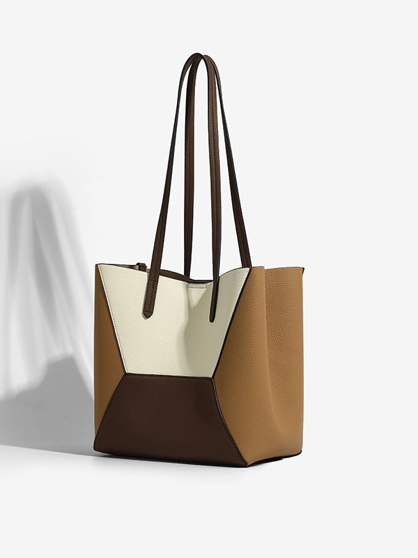 여성을위한 국경 간 틈새 복고풍 접합 대비 색상 토트 백 2025 새로운 유행 대용량 통근 어머니 어머니 숄더 백