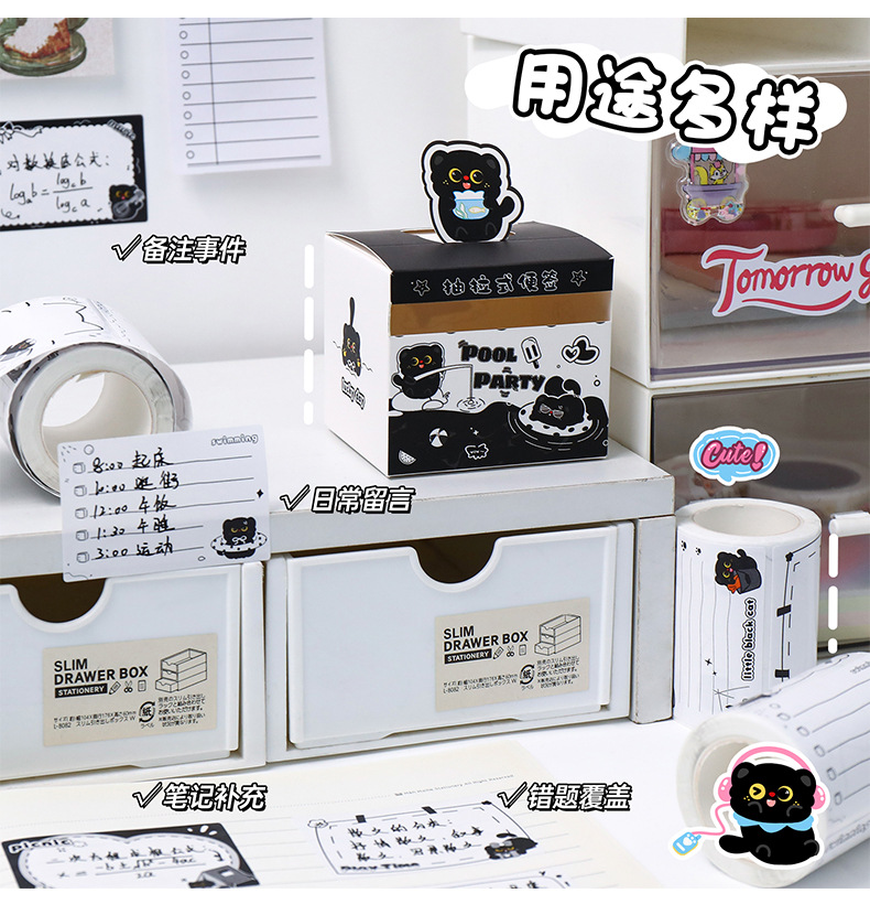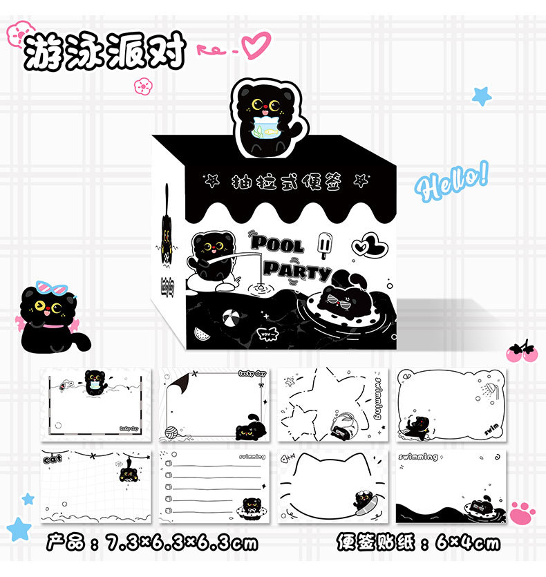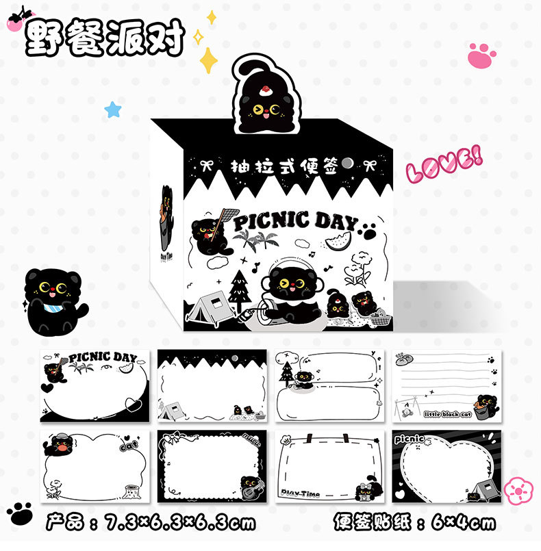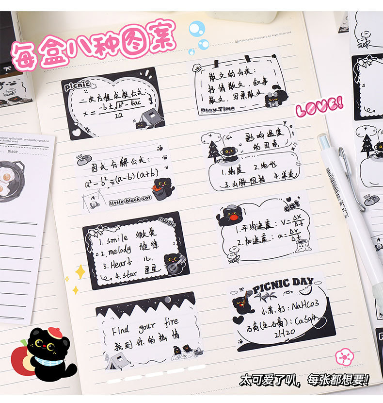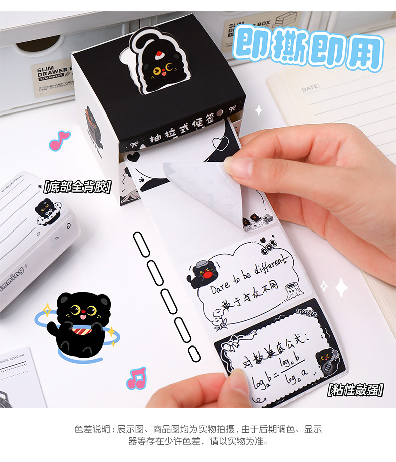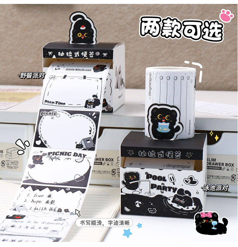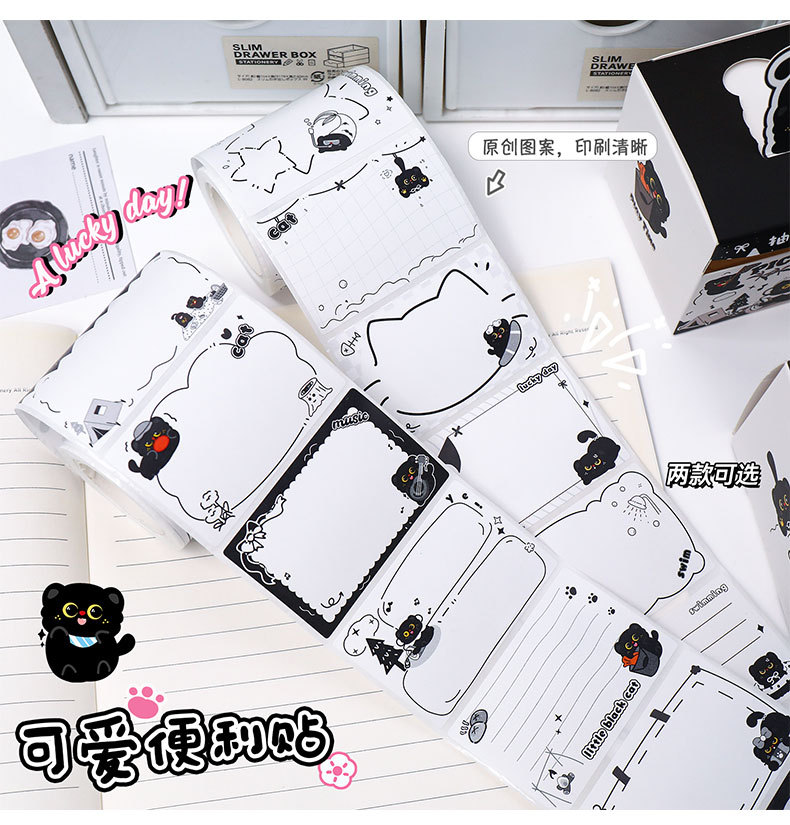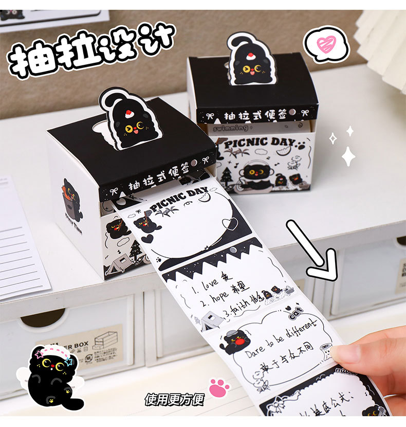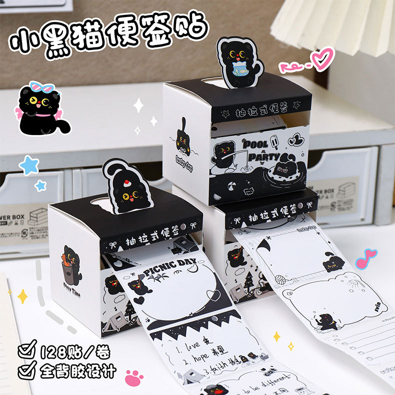 작은 검은 고양이 풀아웃 스티커 메모 학생 메시지 메모 메모 박스형 검은 고양이 메모 사무실 메시지 스티커