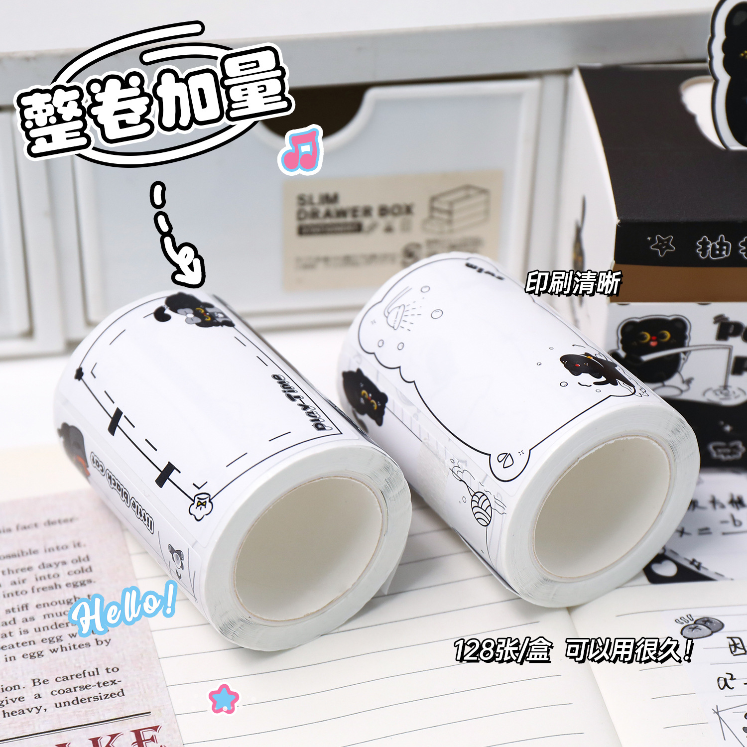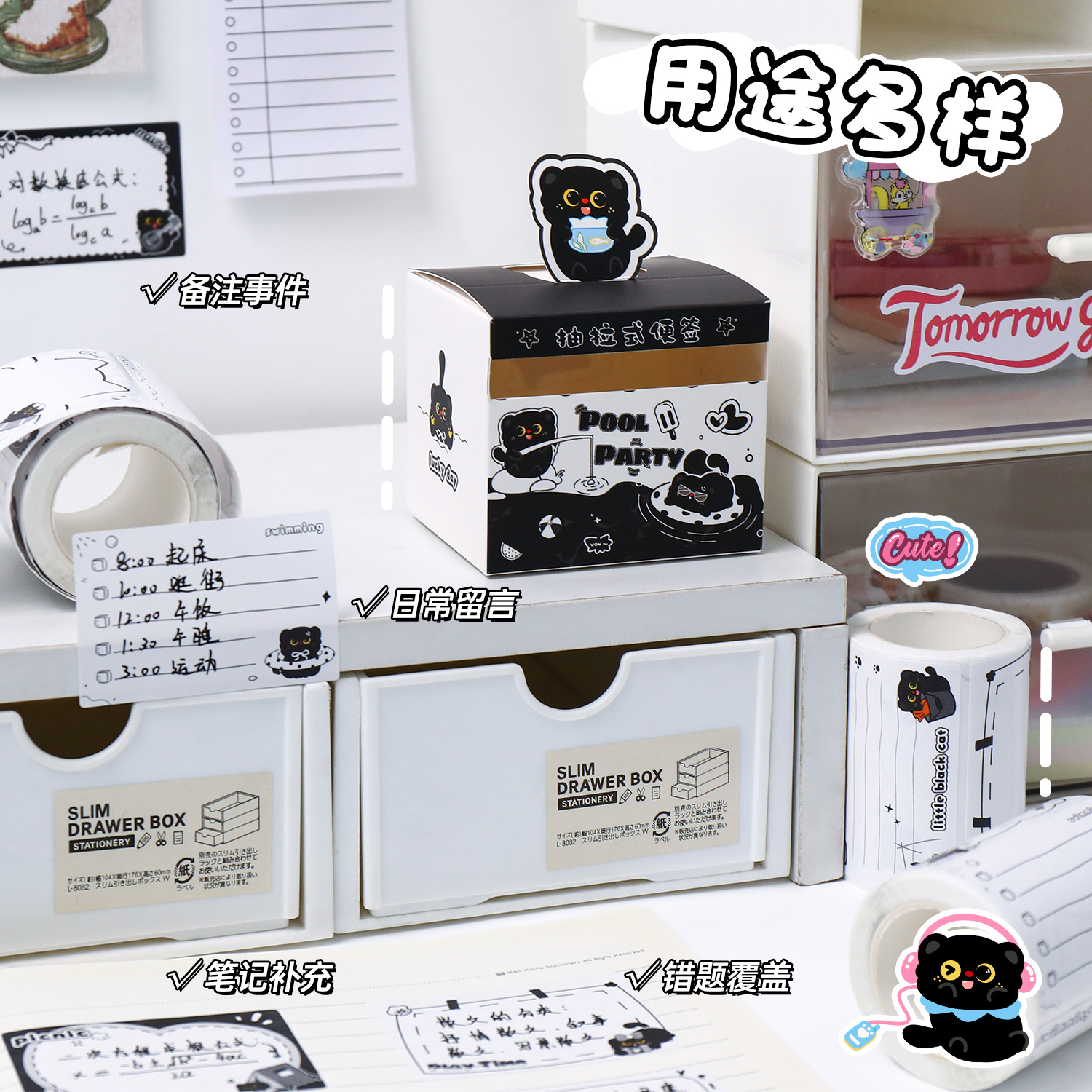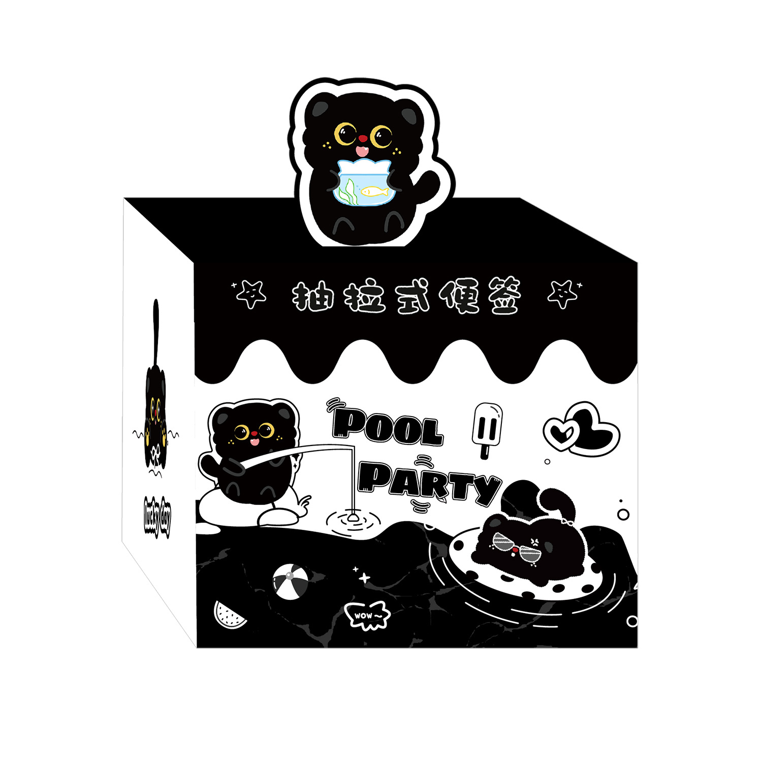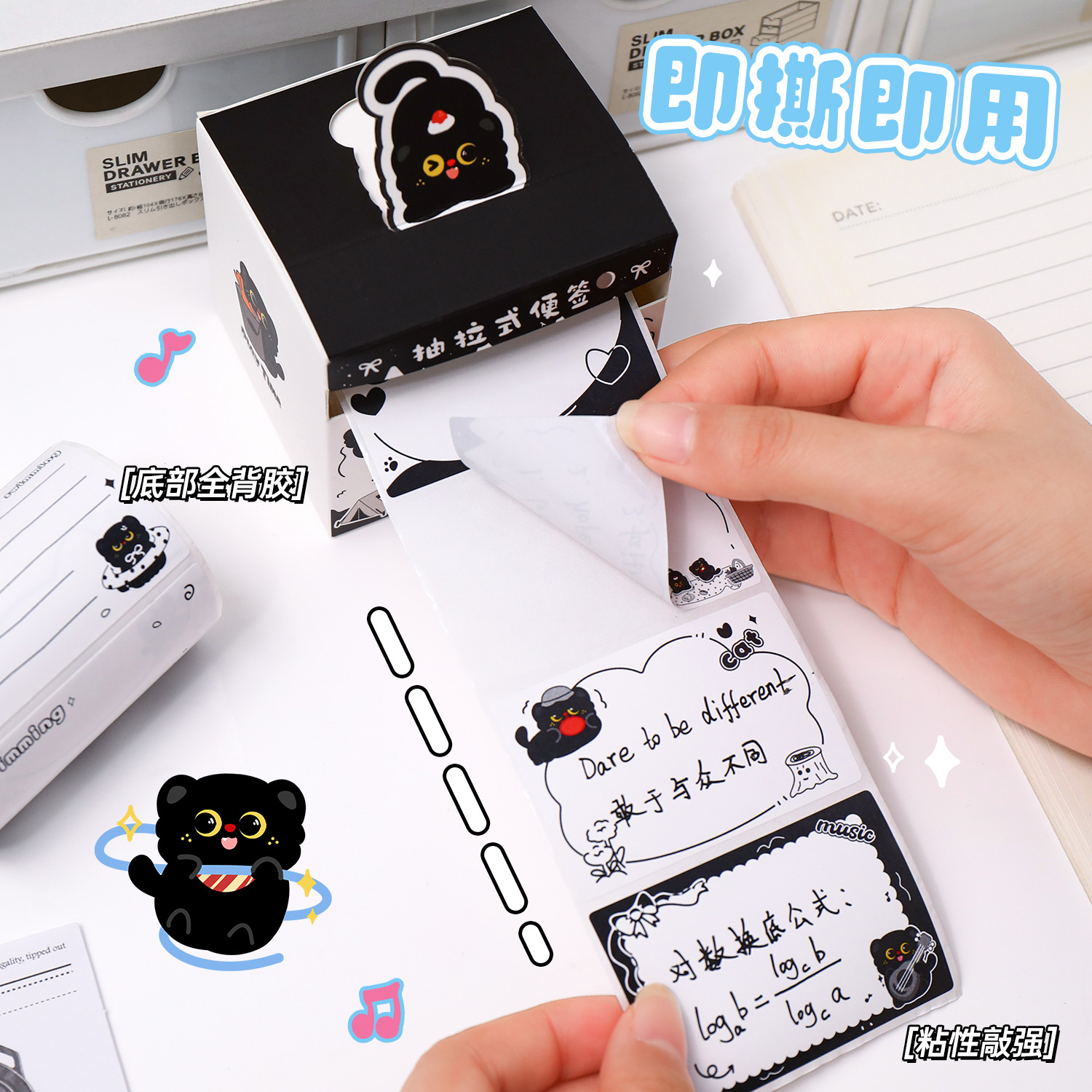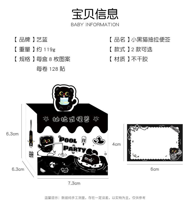 작은 검은 고양이 풀아웃 스티커 메모 학생 메시지 메모 메모 박스형 검은 고양이 메모 사무실 메시지 스티커