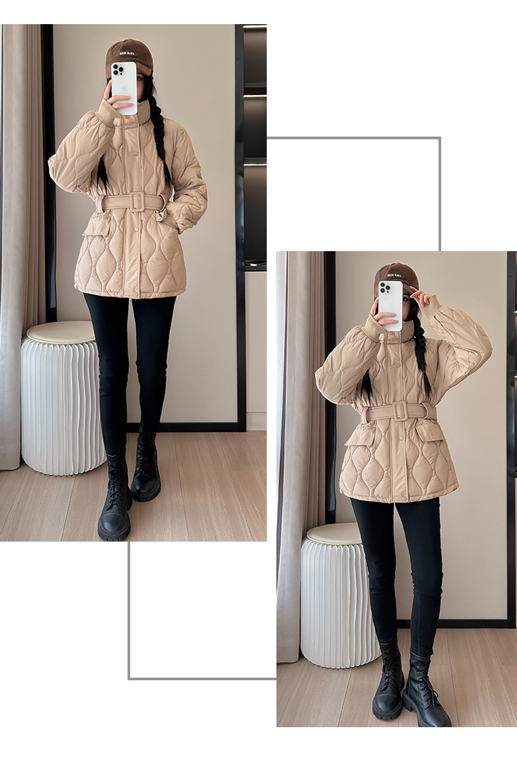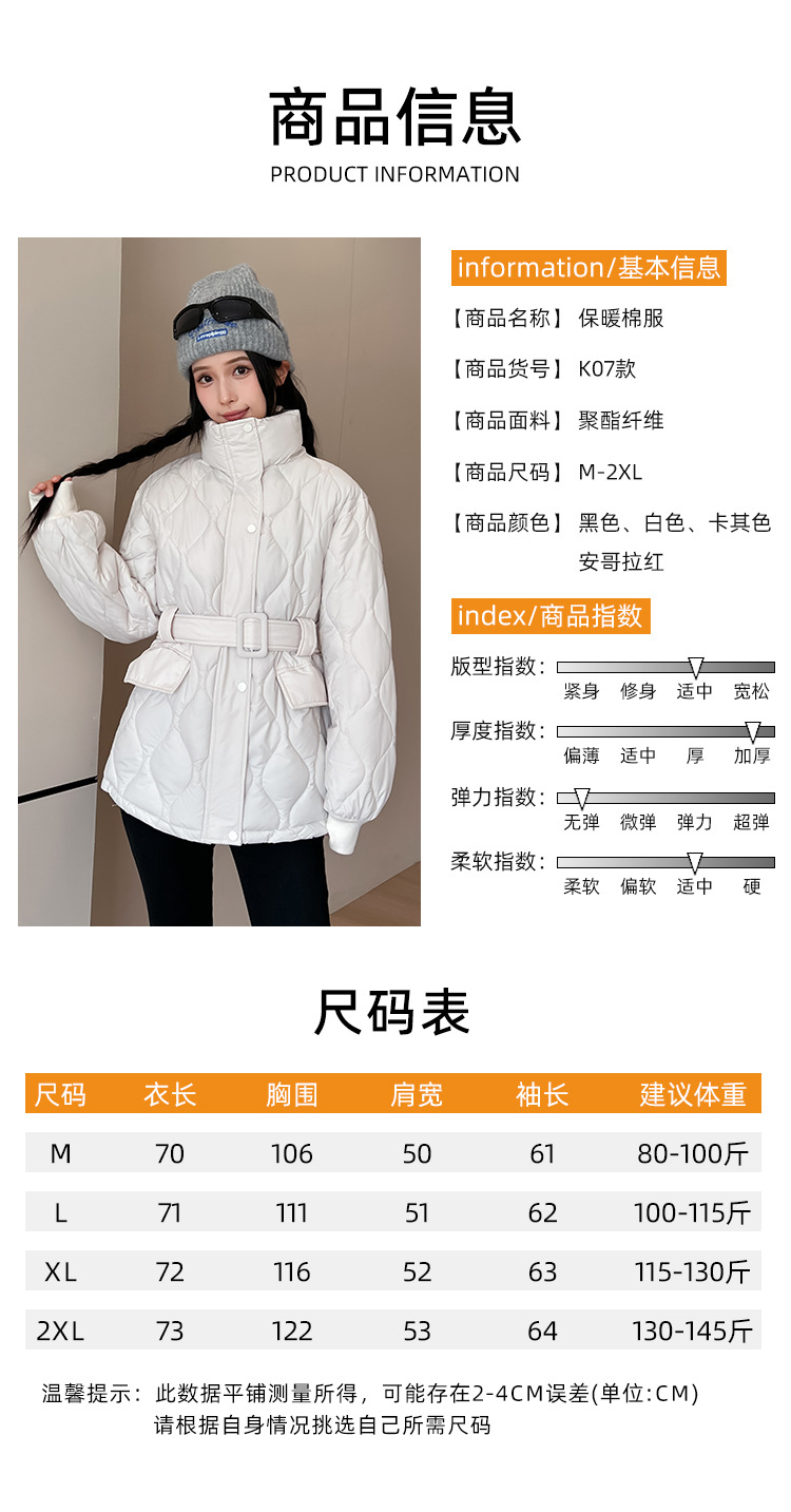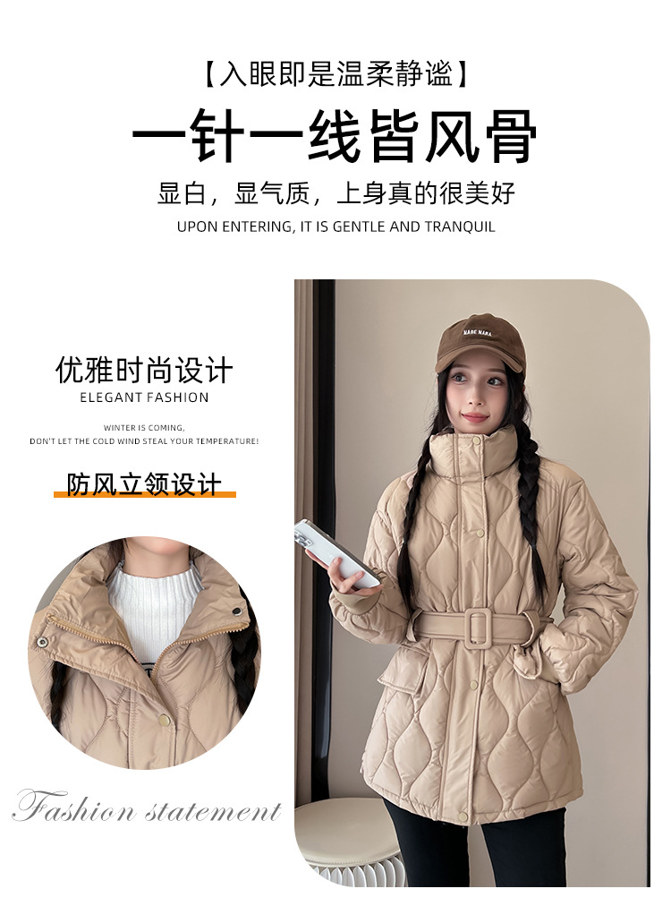 허리 스탠드 칼라 다운 코튼 의류 여성 2025 새로운 겨울 한국 스타일 코튼 패딩 재킷 방한 의류 대외 무역 재킷 유행