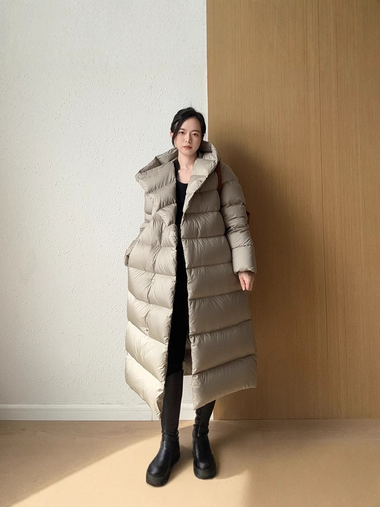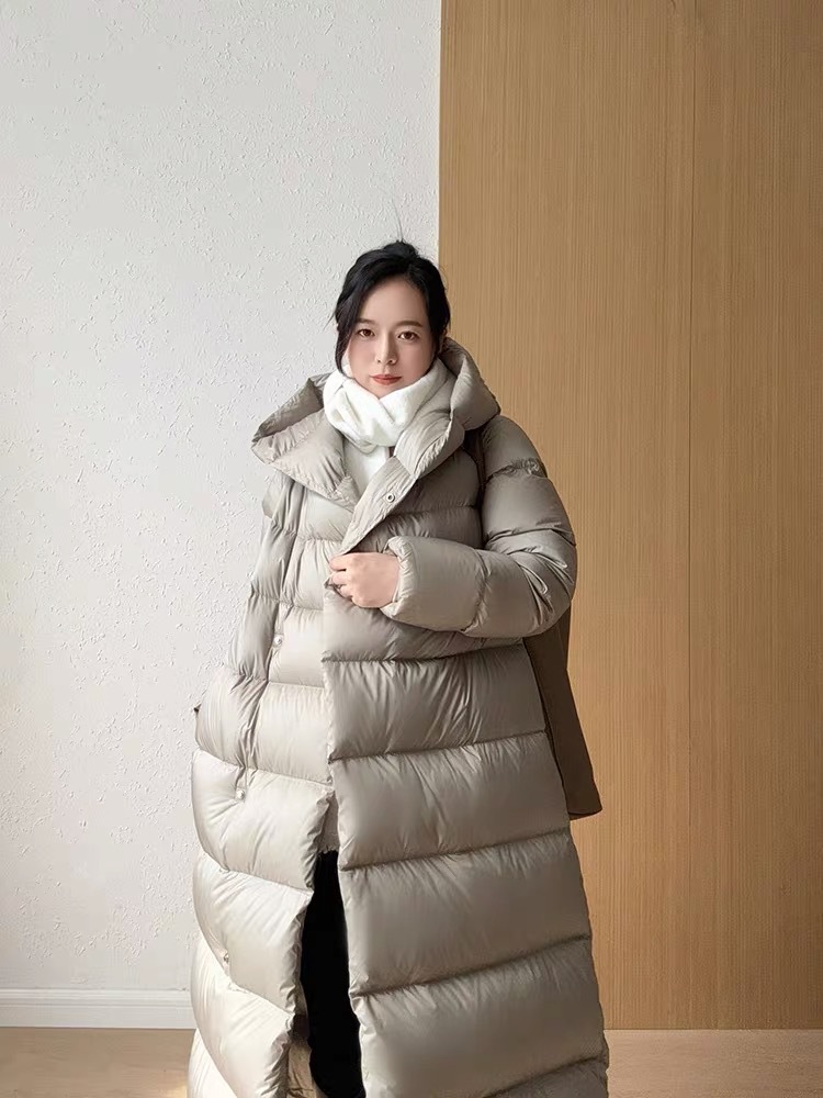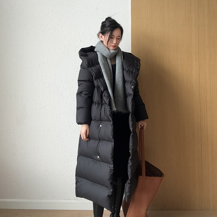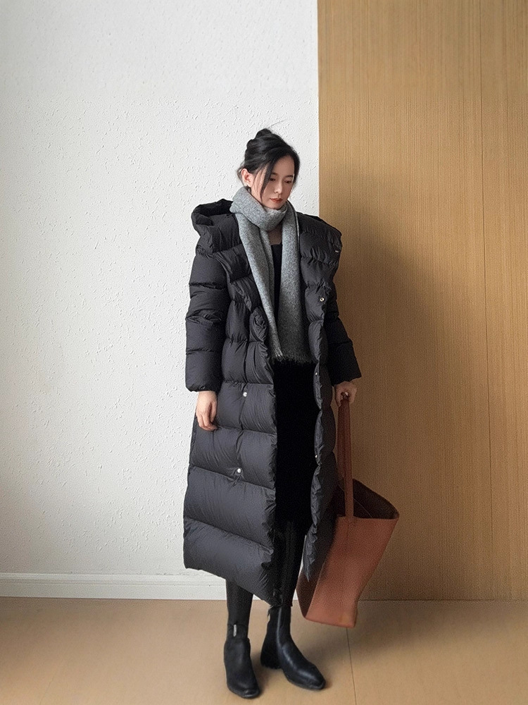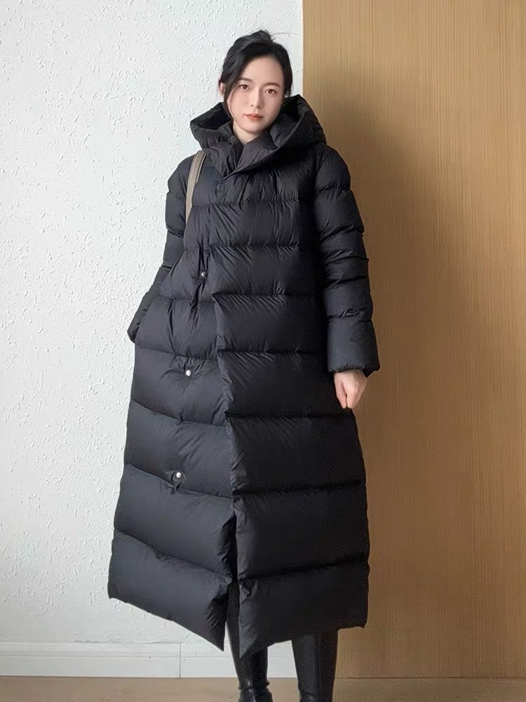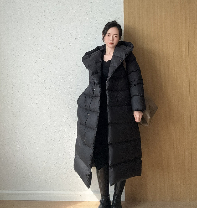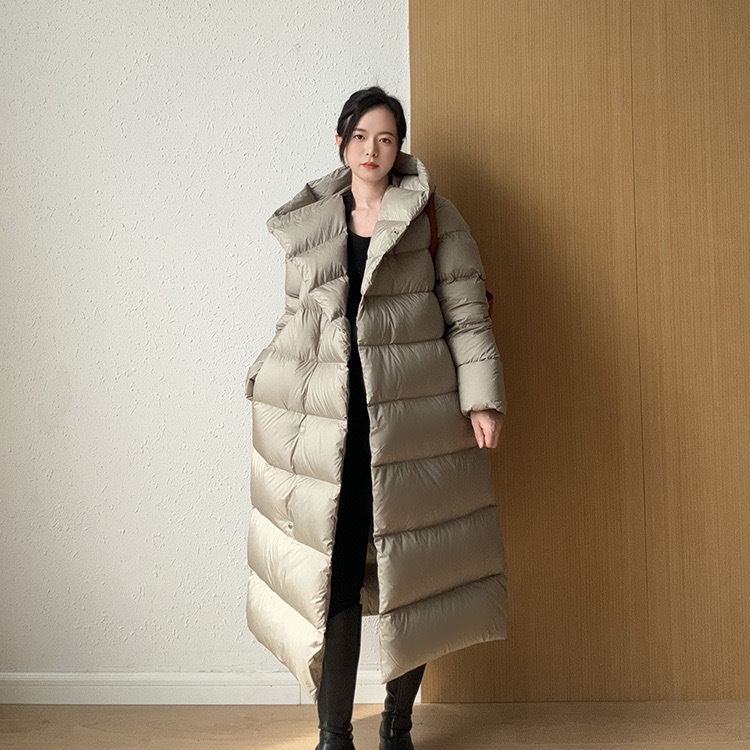 Wang Churan의 여성용 후드 두꺼운 다운 재킷 2025 새로운 느슨한 긴 무릎 위 겨울 따뜻하고 슬림한 하이 엔드