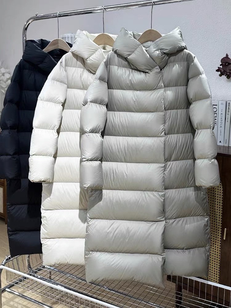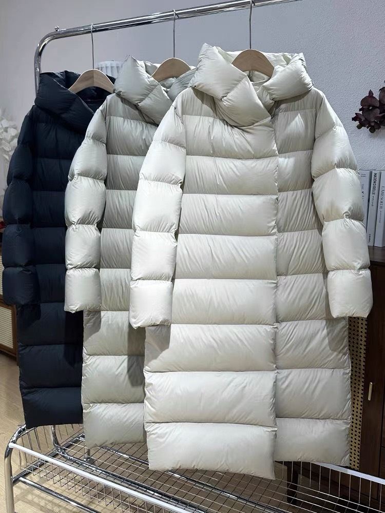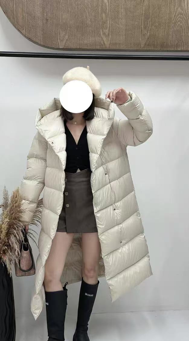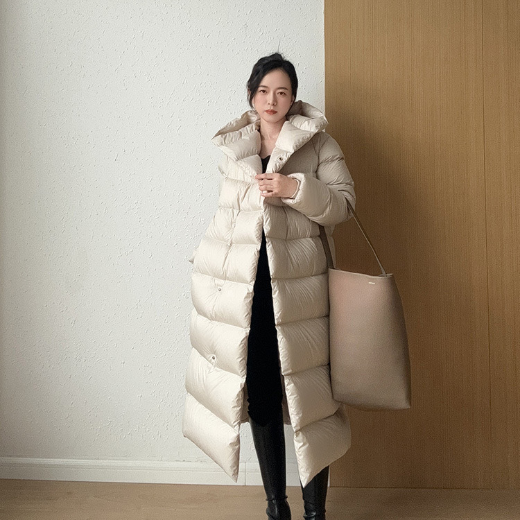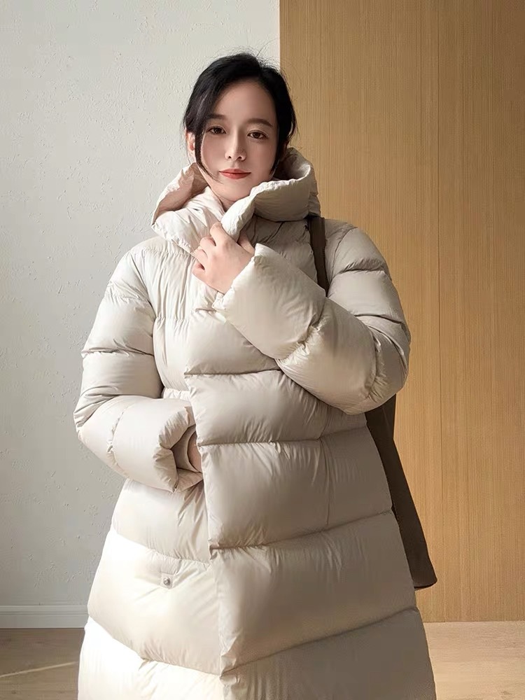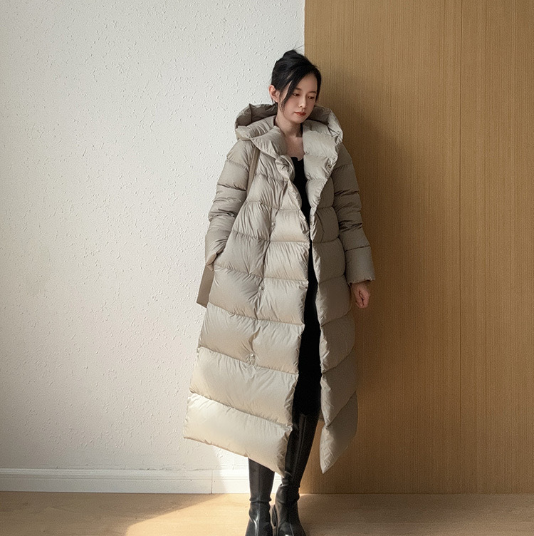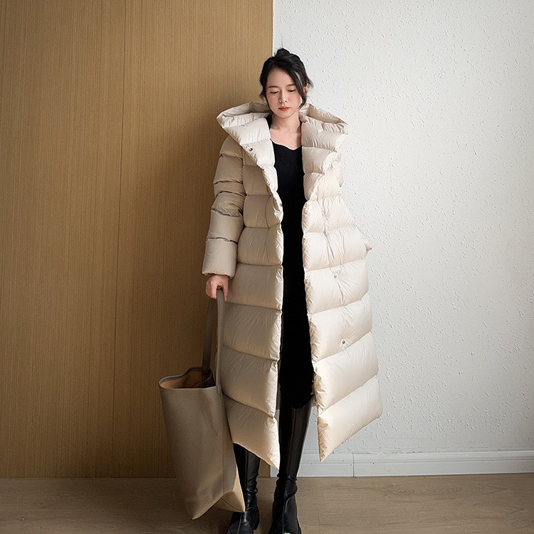 Wang Churan의 여성용 후드 두꺼운 다운 재킷 2025 새로운 느슨한 긴 무릎 위 겨울 따뜻하고 슬림한 하이 엔드