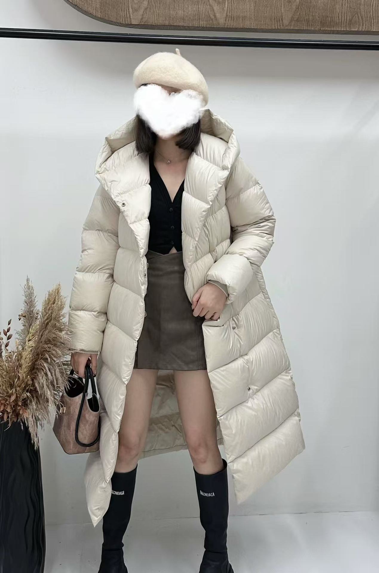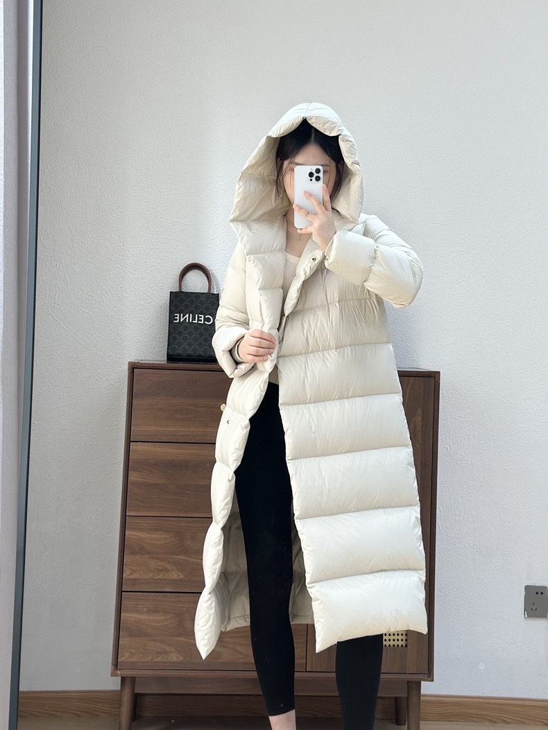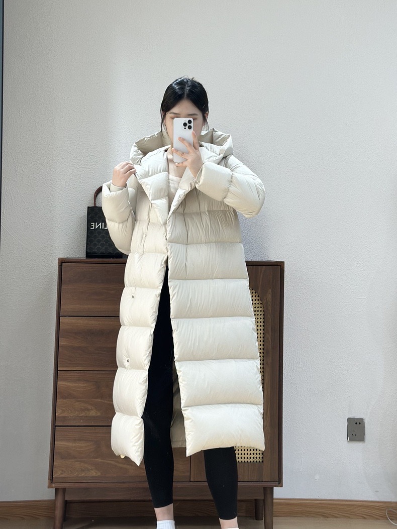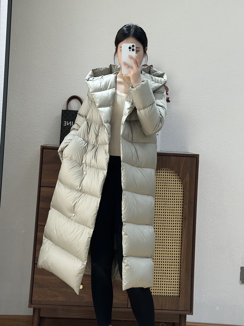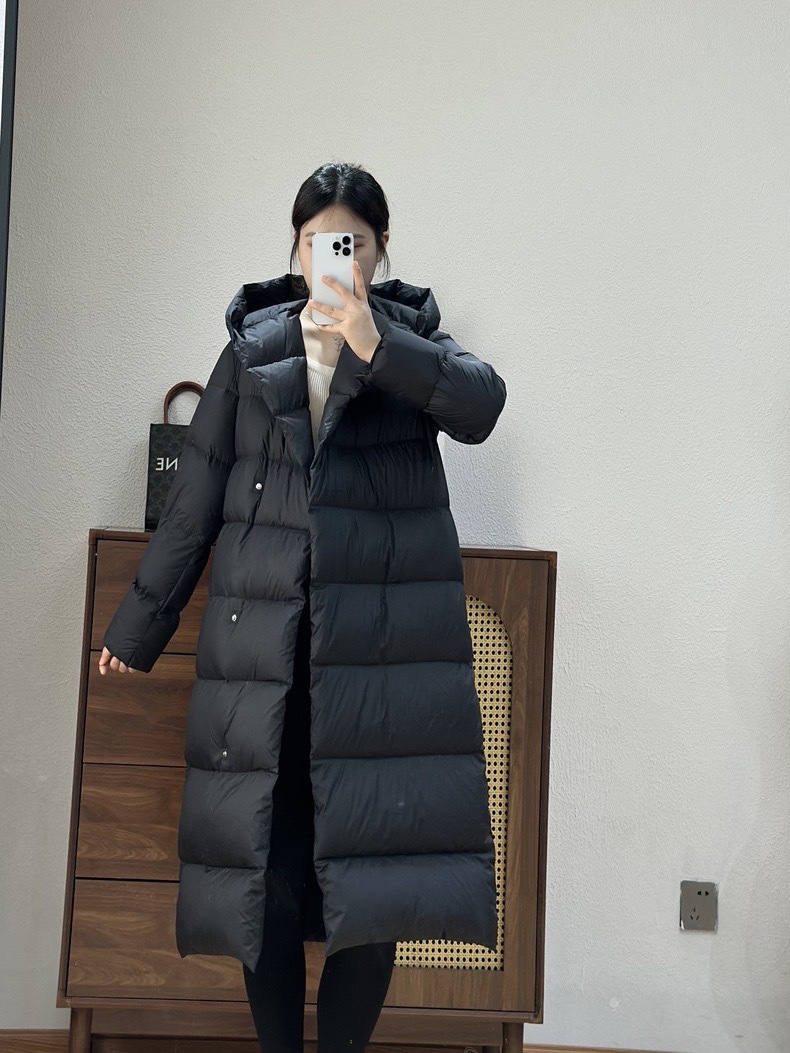 Wang Churan의 여성용 후드 두꺼운 다운 재킷 2025 새로운 느슨한 긴 무릎 위 겨울 따뜻하고 슬림한 하이 엔드